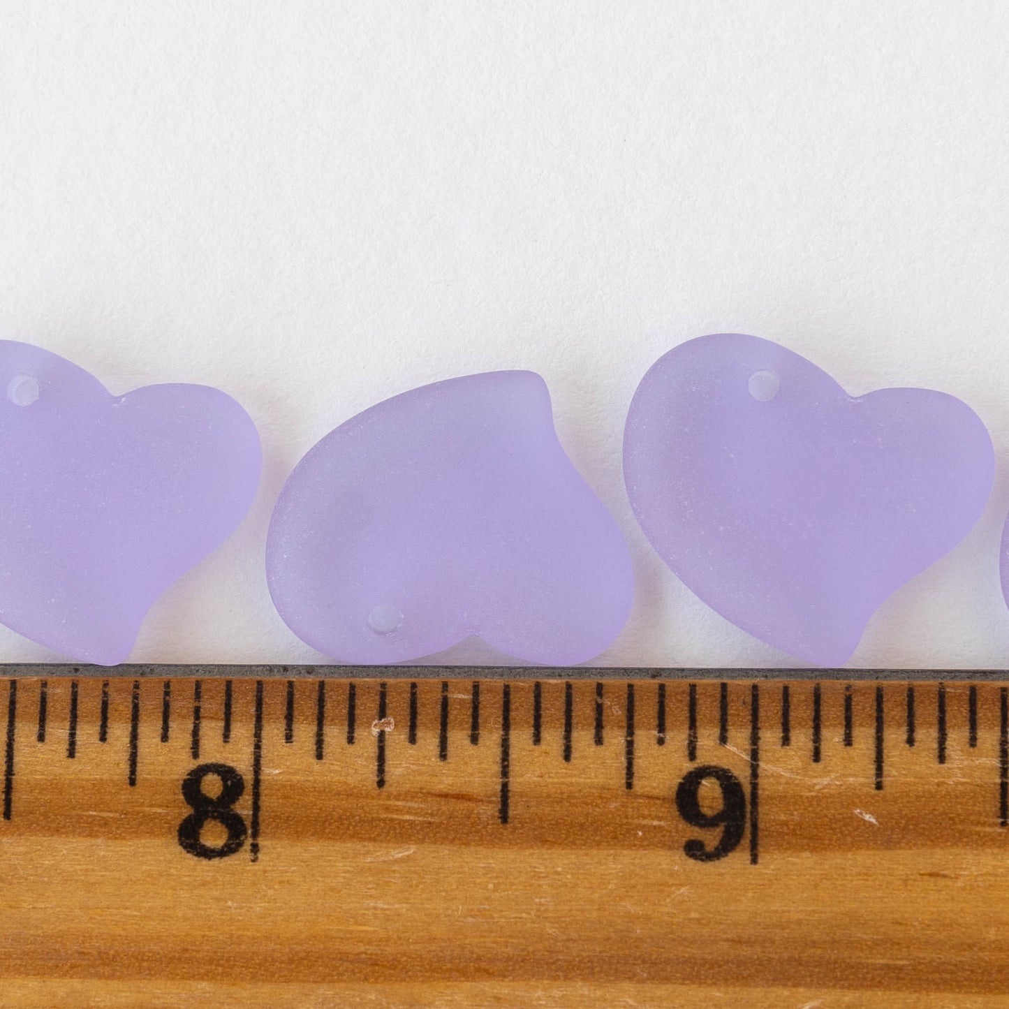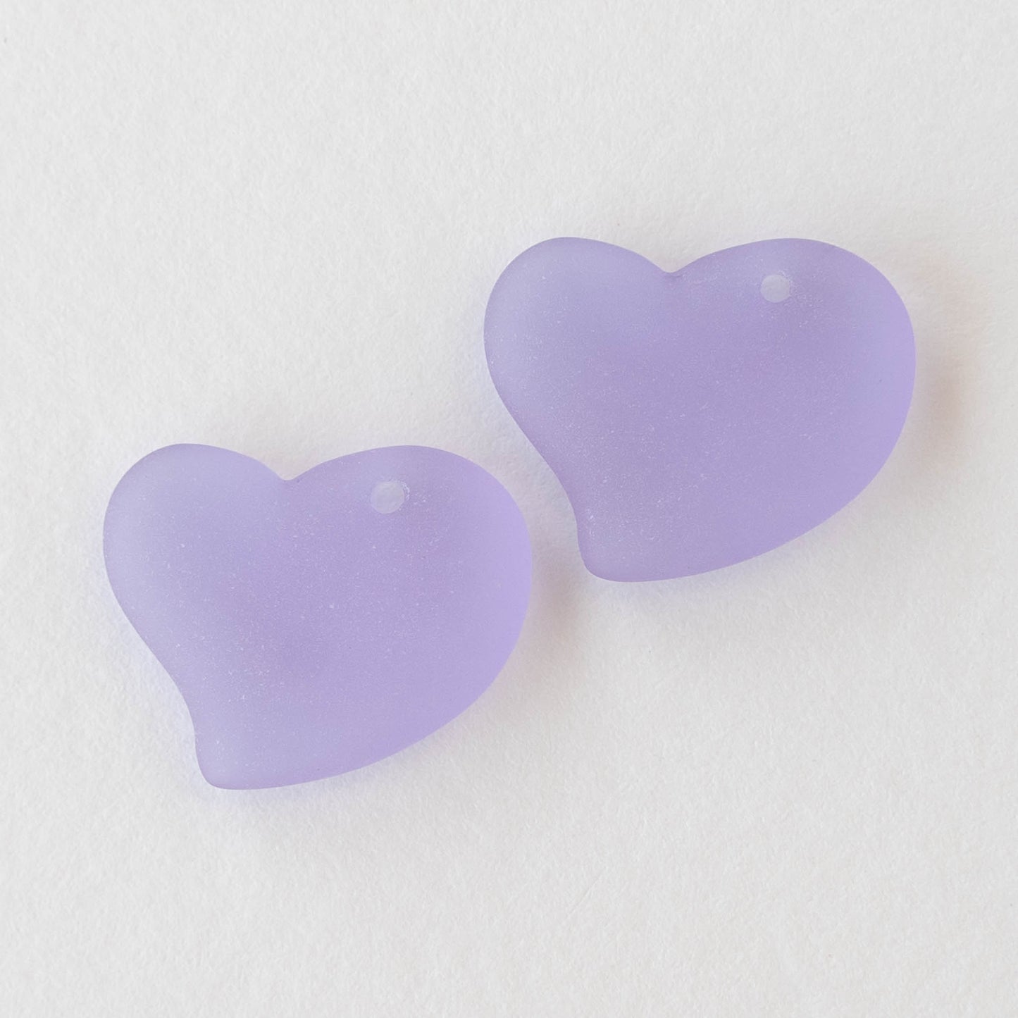 18mm Frosted Glass Hearts - Lavender - 2 Beads