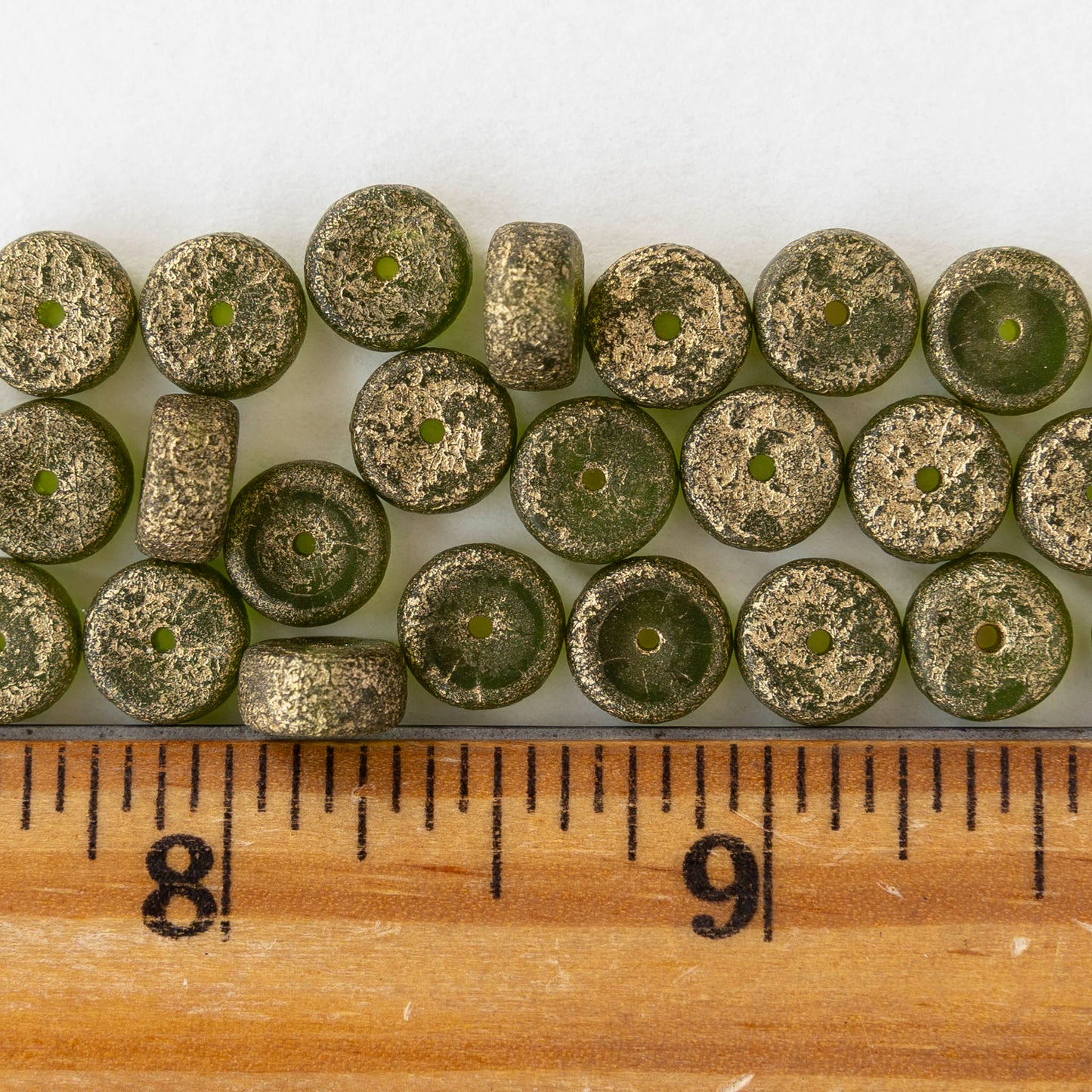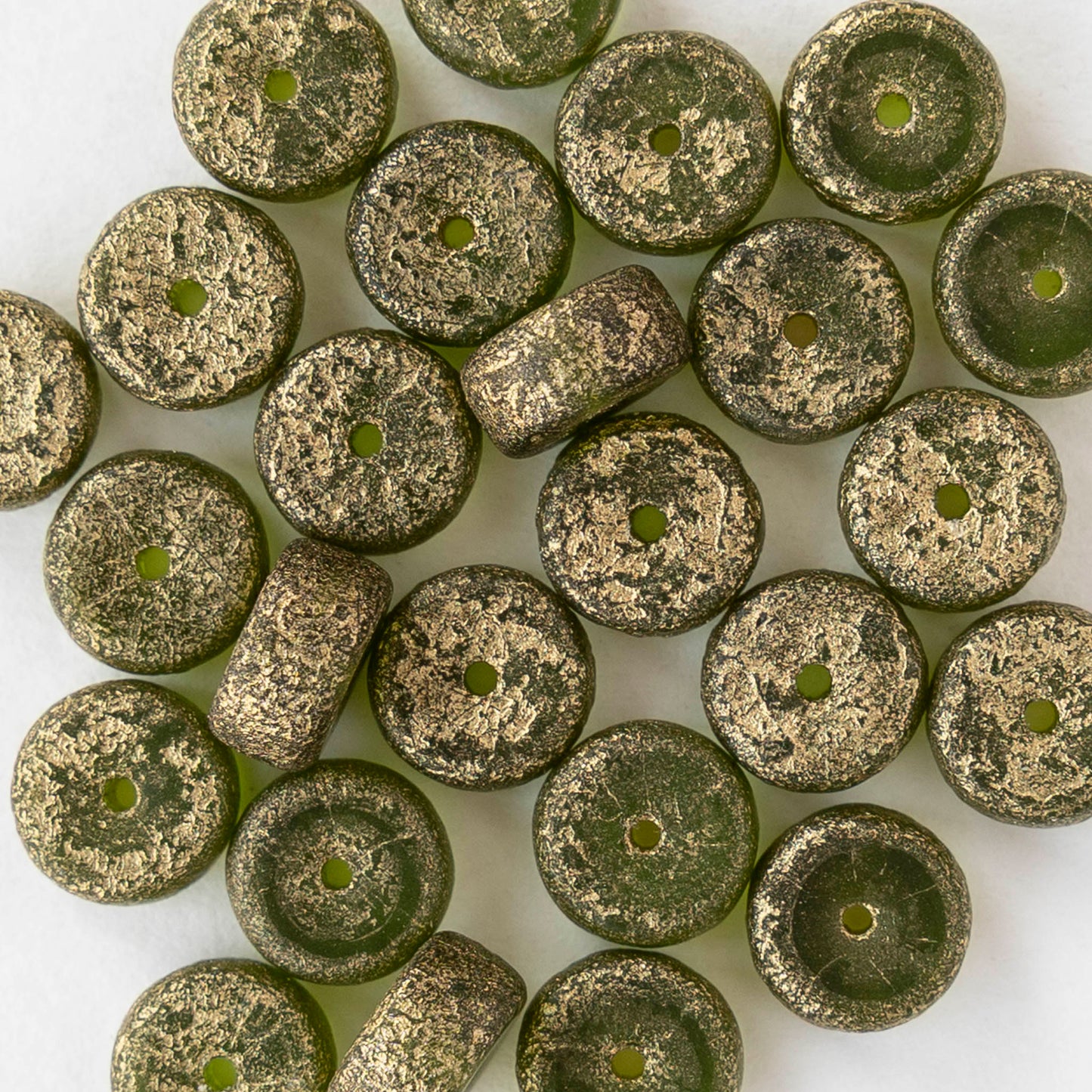 4x8mm Glass Heishi Beads - Etched Peridot Gold - 10 or 20 beads