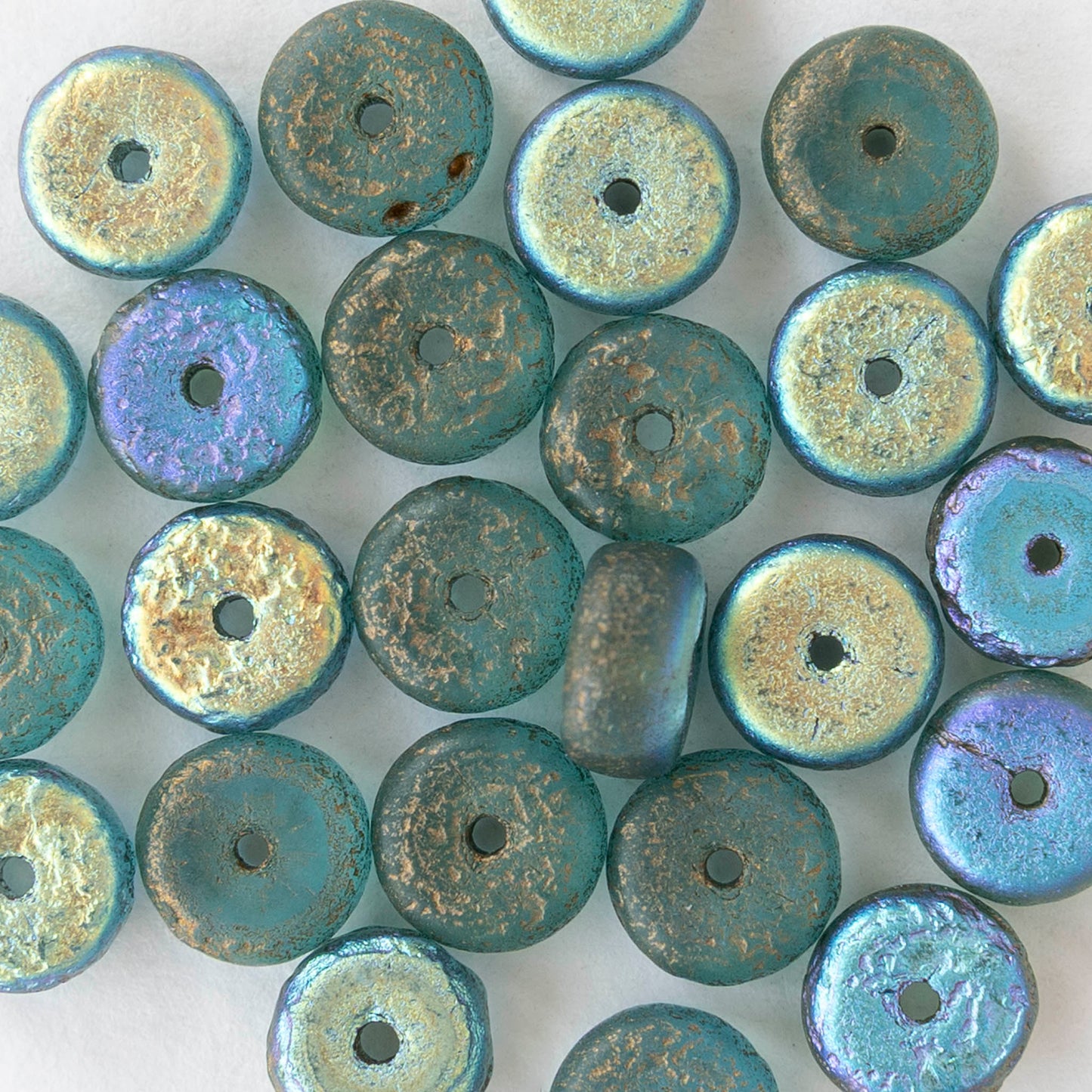 4x8mm Glass Heishi Beads - Etched Sky Blue AB Gold Finish - 10 or 20 beads