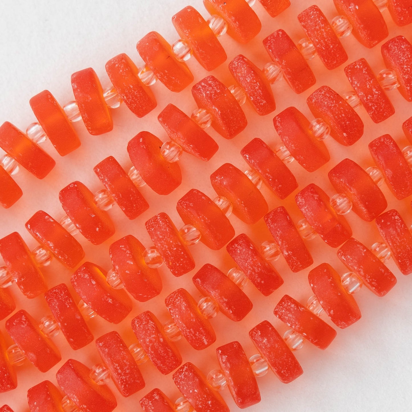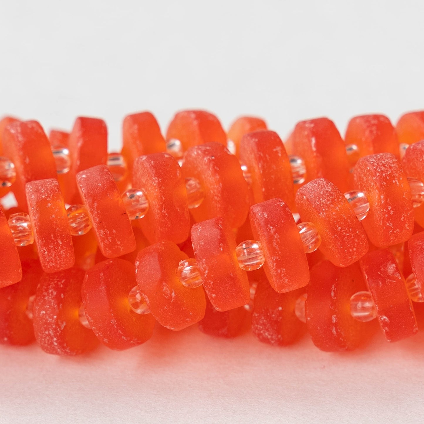 9mm Frosted Glass Heishi Beads - Hyacinth Orange - Choose Amount