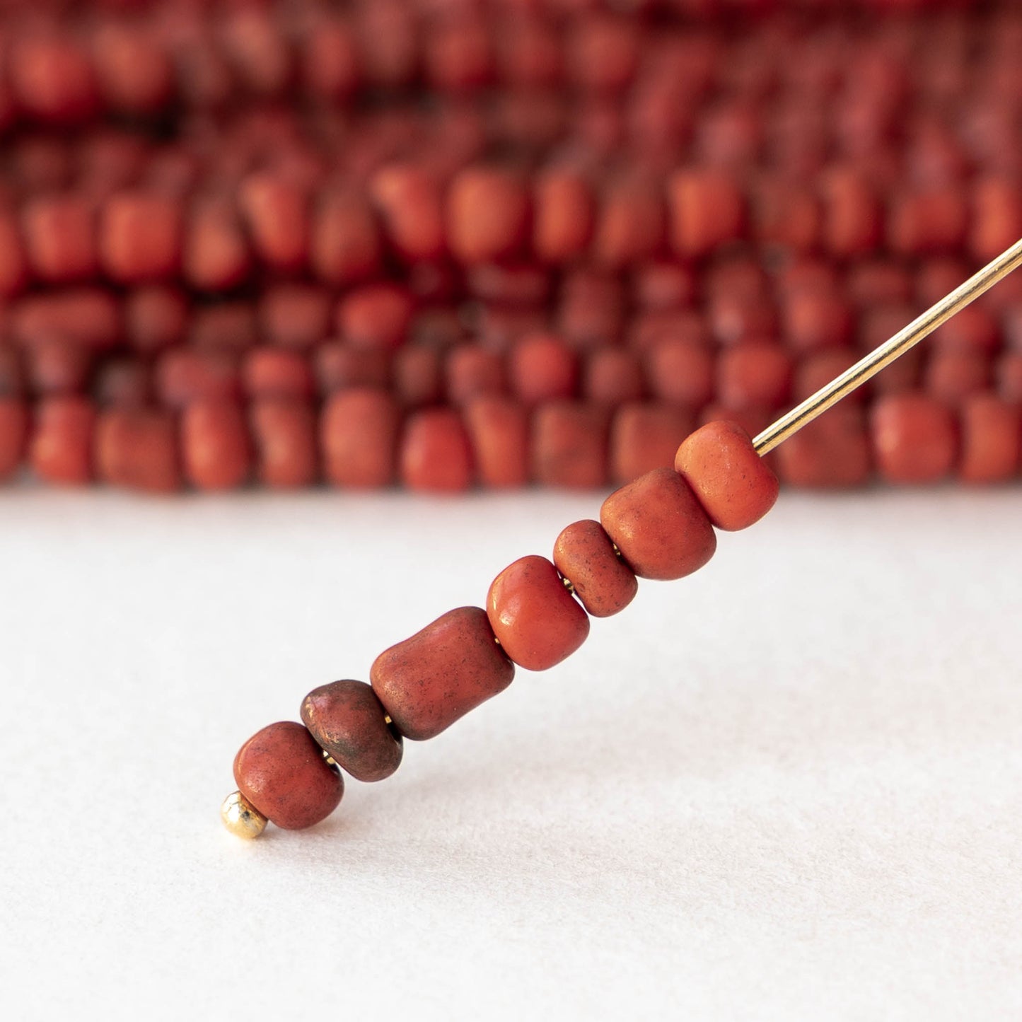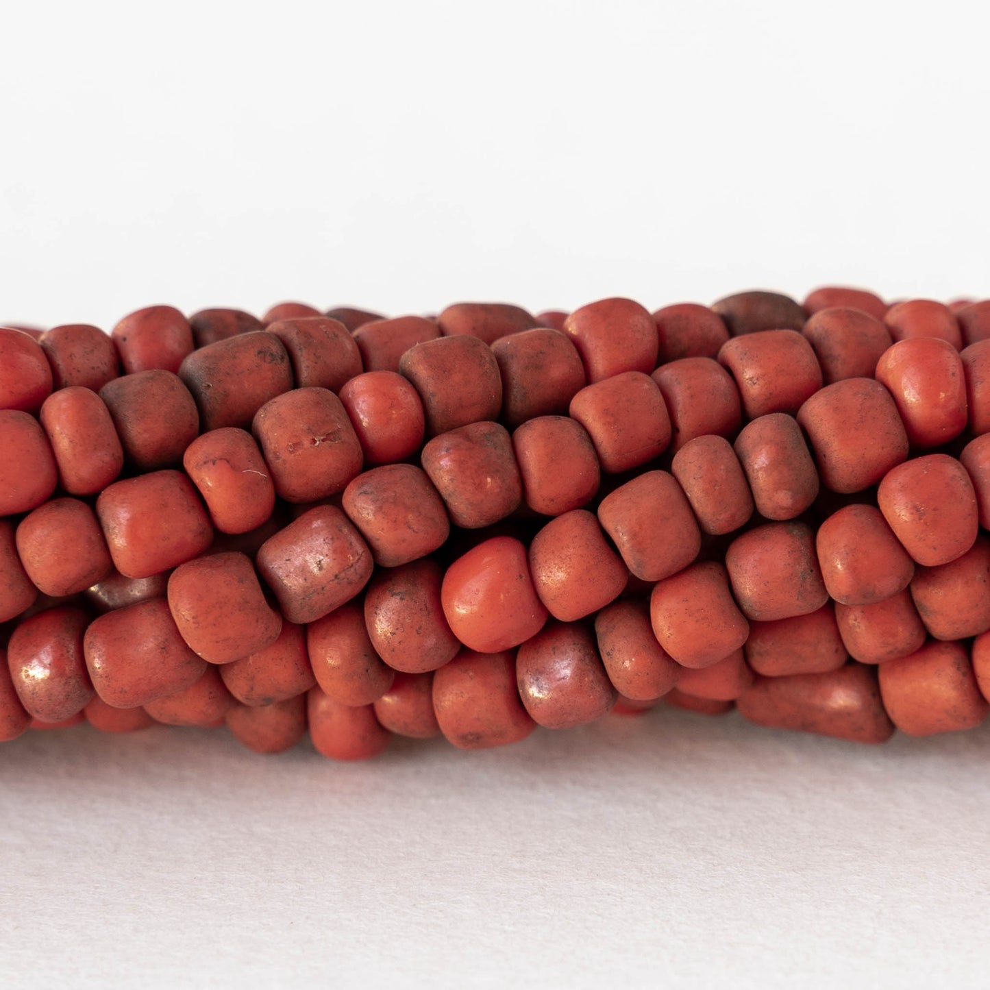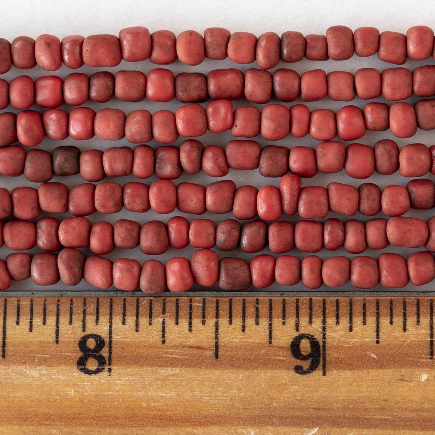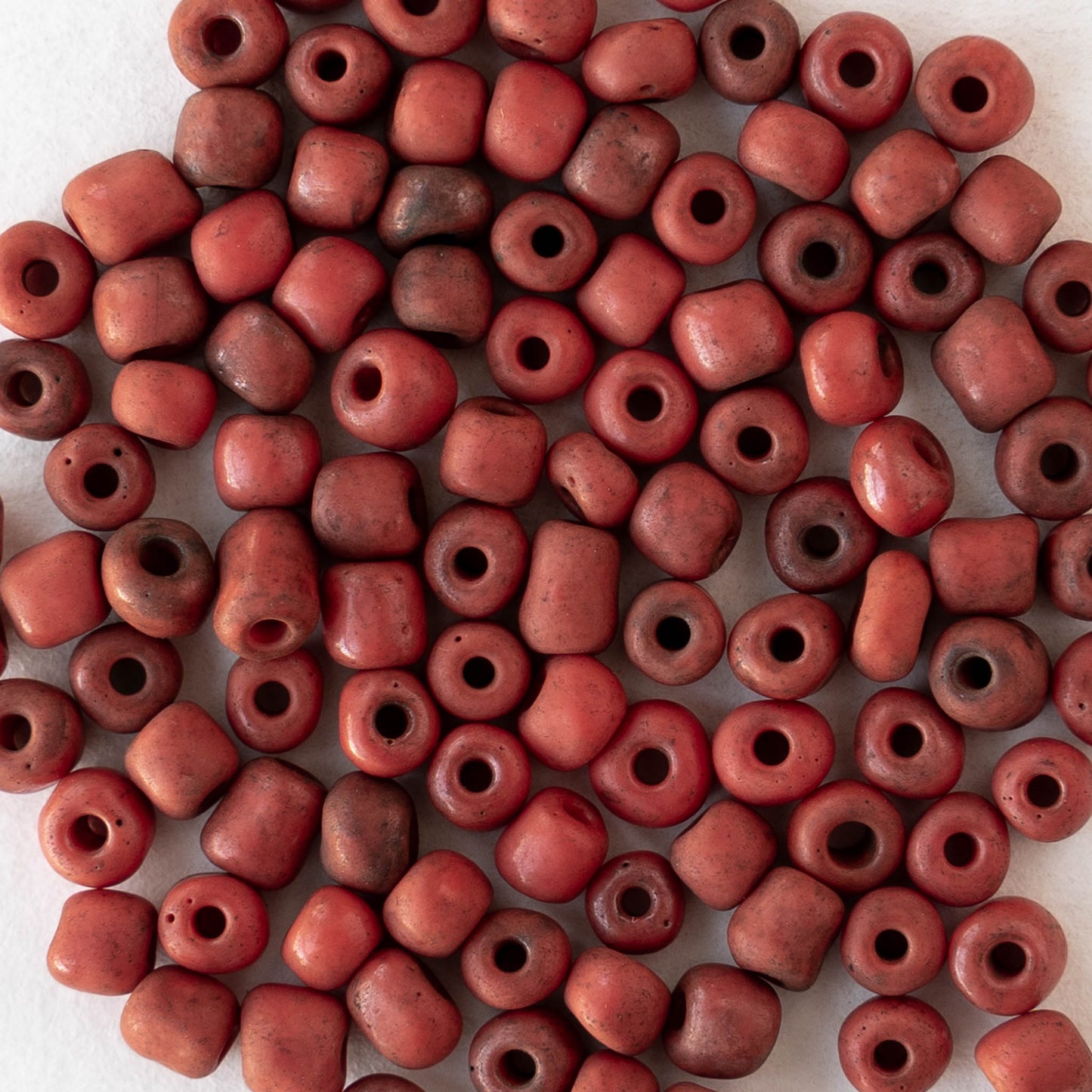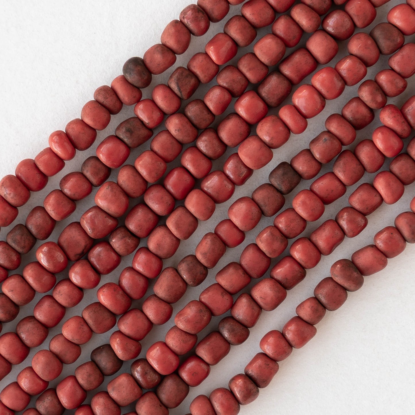 4mm Rustic Indonesian Glass Seed Beads - Opaque Red - Whole or Half Strand