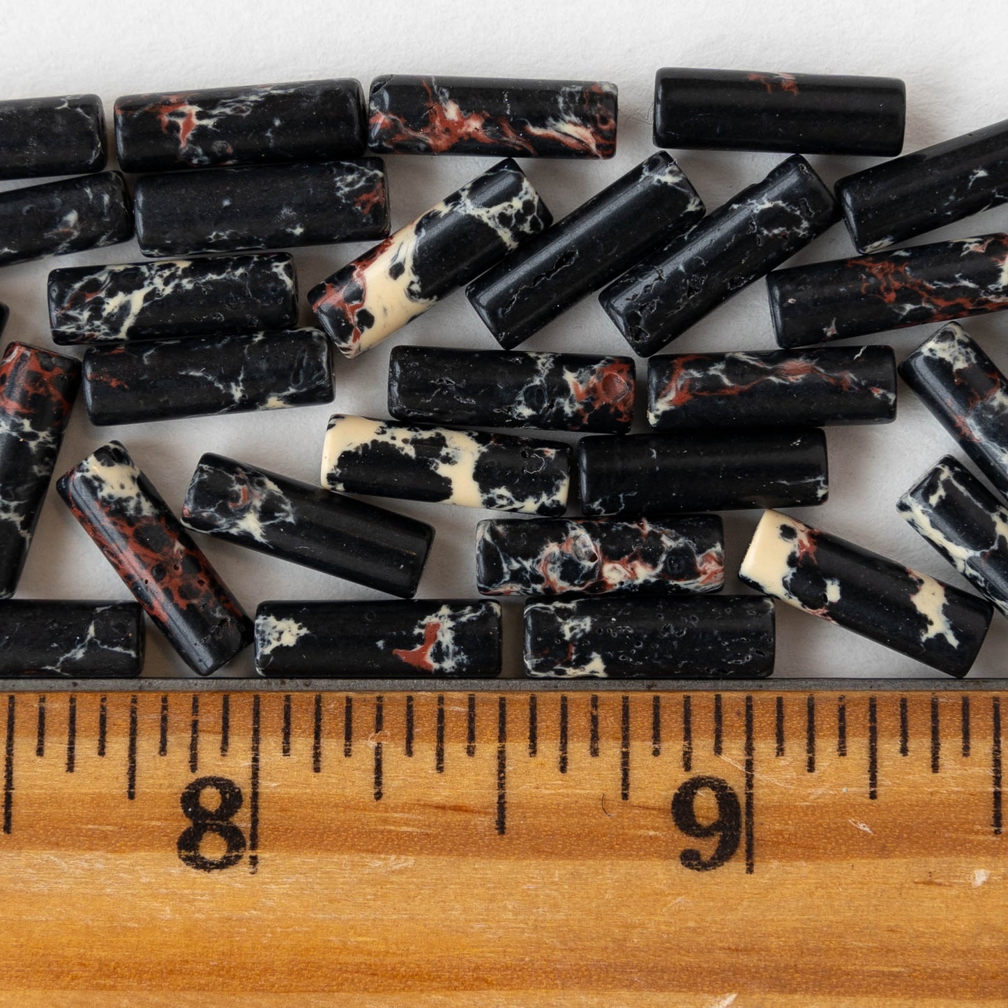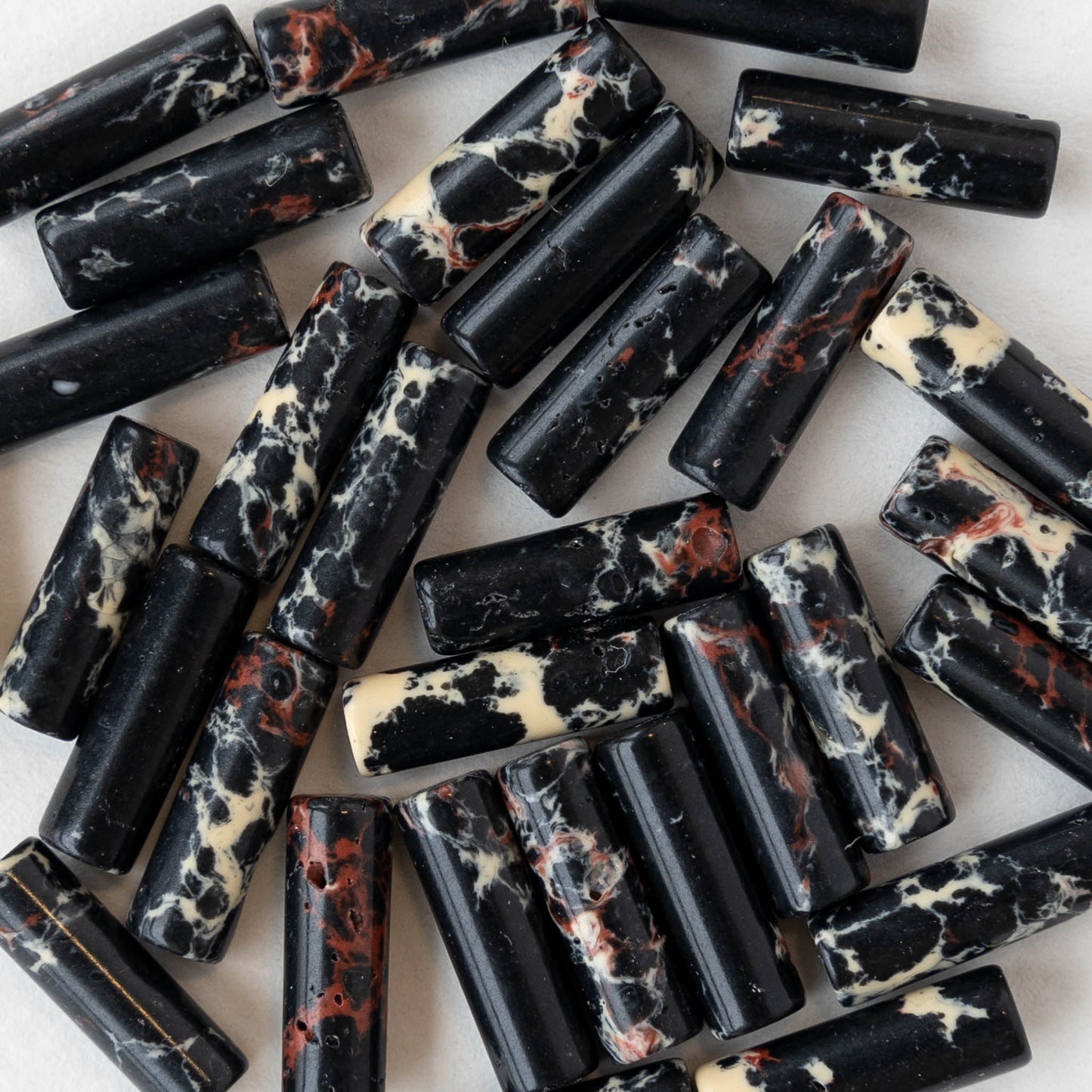 4x14mm Impression Jasper Tube Beads - Black - 28 beads