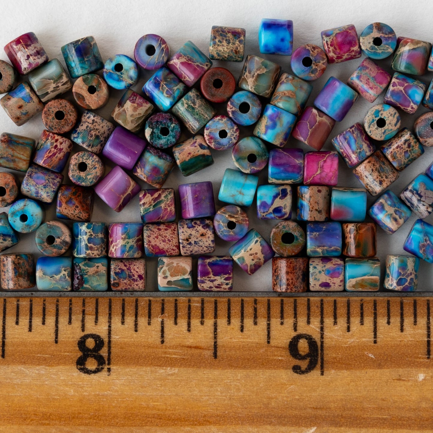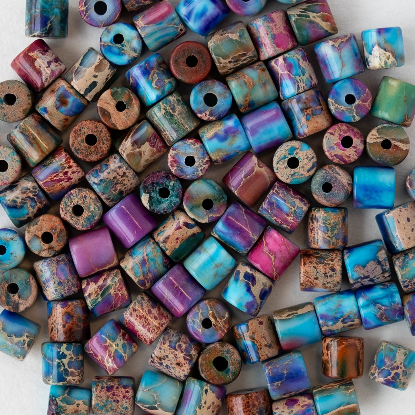 4x4.5mm Impression Jasper Tube Beads - Pink and Blue Mix - 30 beads