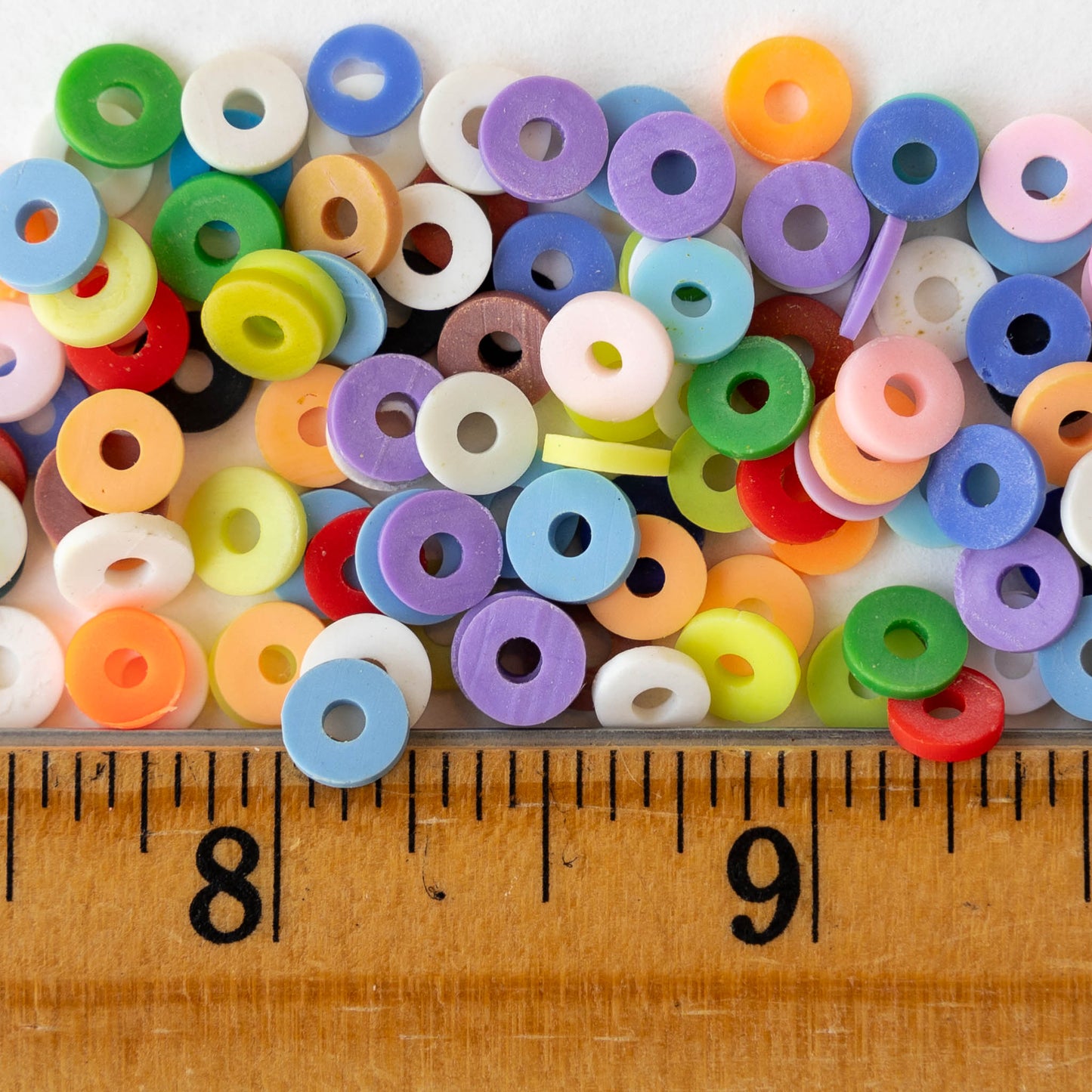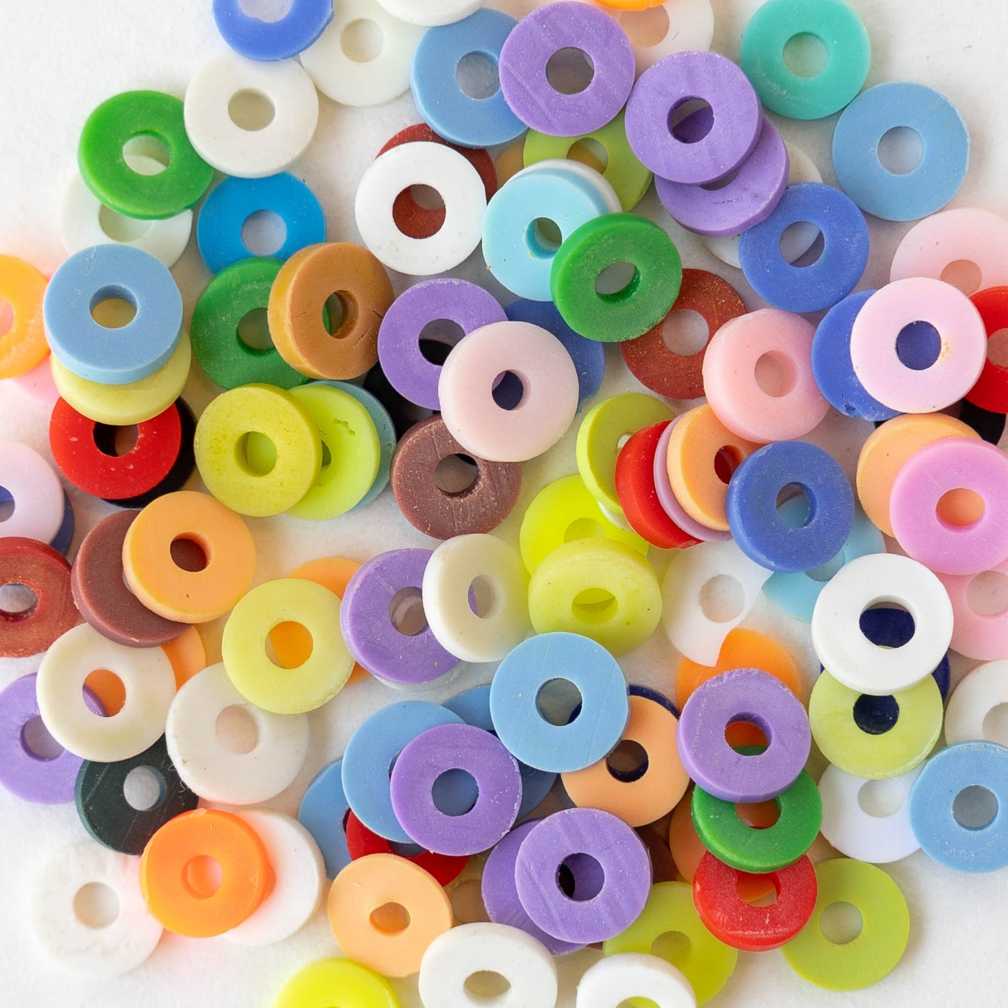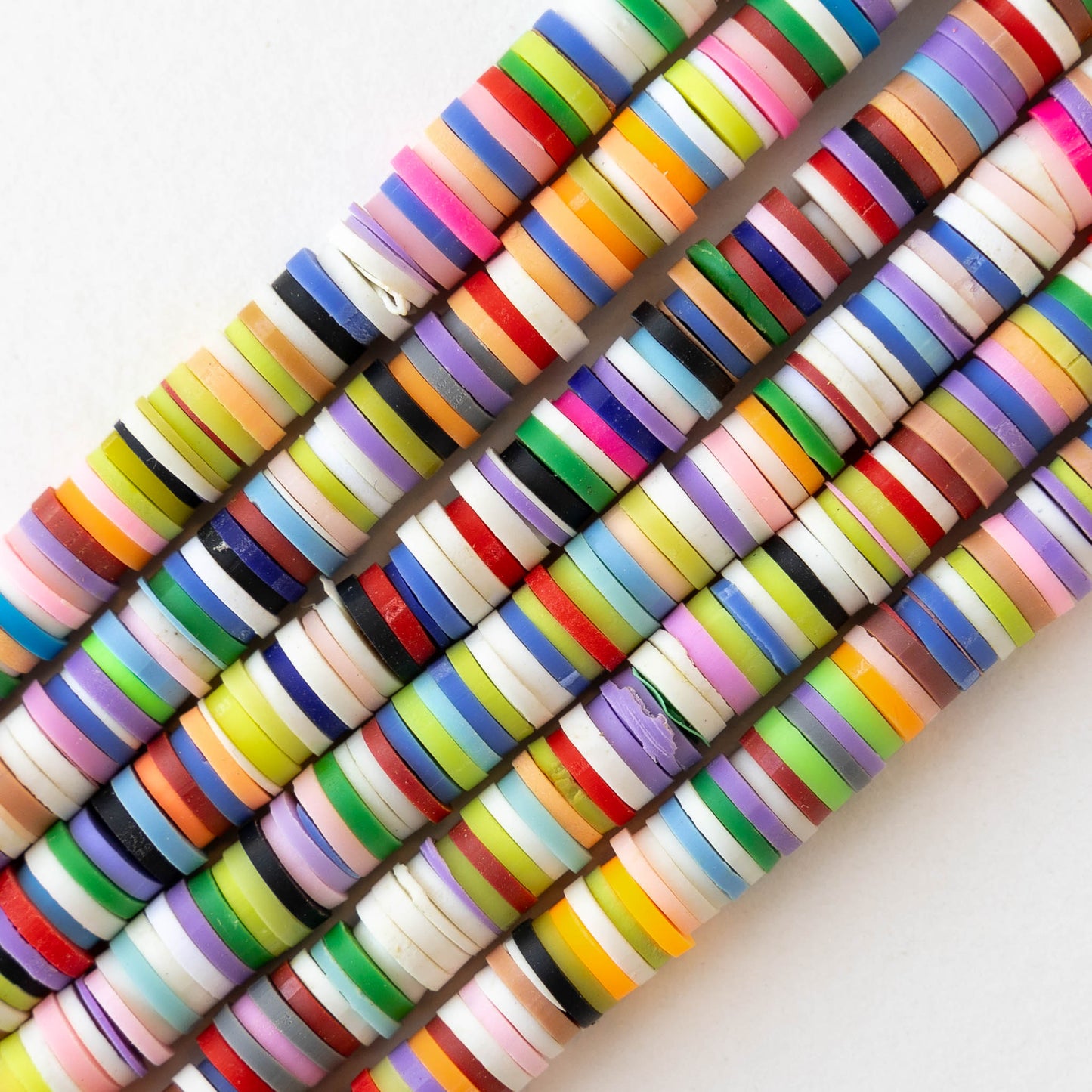 6mm Polymer Clay Wheel Beads - Rainbow Mix - 16 inches