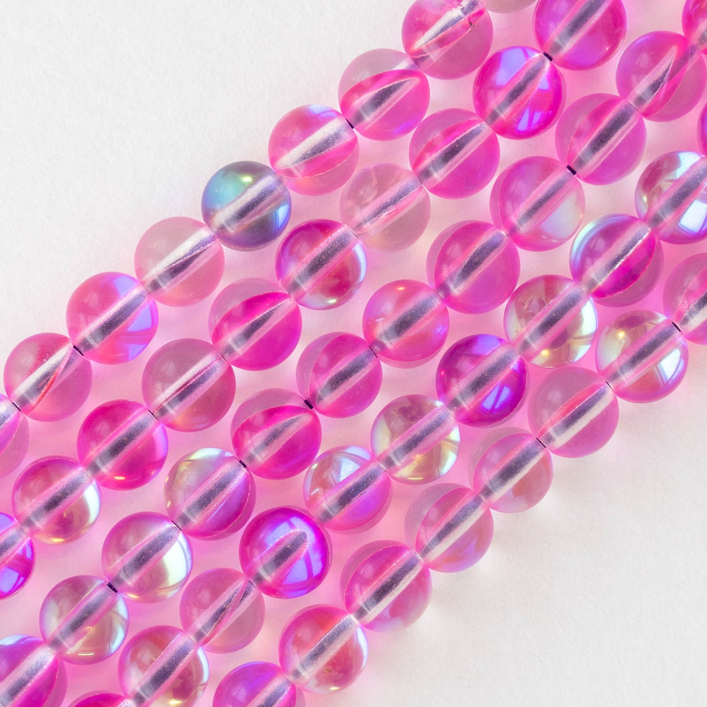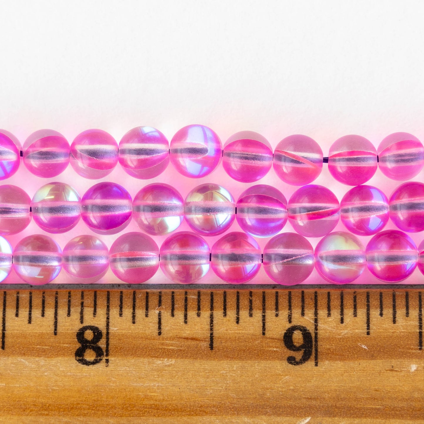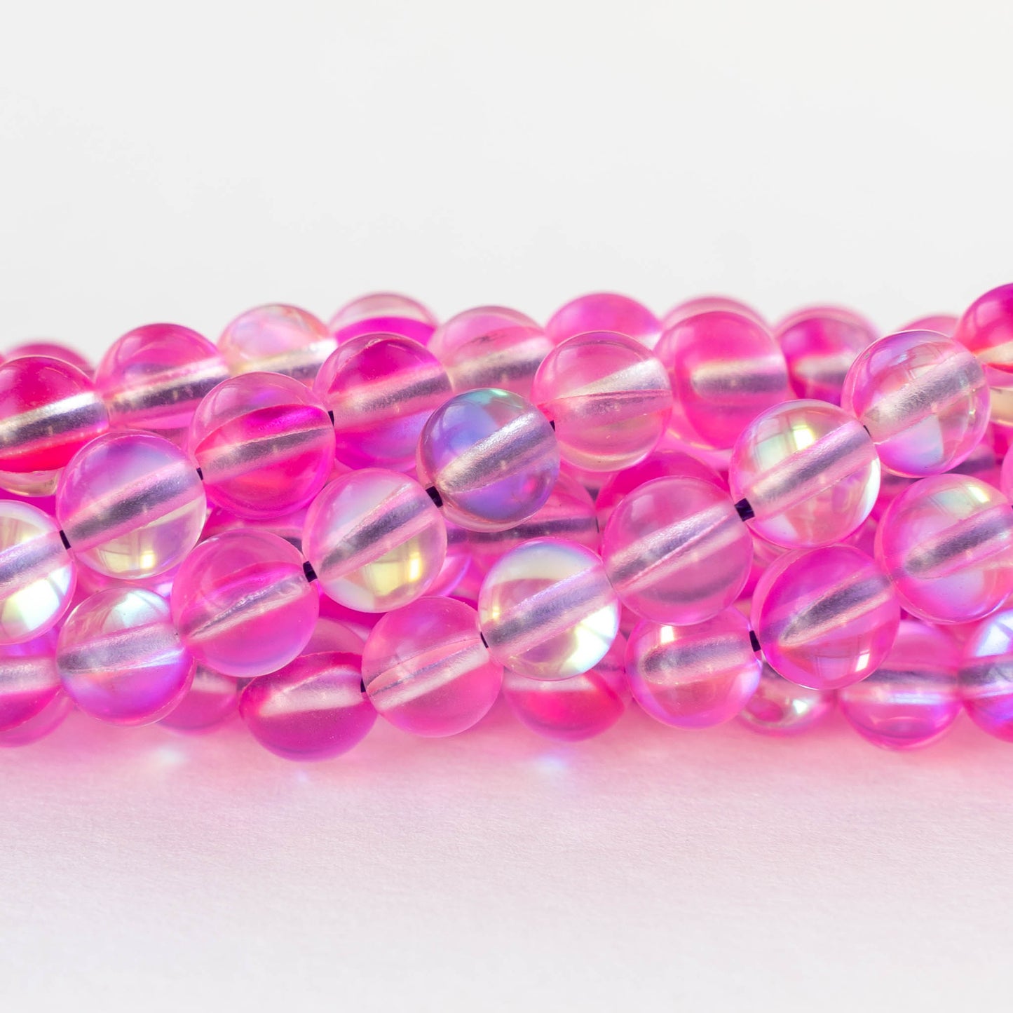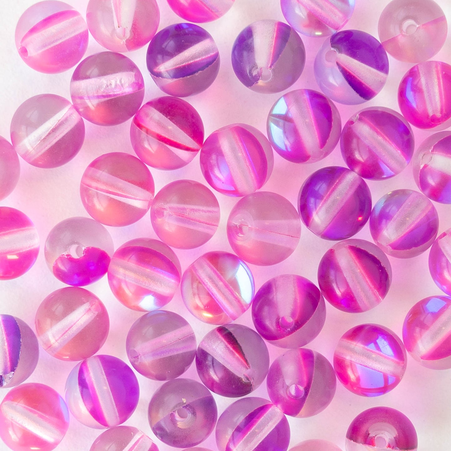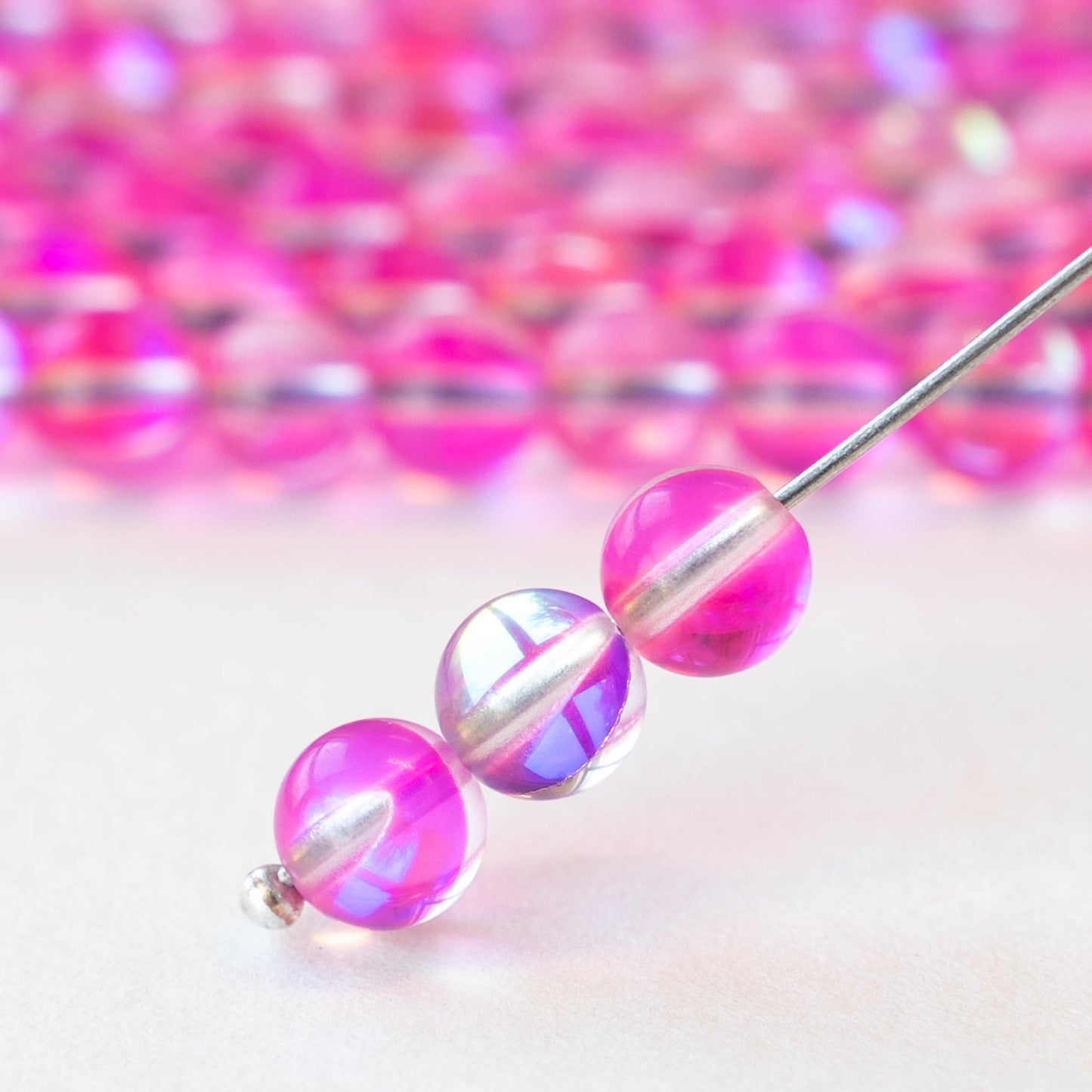 6mm Round Glass Beads - Bright Pink Aura - 30 beads