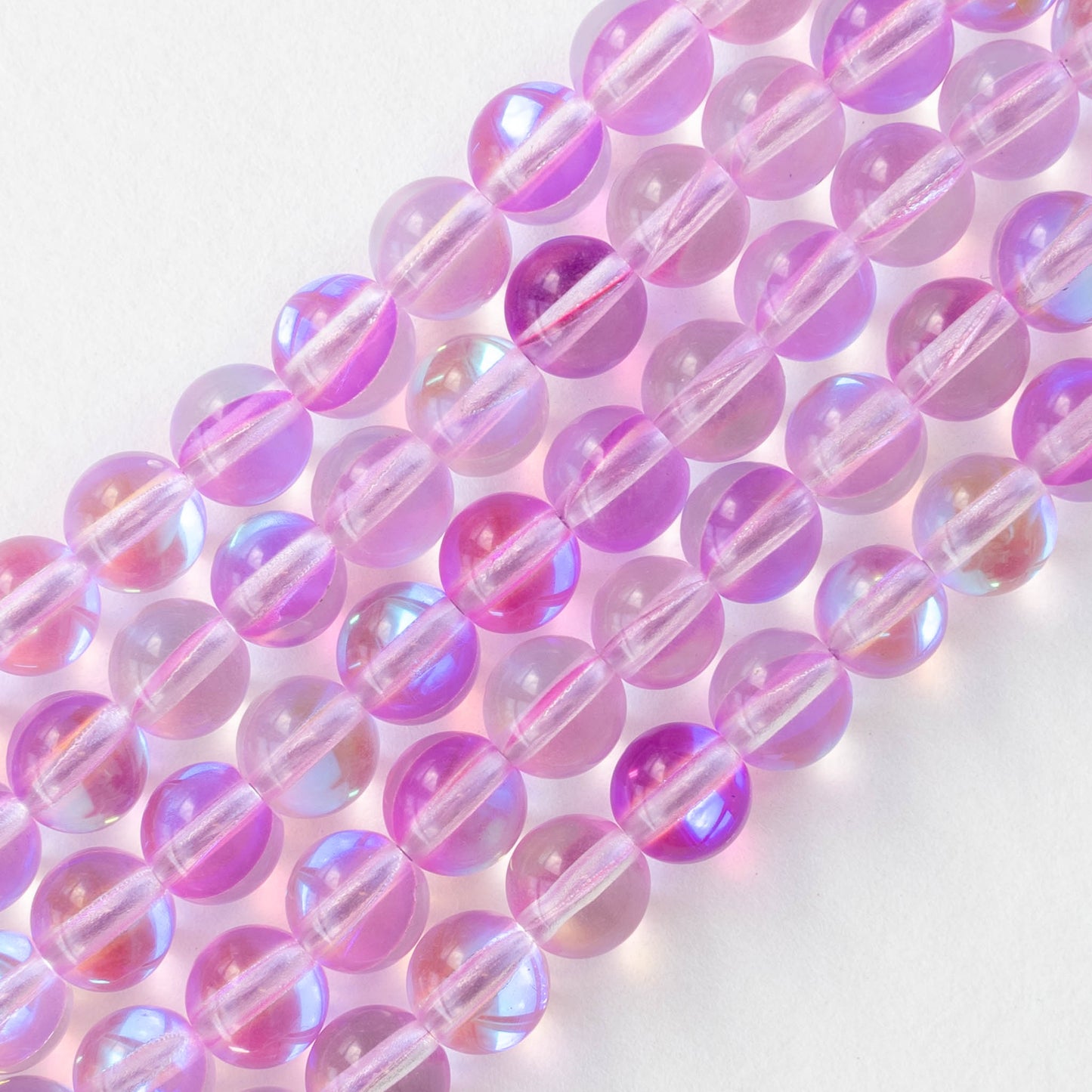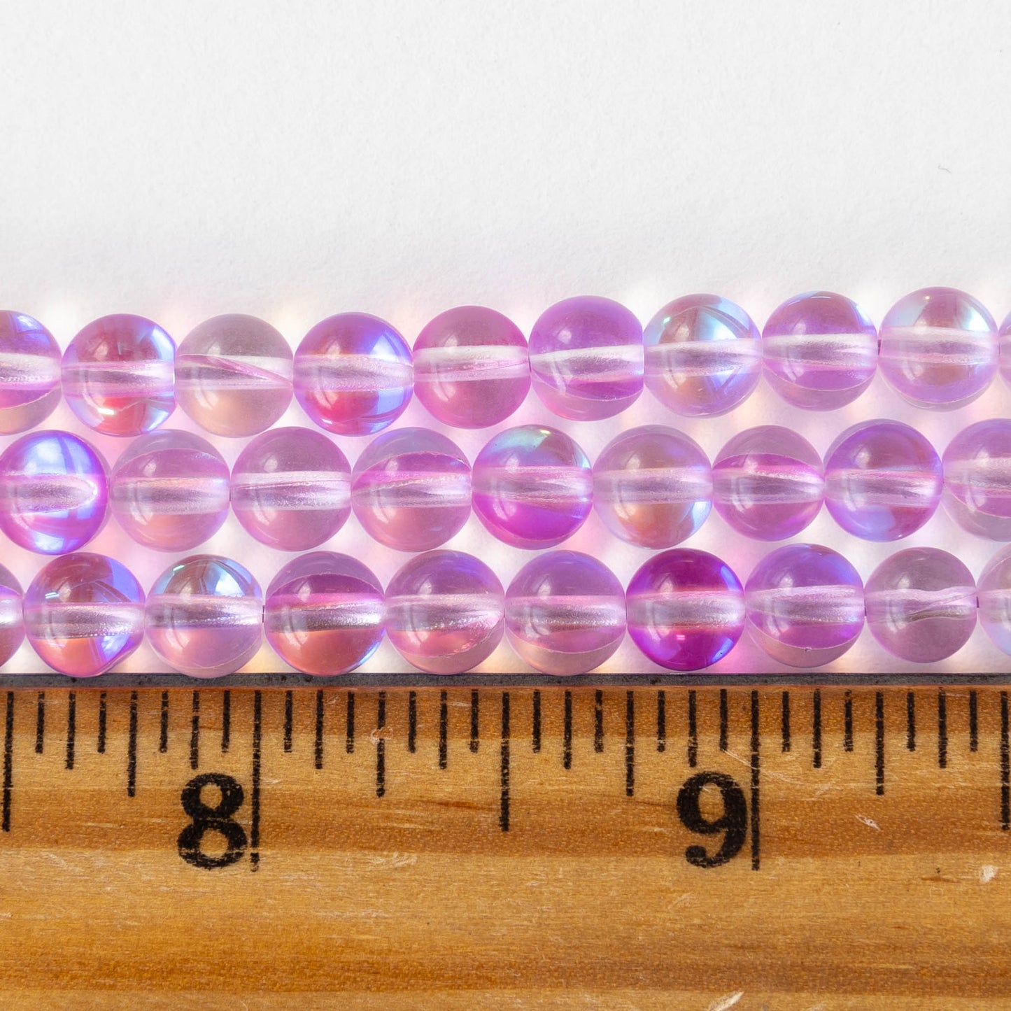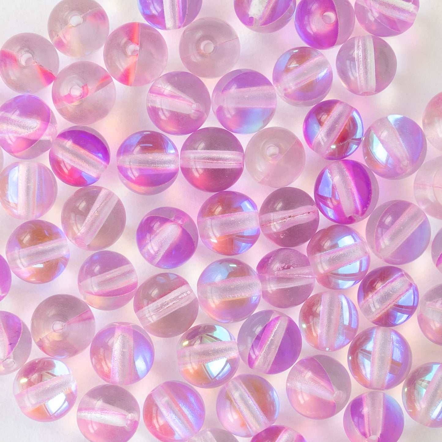 6mm Round Glass Beads - Light Pink Aura - 30 beads