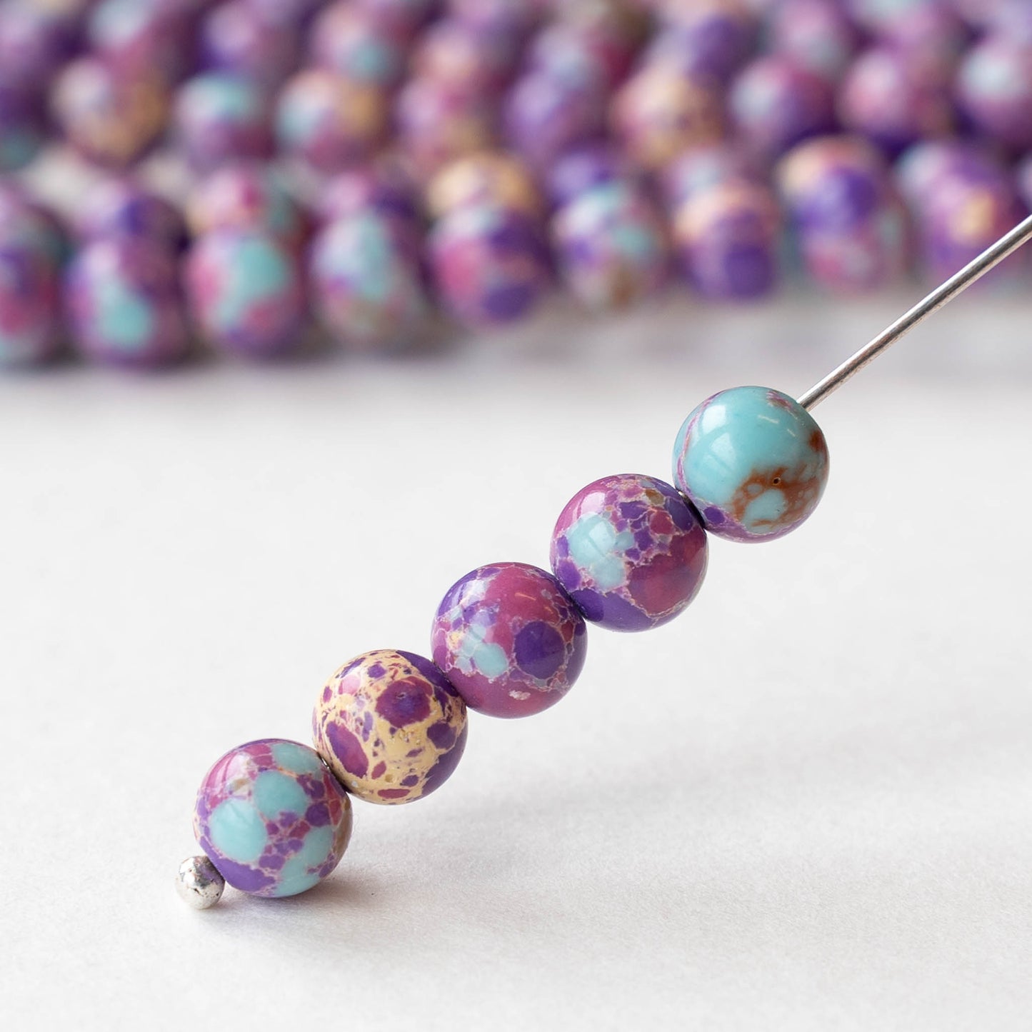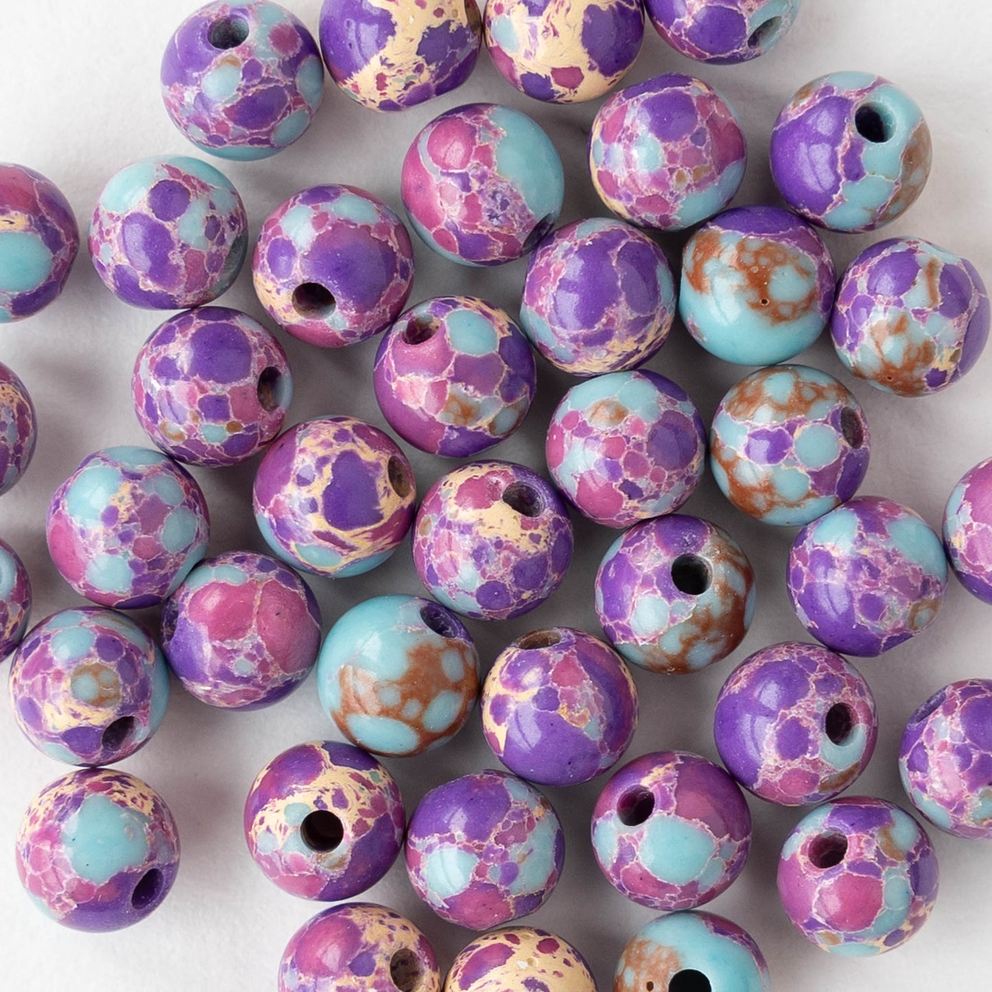 6mm Round Impression Jasper Beads - Purple Blue Mix - Whole or Half Strand