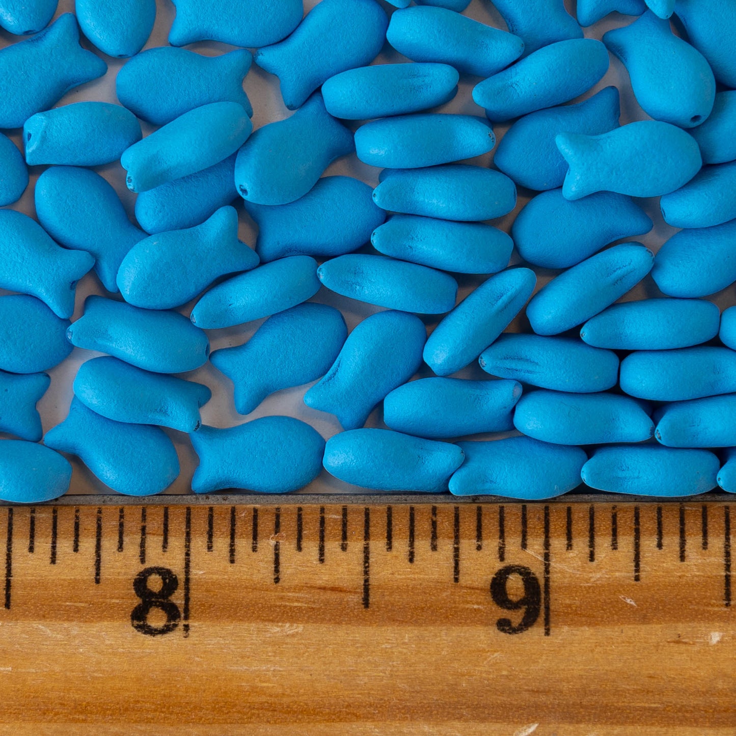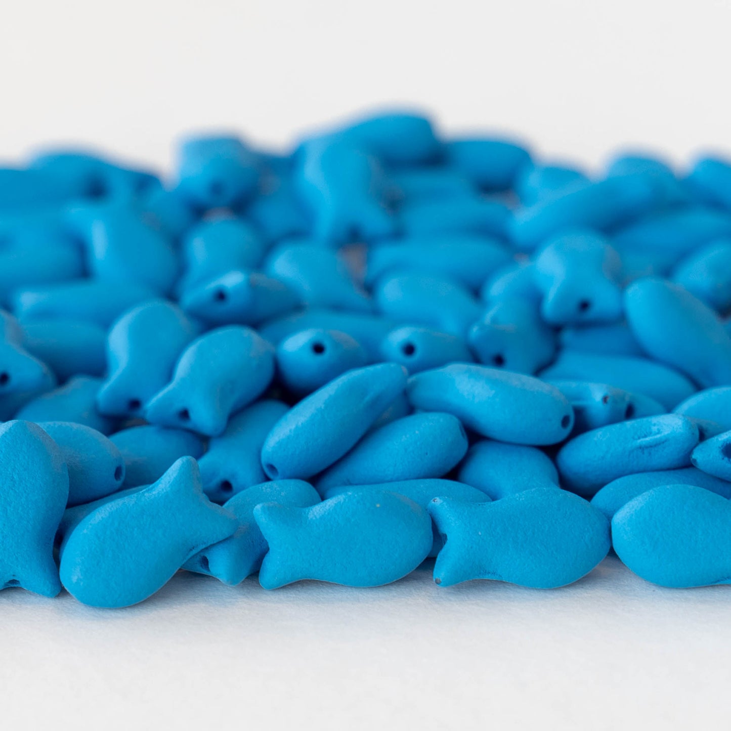 6x10mm Glass Fish Beads - Opaque Blue Matte - 30 beads