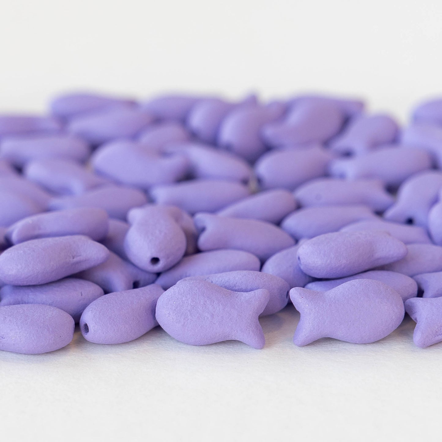 6x10mm Glass Fish Beads - Opaque Lavender Matte - 30 beads