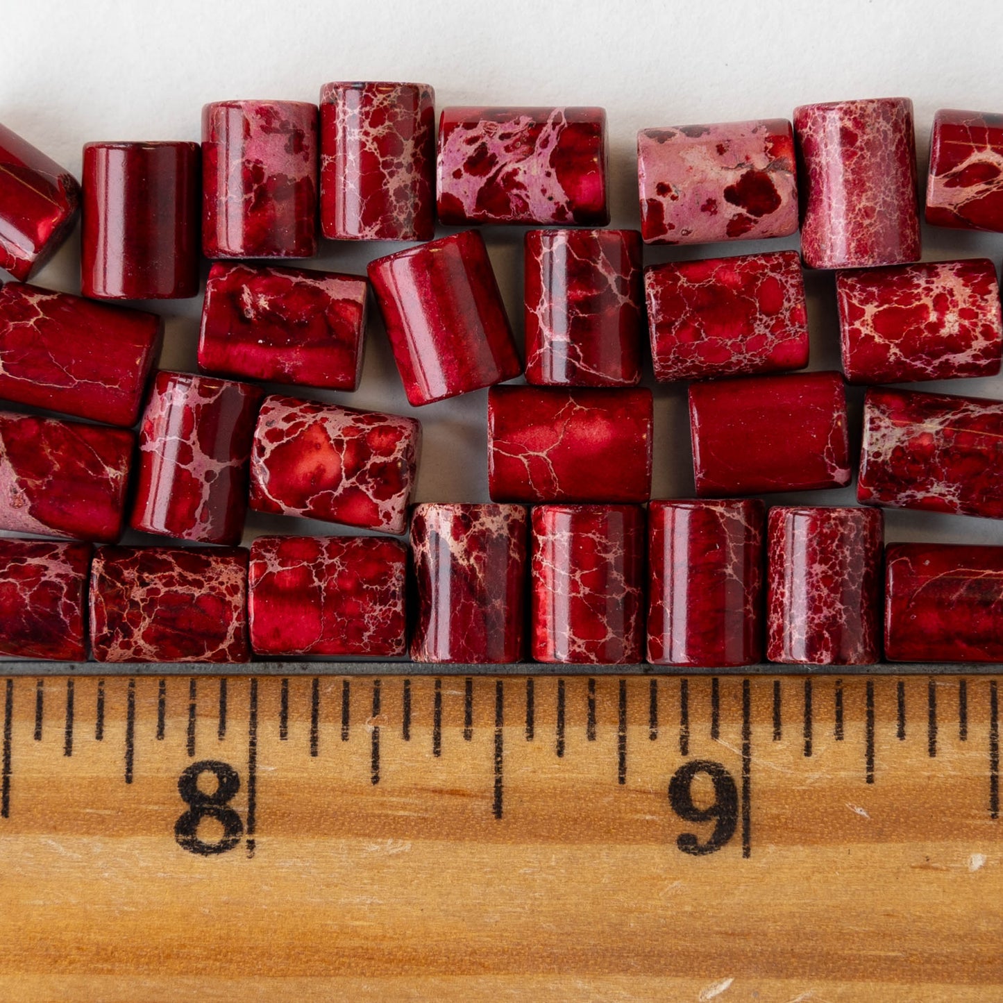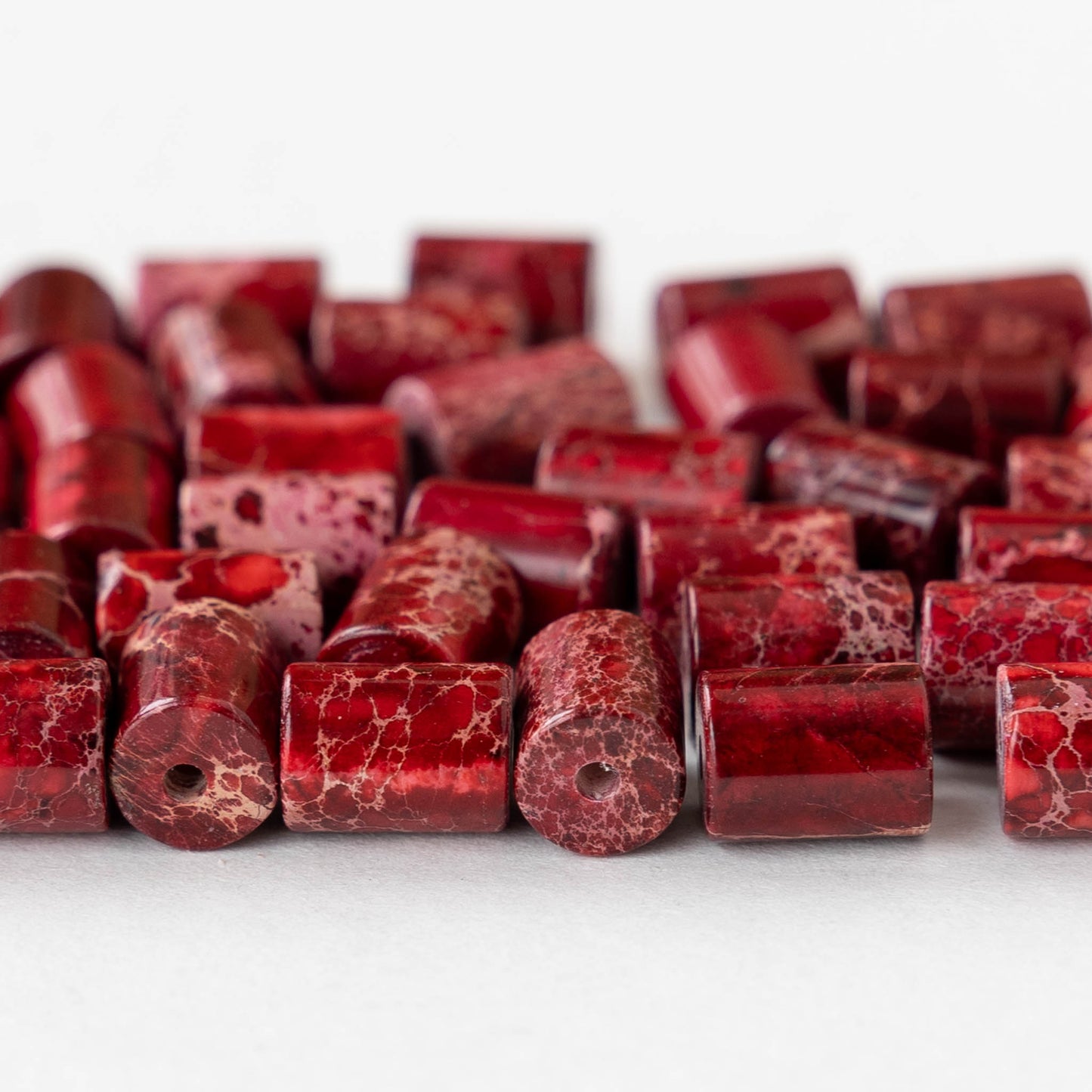 6x8mm Impression Jasper Tube Beads - Red - 20 beads
