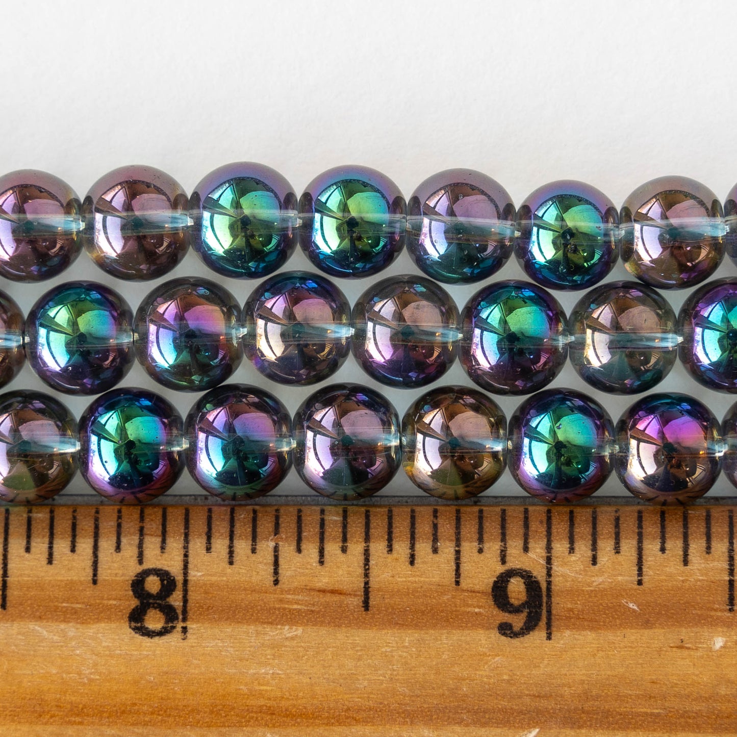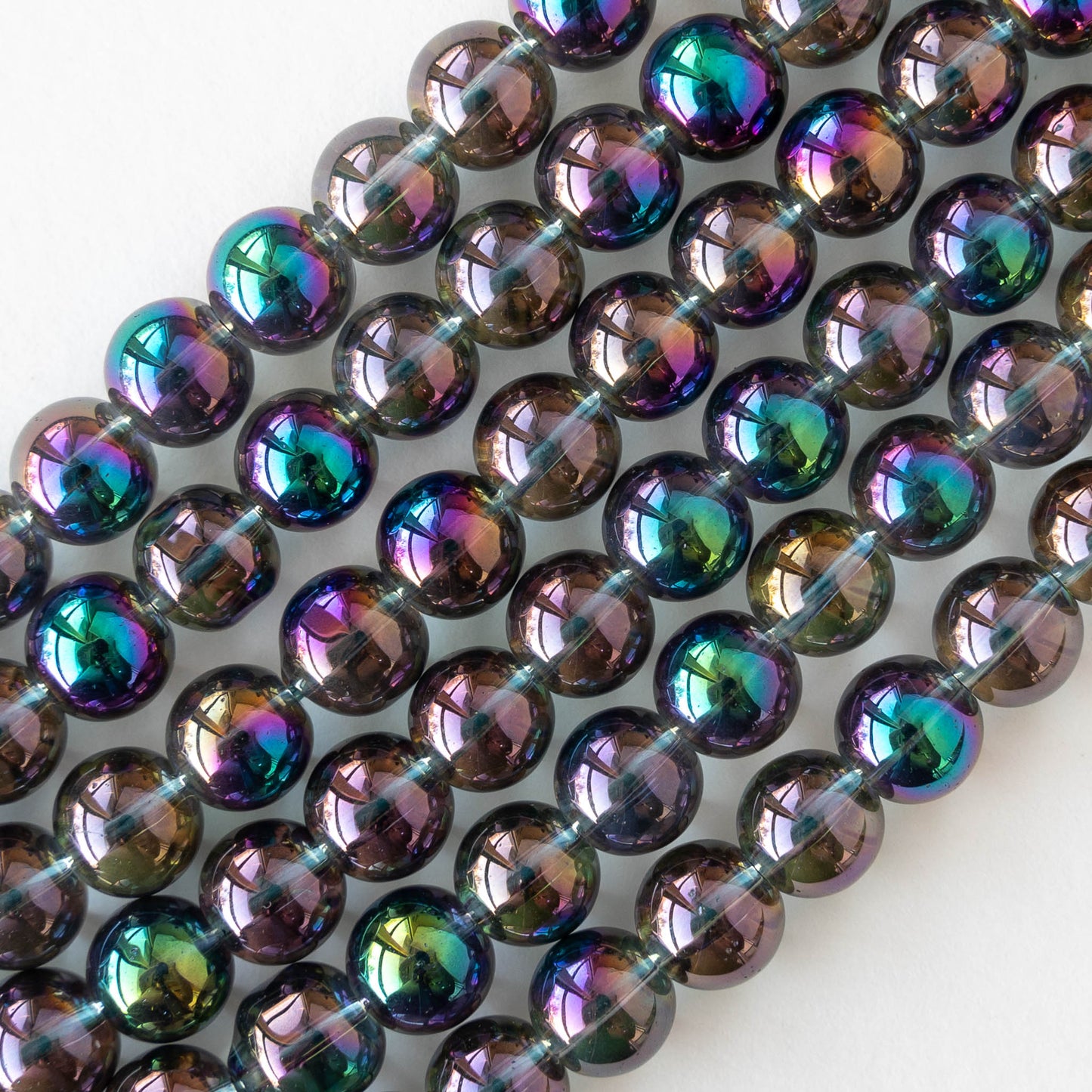 8mm Round Glass Beads - Rainbow Angel Aura - 25 beads