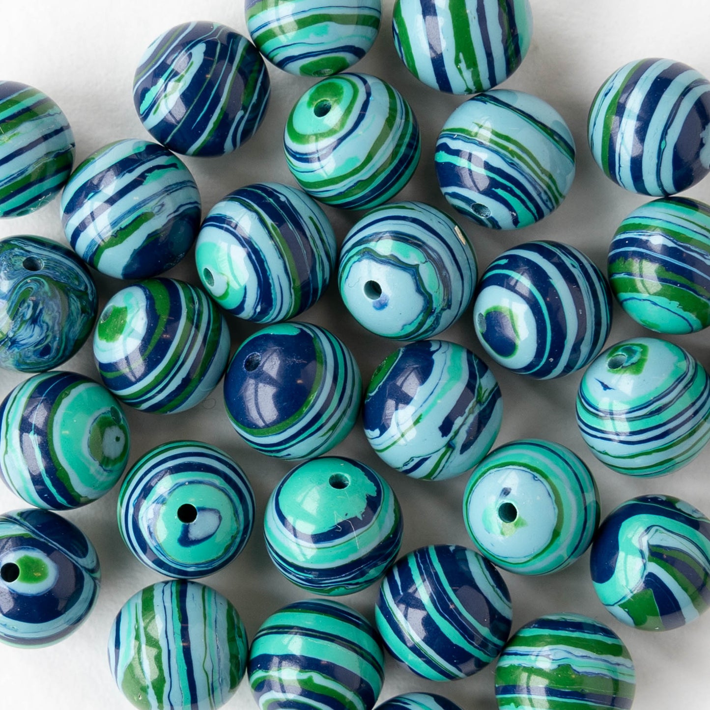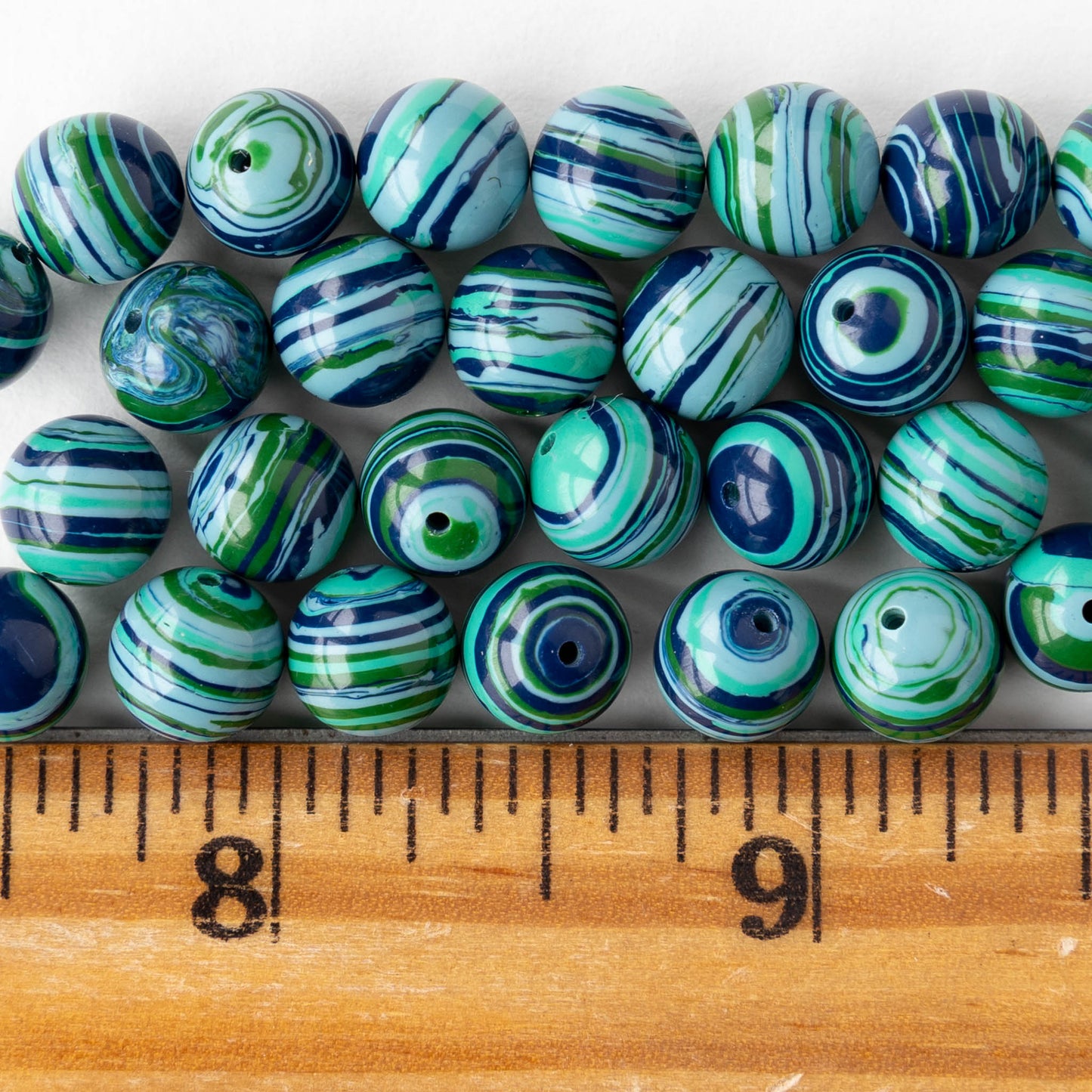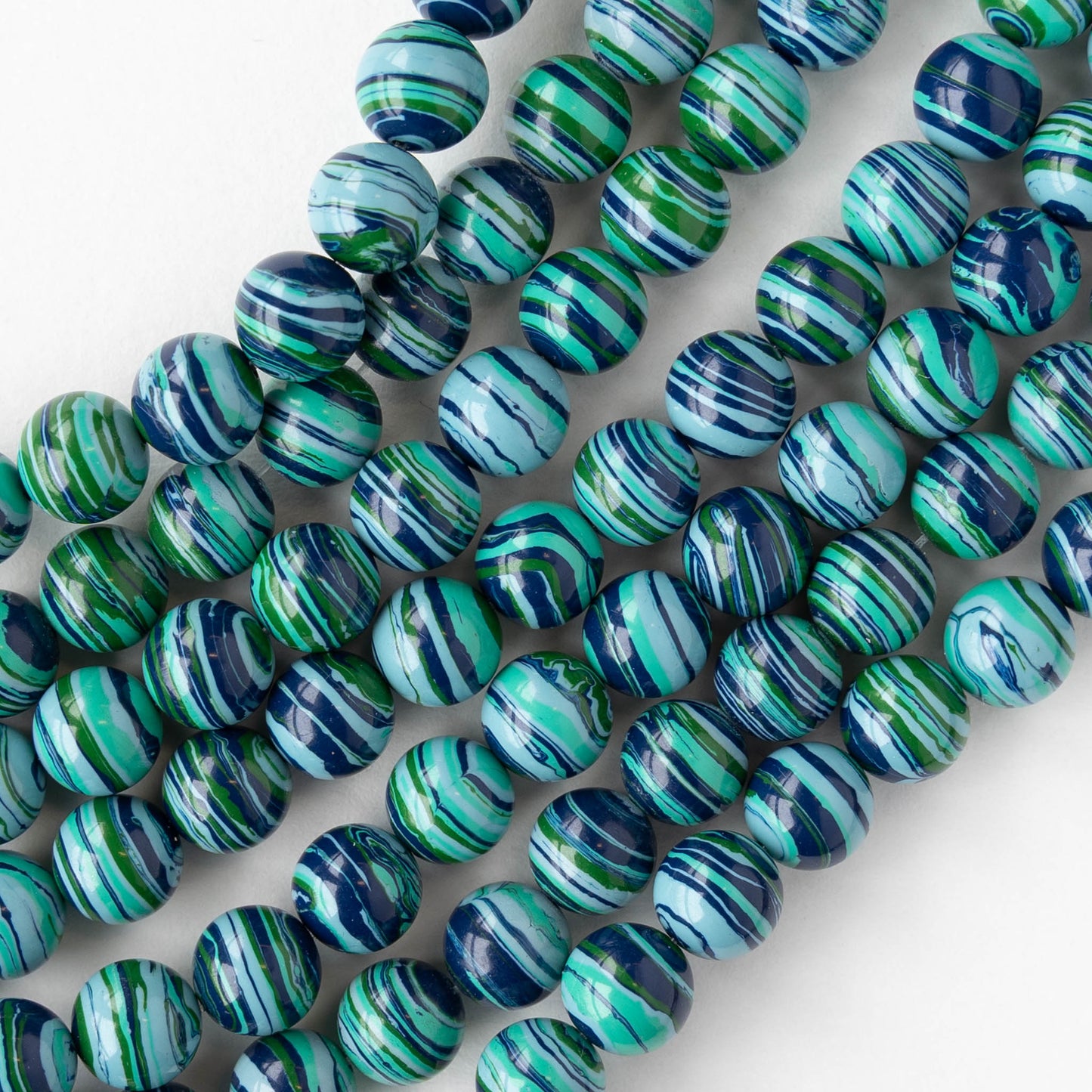 8mm Round Synthetic Malachite Beads - Blue Stripes - Whole or Half Strand