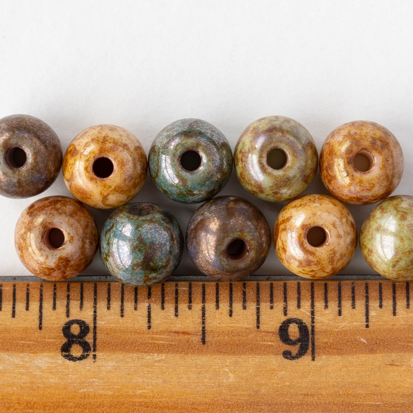 10mm Round Glass Beads - Pastel Picasso Luster Mix - 10 Beads