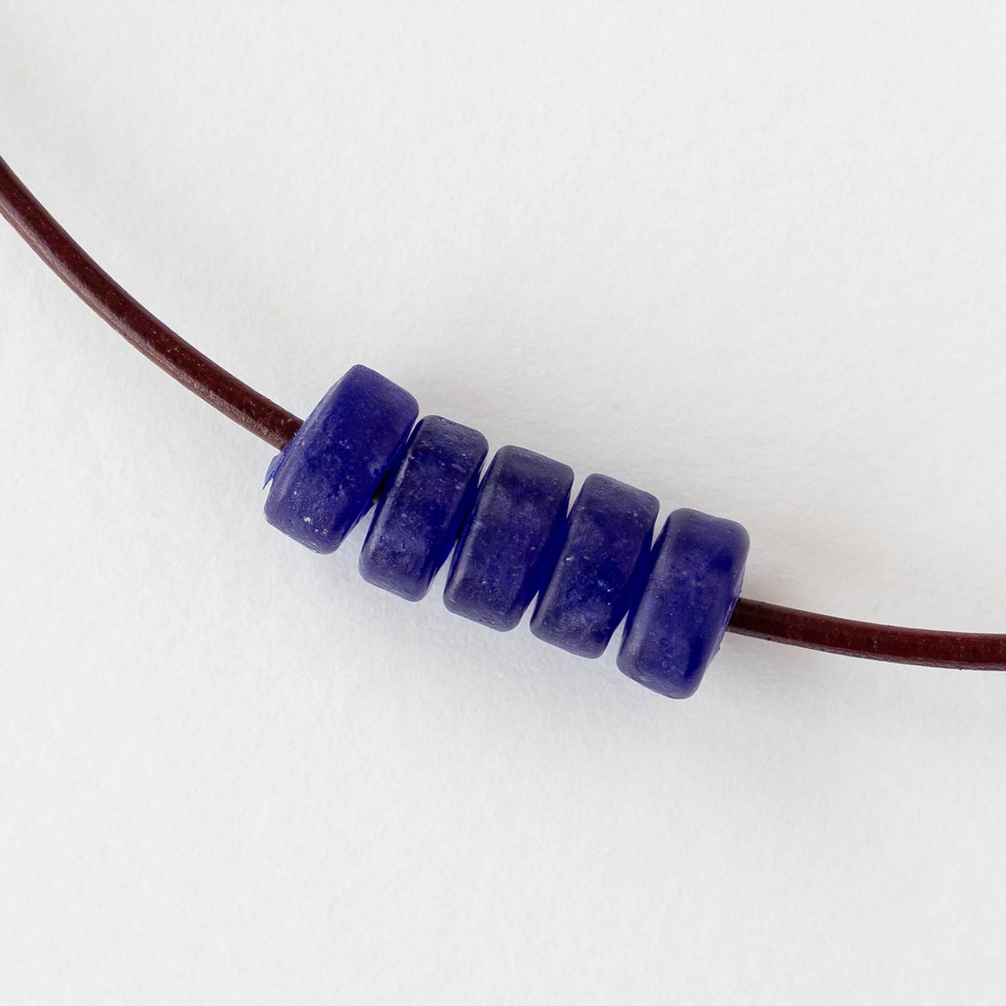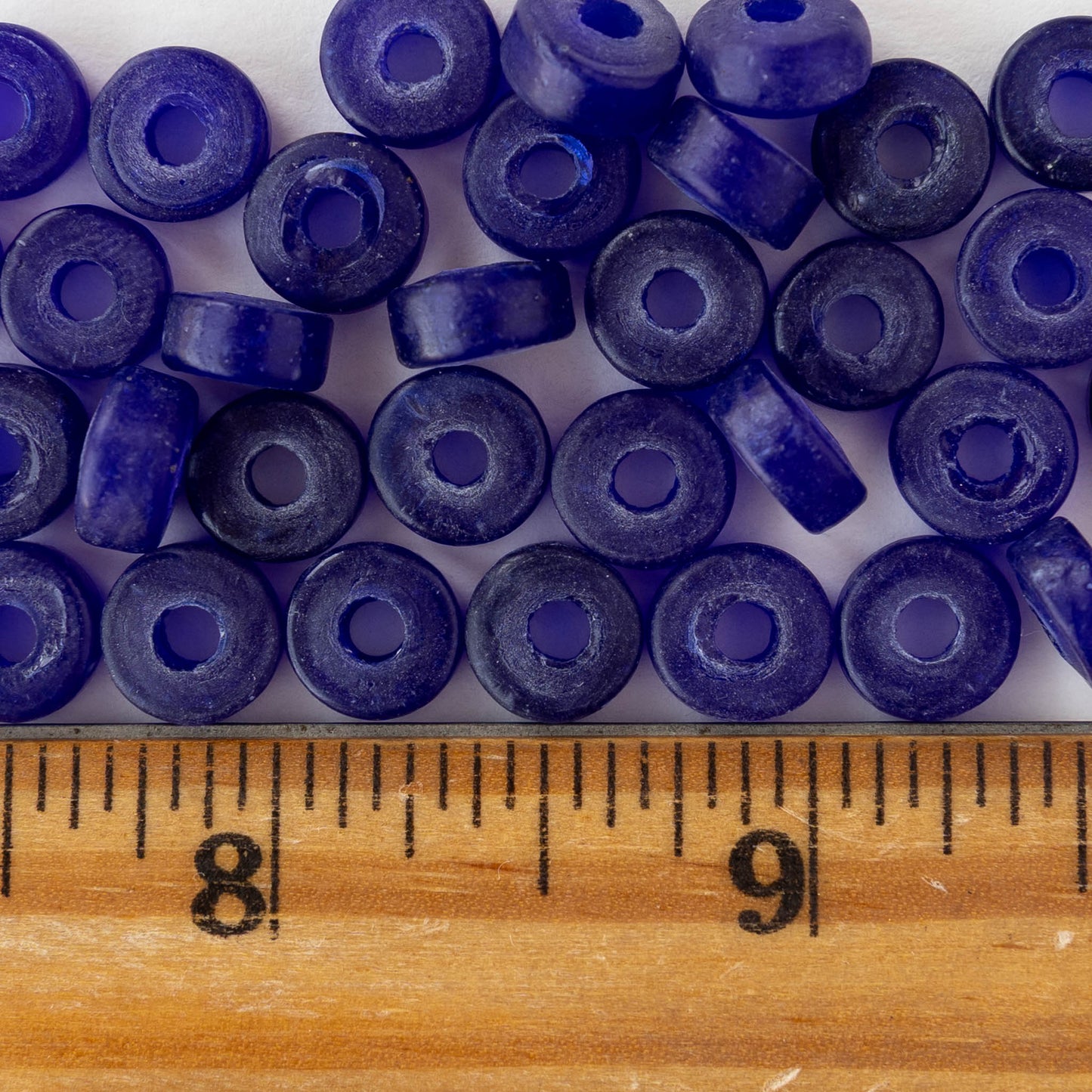 Irregular glass disk beads from Indonesia.
