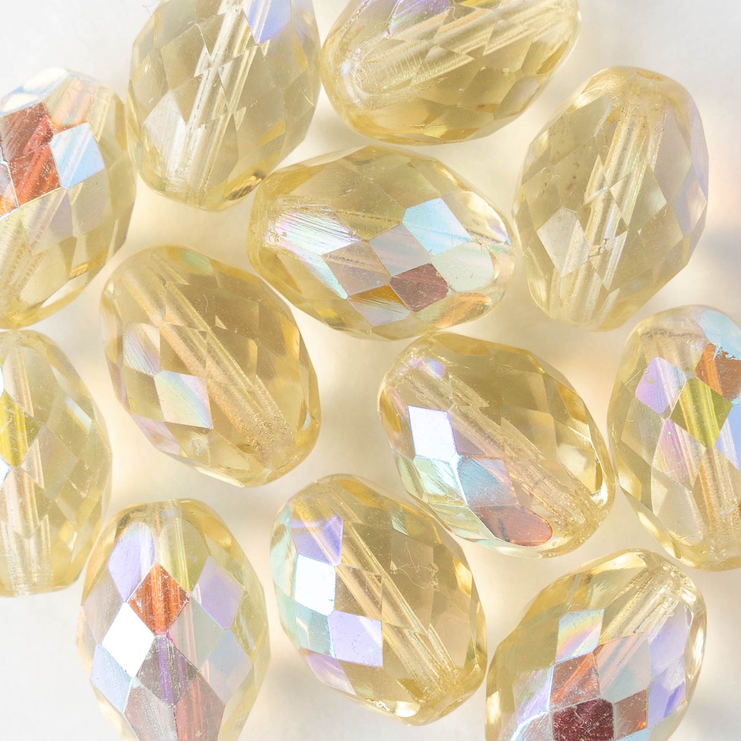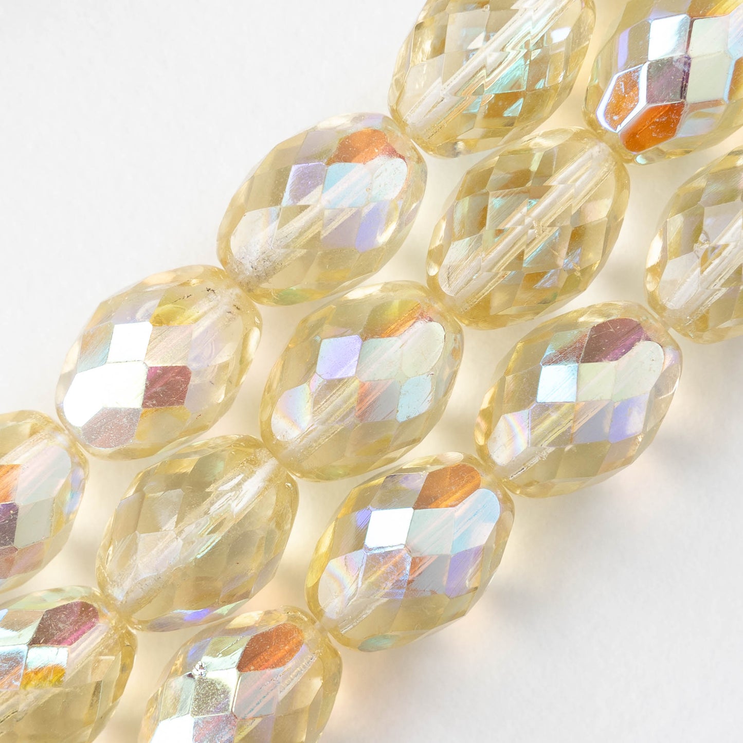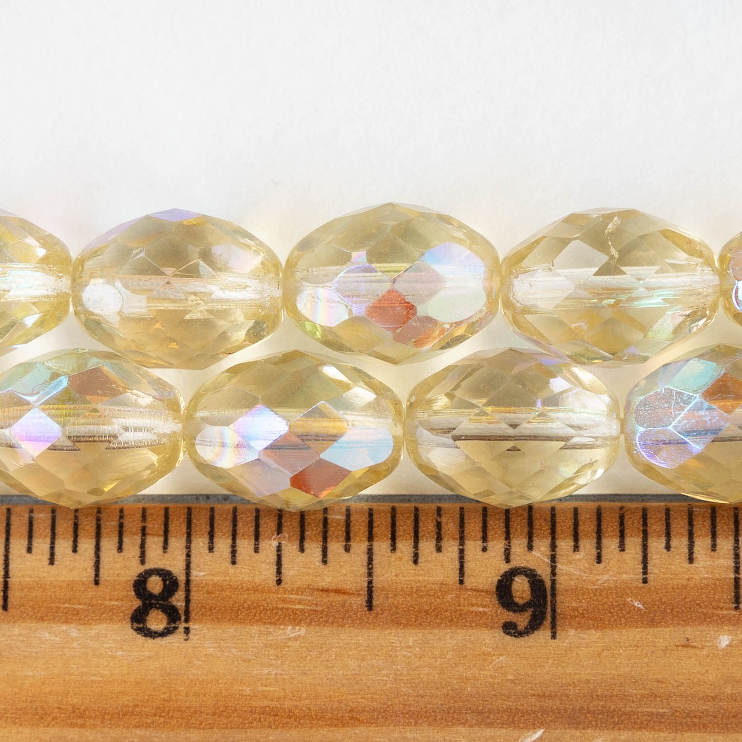 10x14mm Firepolished Glass Oval Beads - Pale Yellow AB - 4 beads