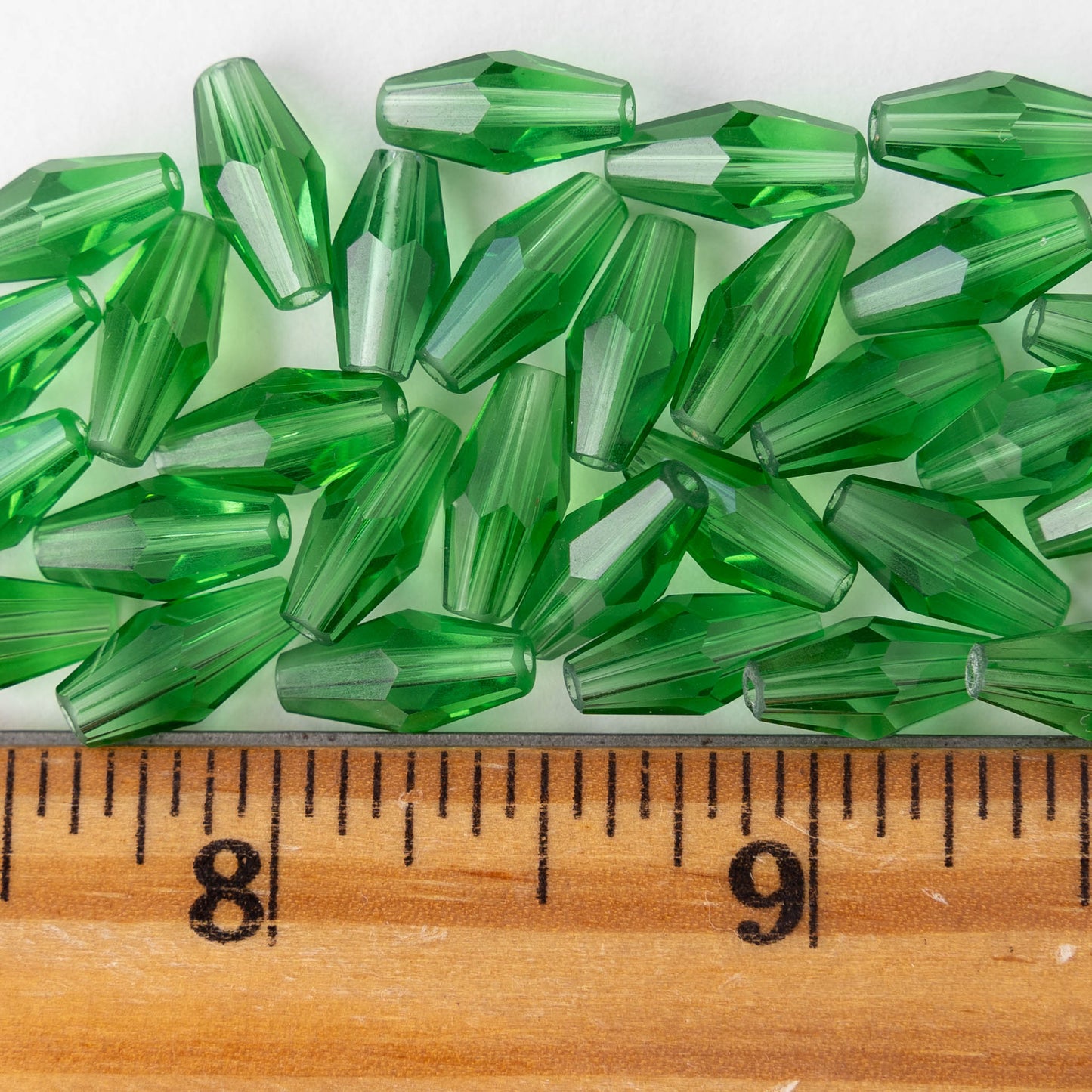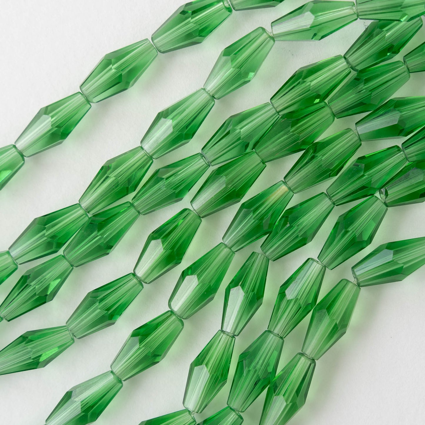 6x12mm Hand Cut Glass Long Bi-Cone Beads - Transparent Light Green - 33 Beads