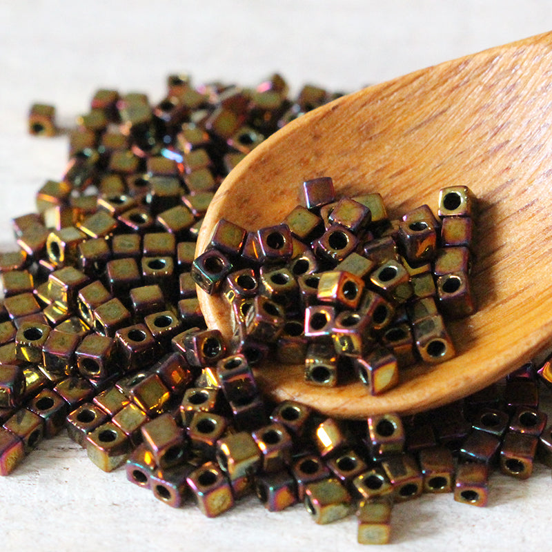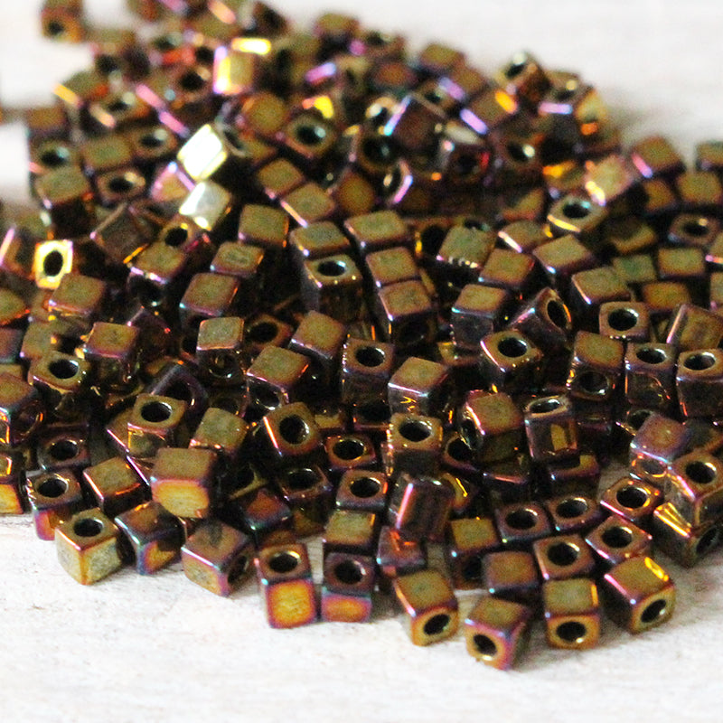 1.8mm Miyuki Cube Beads - Gold Iris - 10 grams