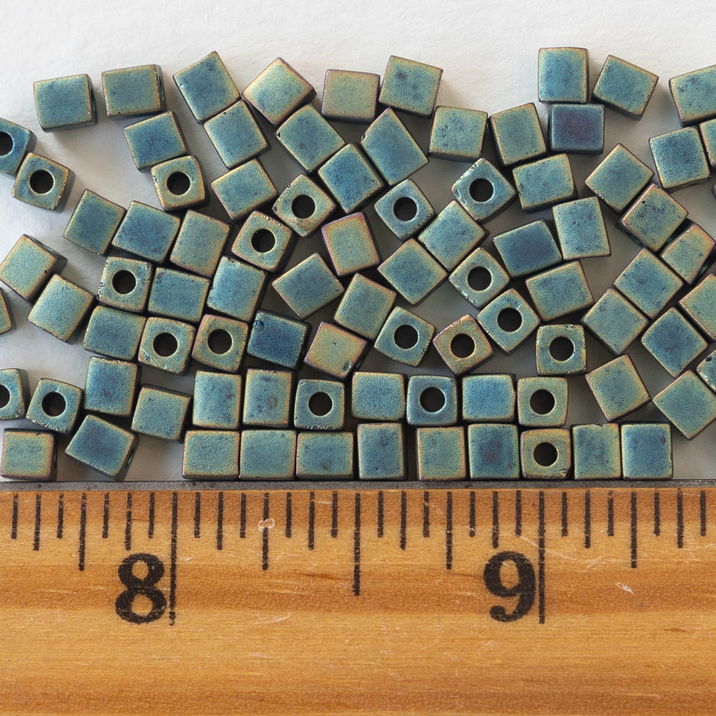 4mm Miyuki Cube Beads - Metallic Matte Verde Gris - 20 grams