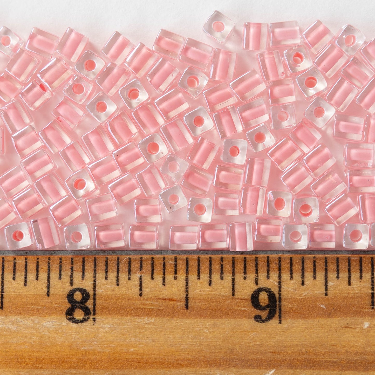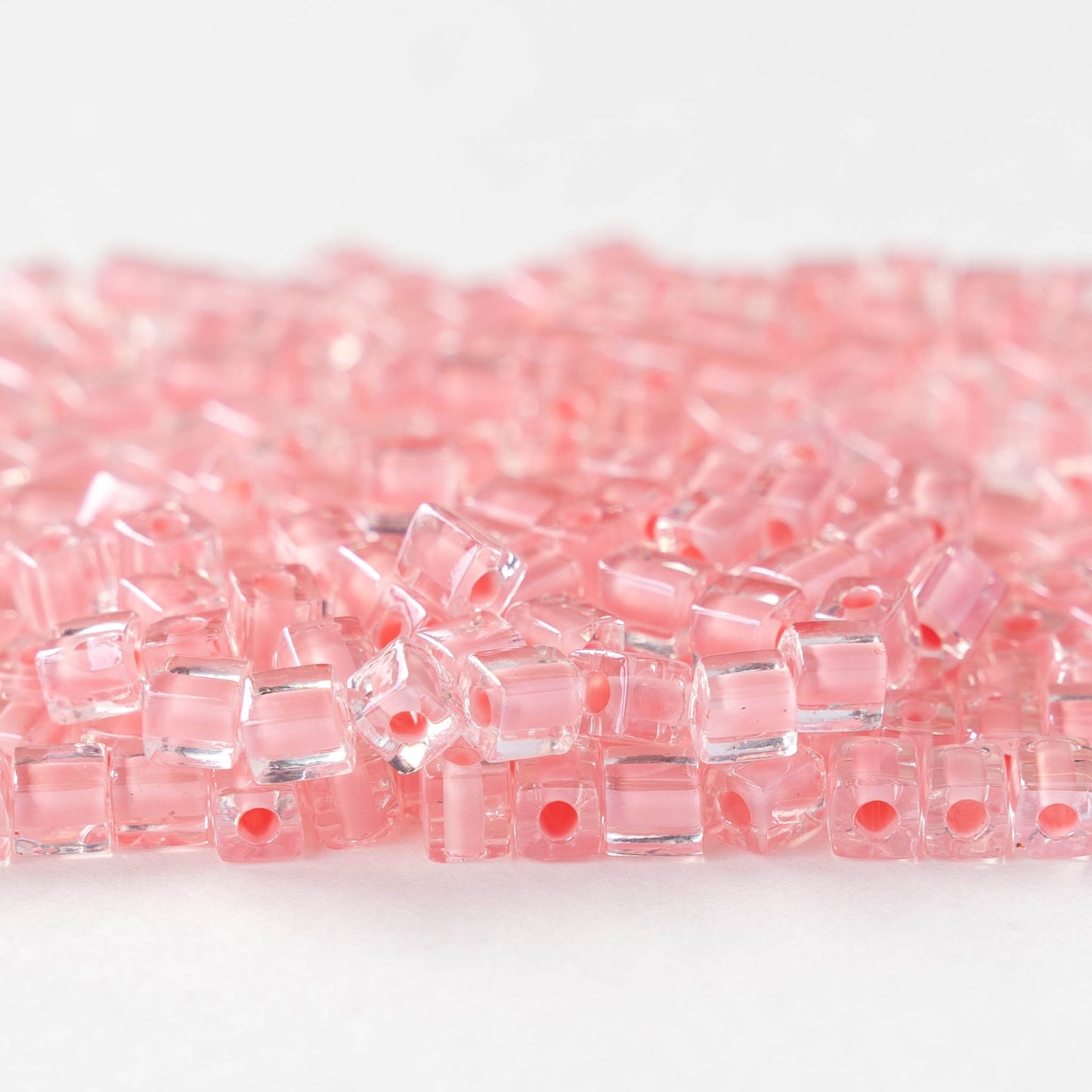 4mm Miyuki Cube Beads - Pink Lined Crystal - 20 or 60 grams