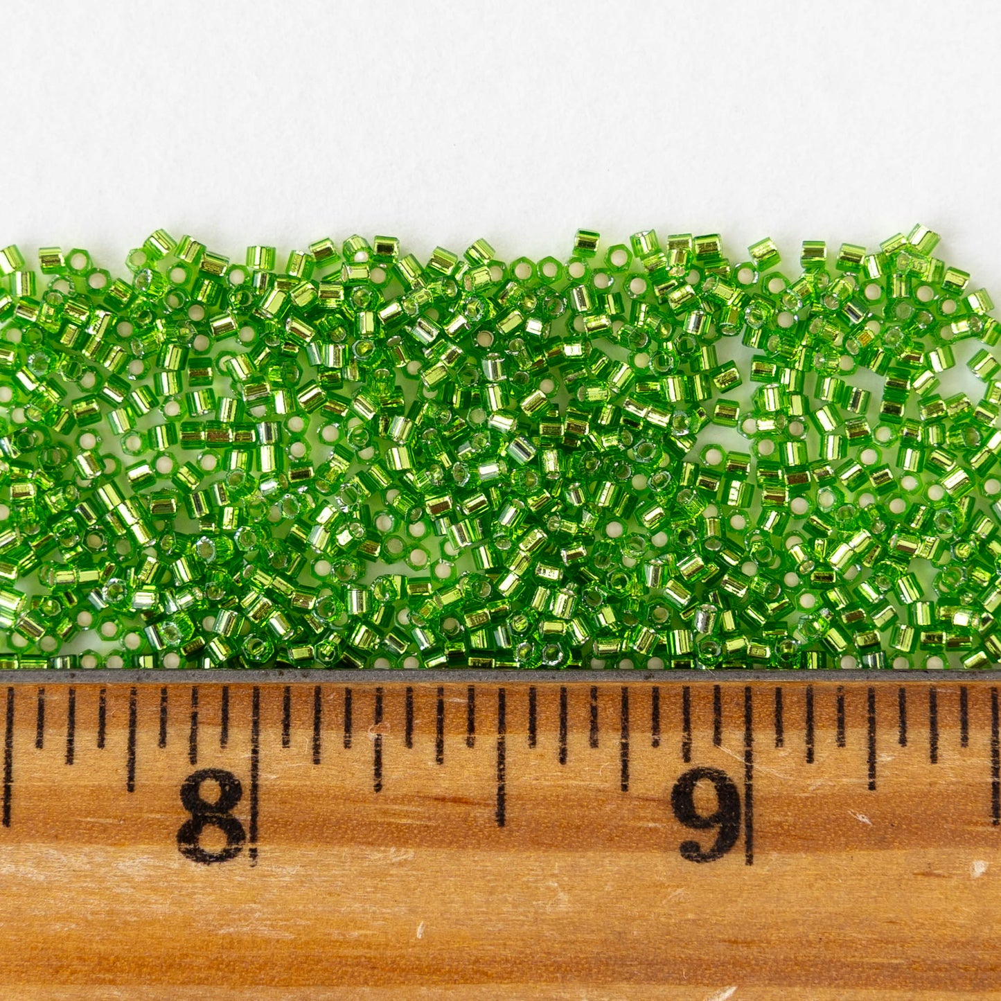 15/0 Glass Hex Cut Seed Beads - Silver Lined Peridot - 10 grams