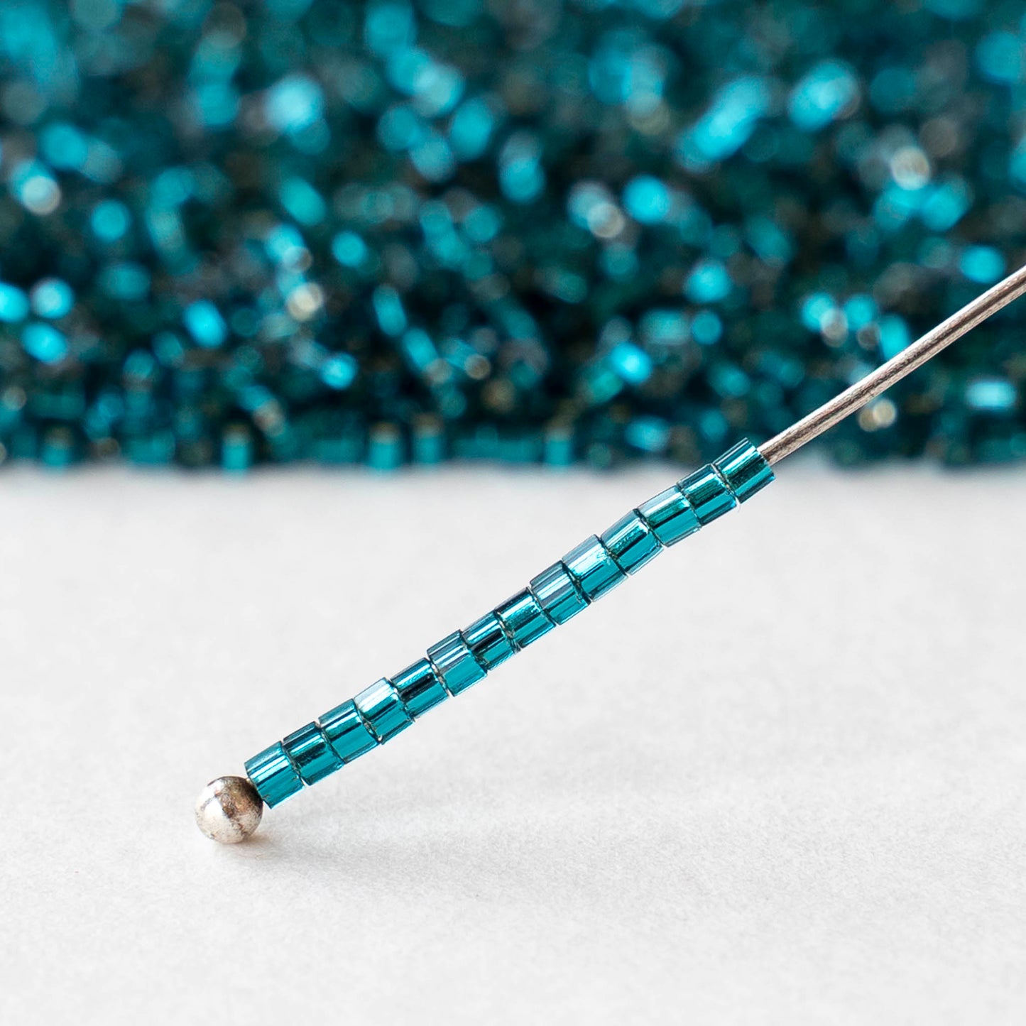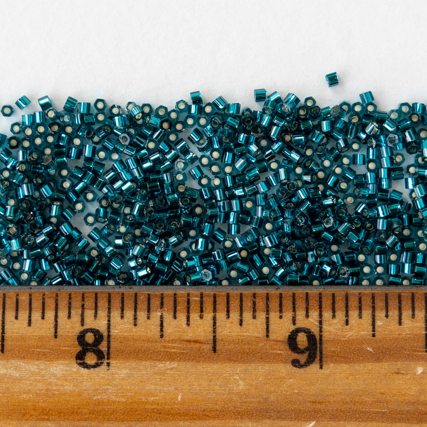 15/0 Glass Hex Cut Seed Beads - Silver Lined Teal - 10 grams