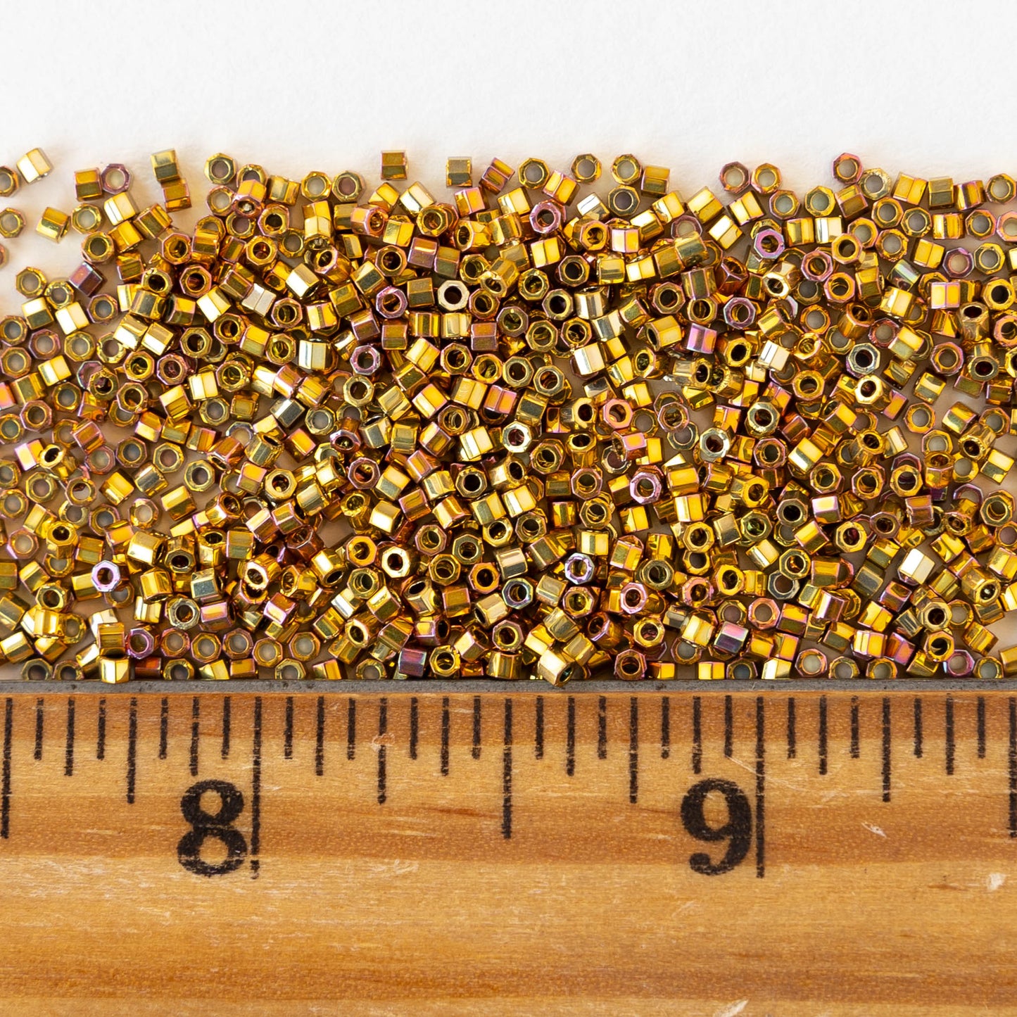 1mm Delica Hex Cut Seed Beads - 24K Gold Iris - 2.5 grams