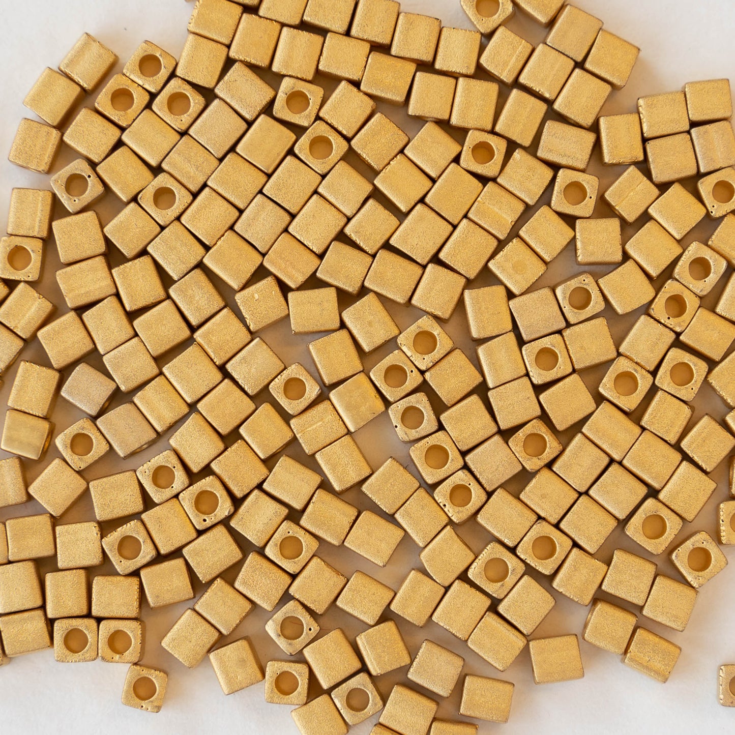 3mm Miyuki Cube Beads - 24K Gold Matte Beads - 5 grams