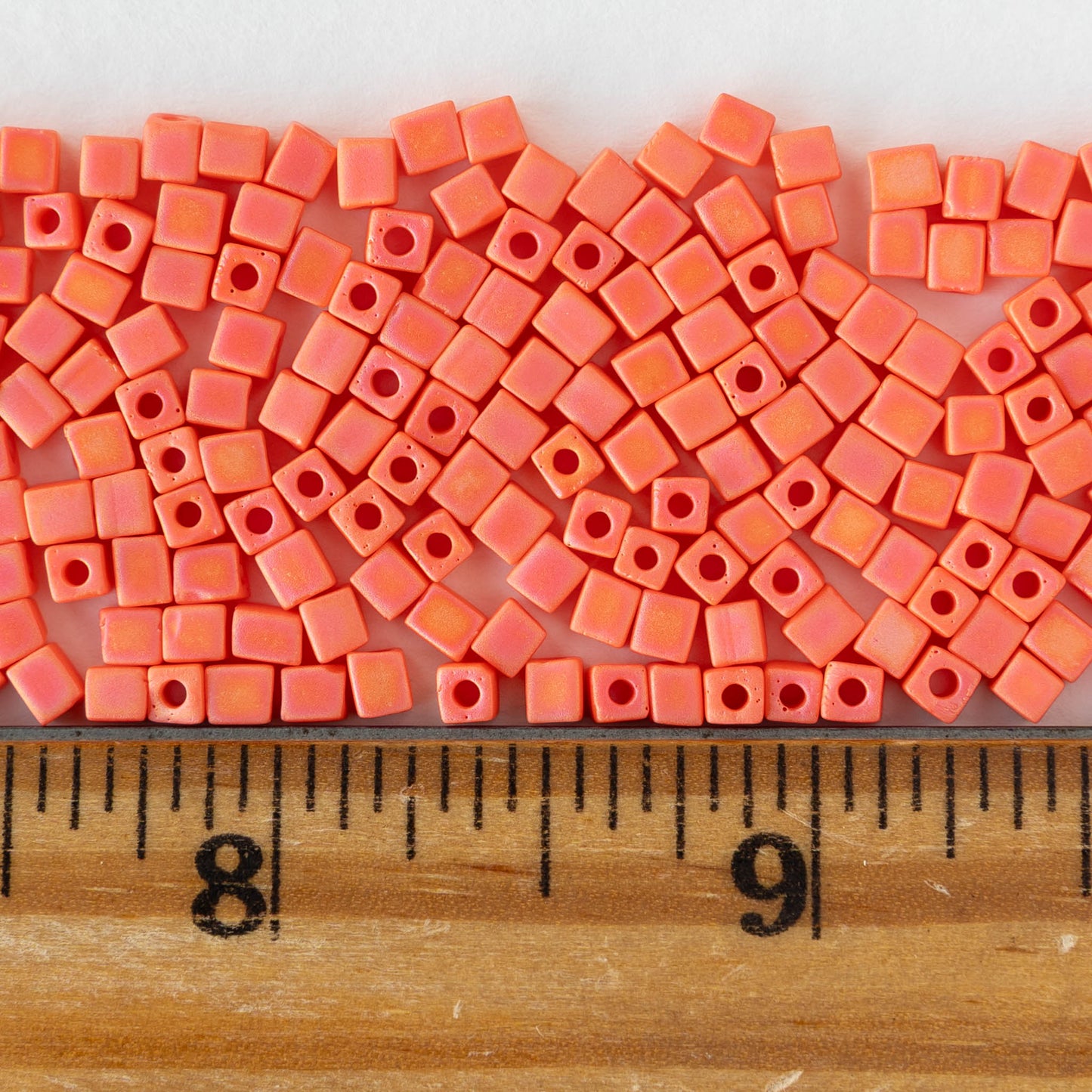 3mm Miyuki Cube Beads - Opaque Orange AB Matte - 10 grams
