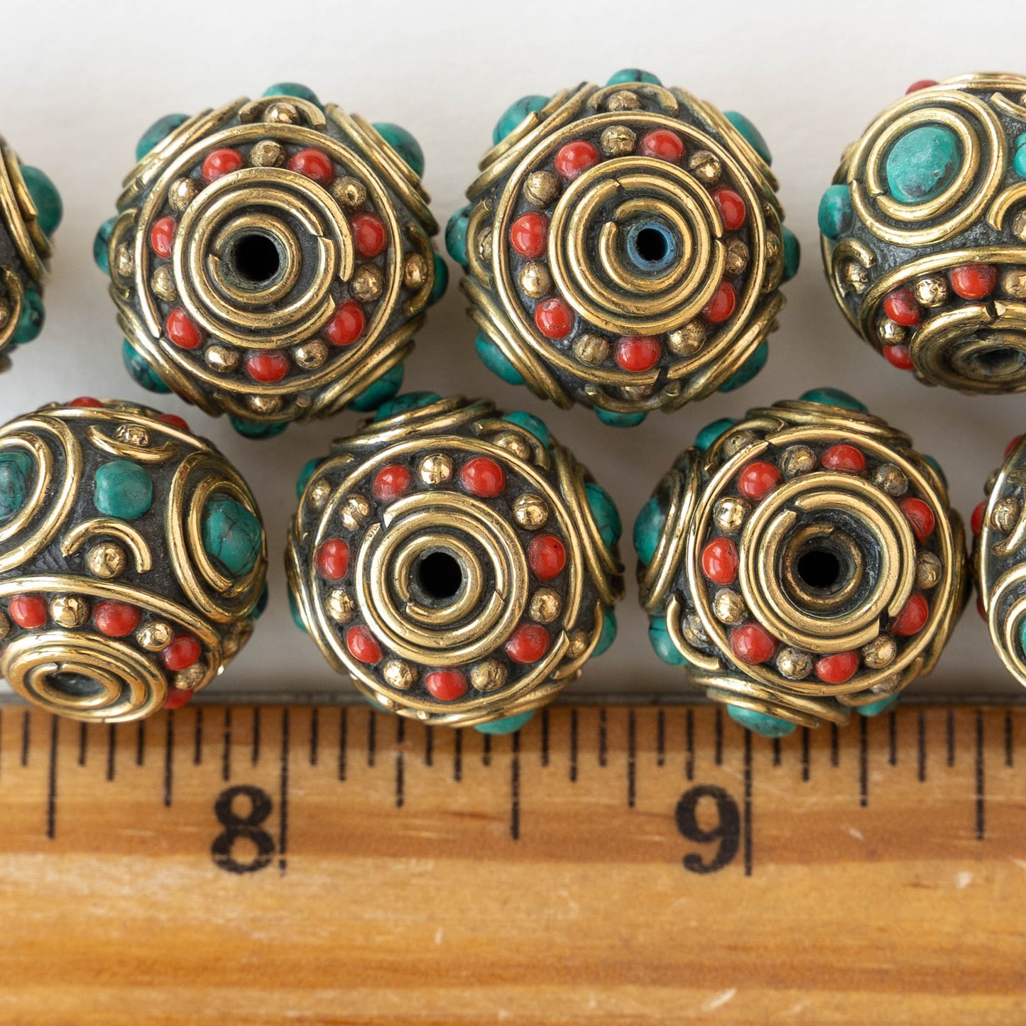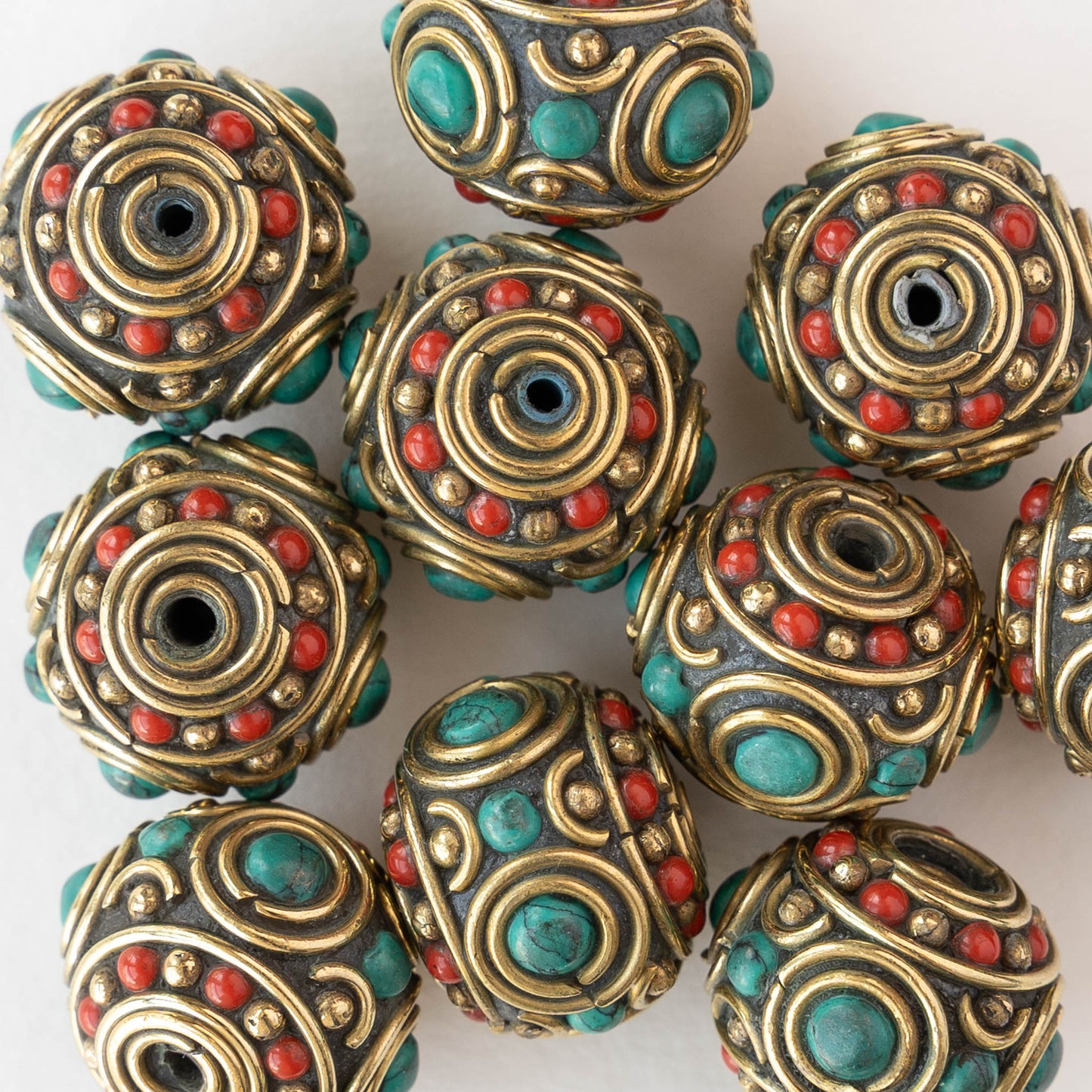 All available inventory for 15x19mm Round Nepalese Beads - Turquoise Red Gold - 1 bead has been added to the cart.