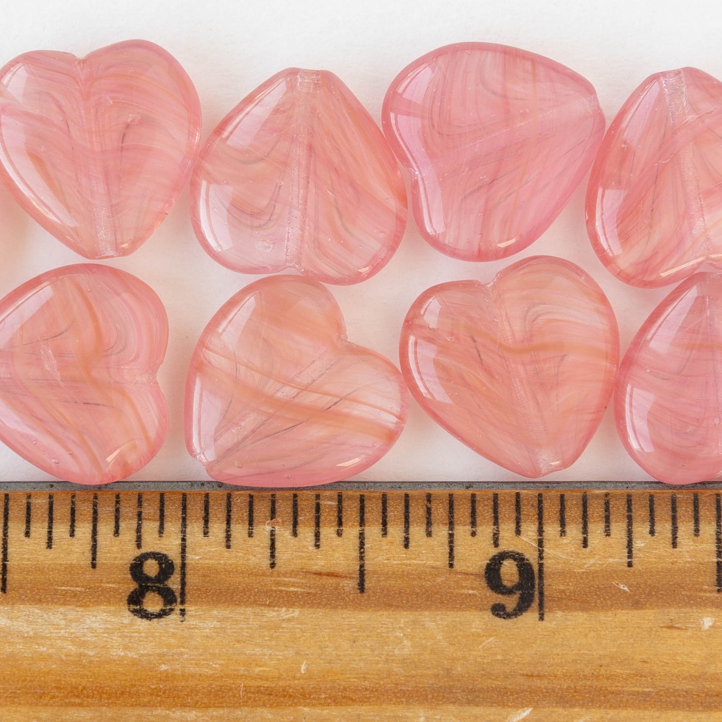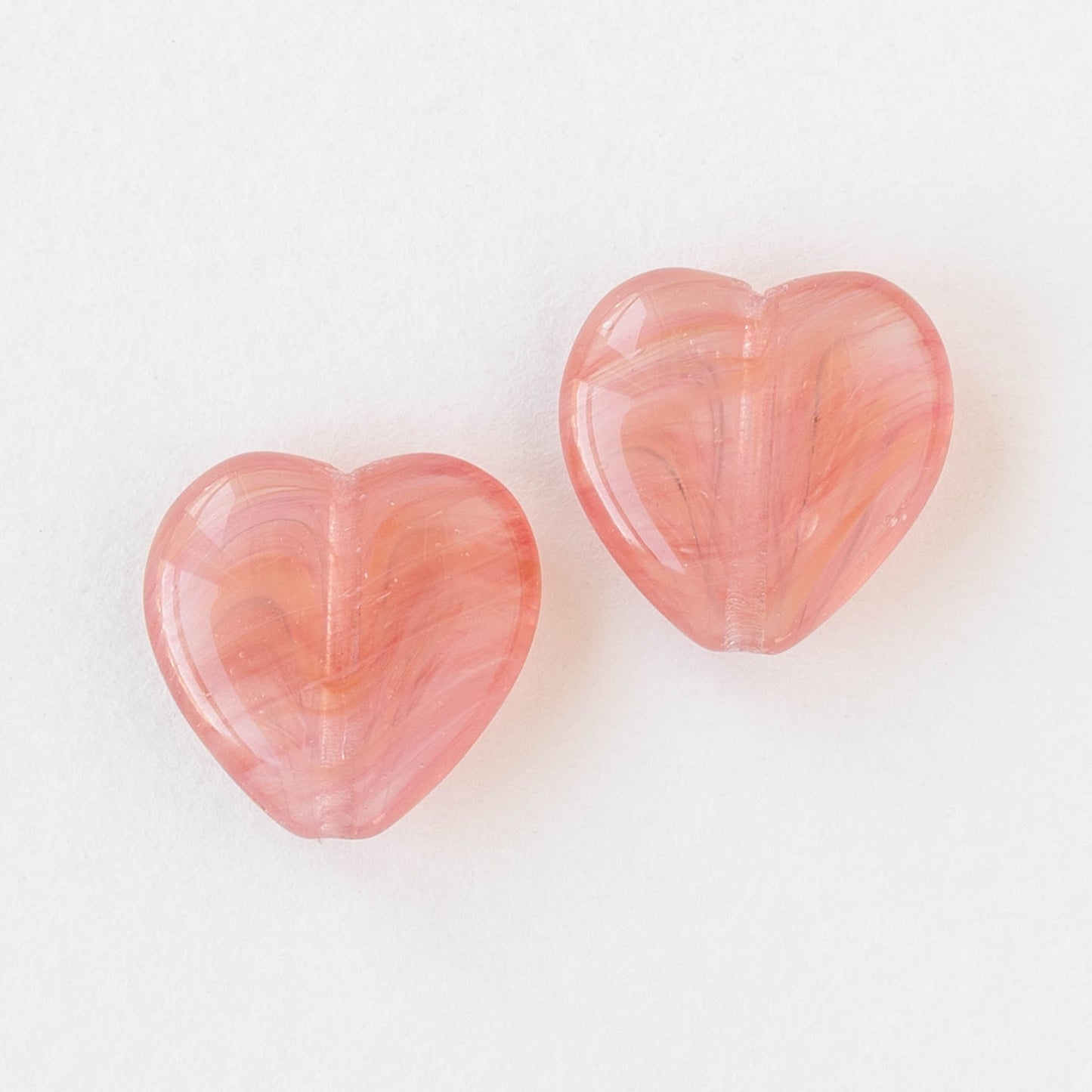All available inventory for 16mm Glass Heart Beads - Light Pink Striped - 10 beads has been added to the cart.