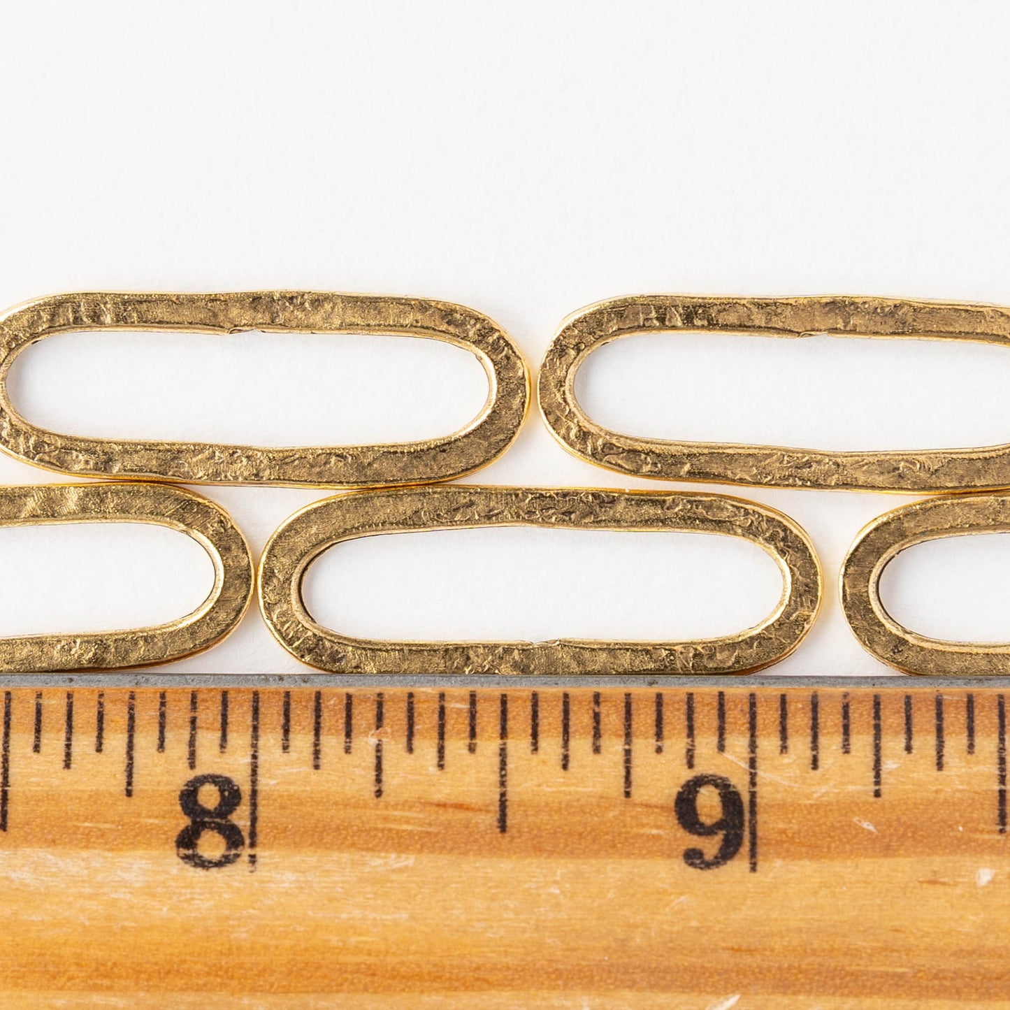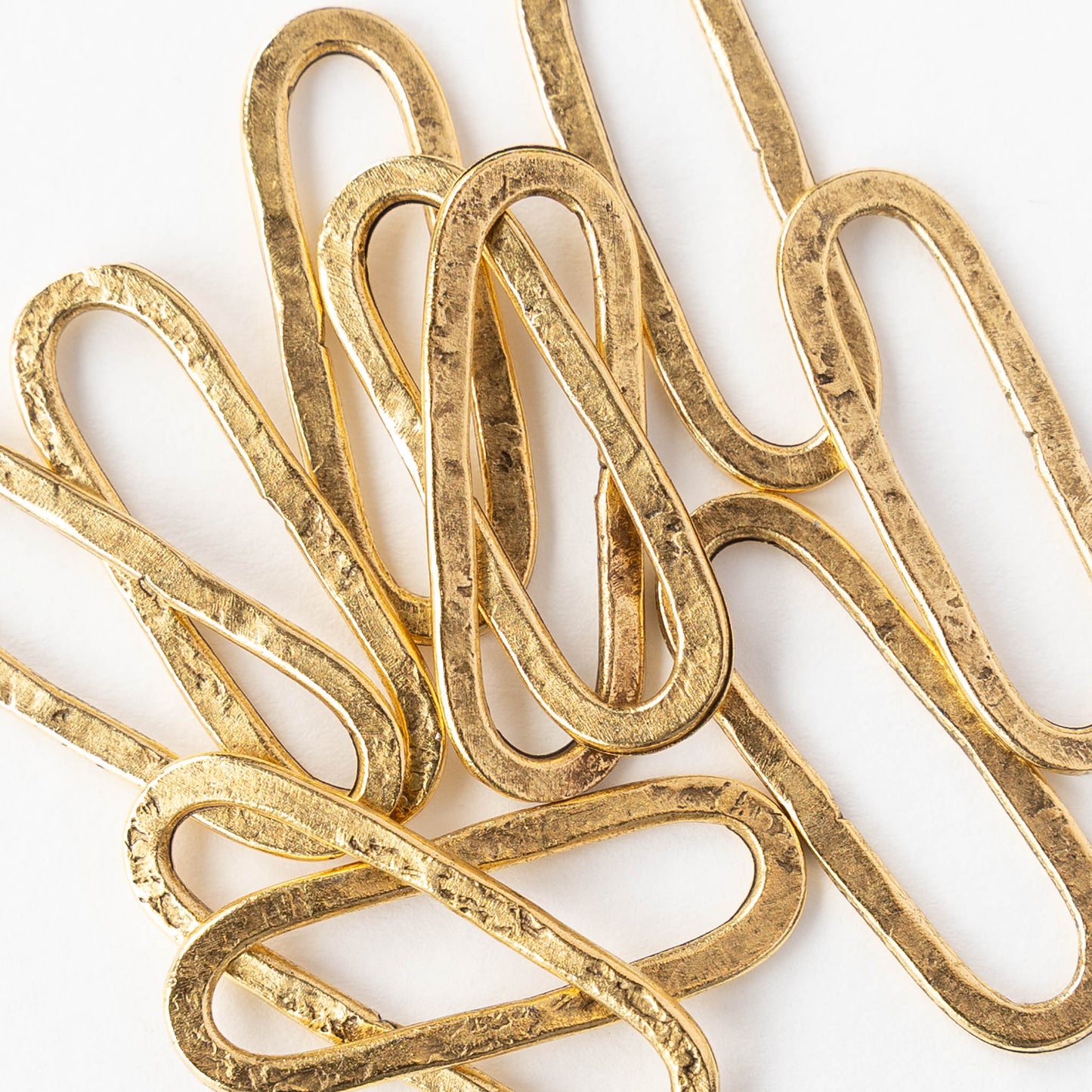 30x11mm Hammered Elongated Oval Hoop - 24k Gold Plated - 1, 2 or 6 pieces