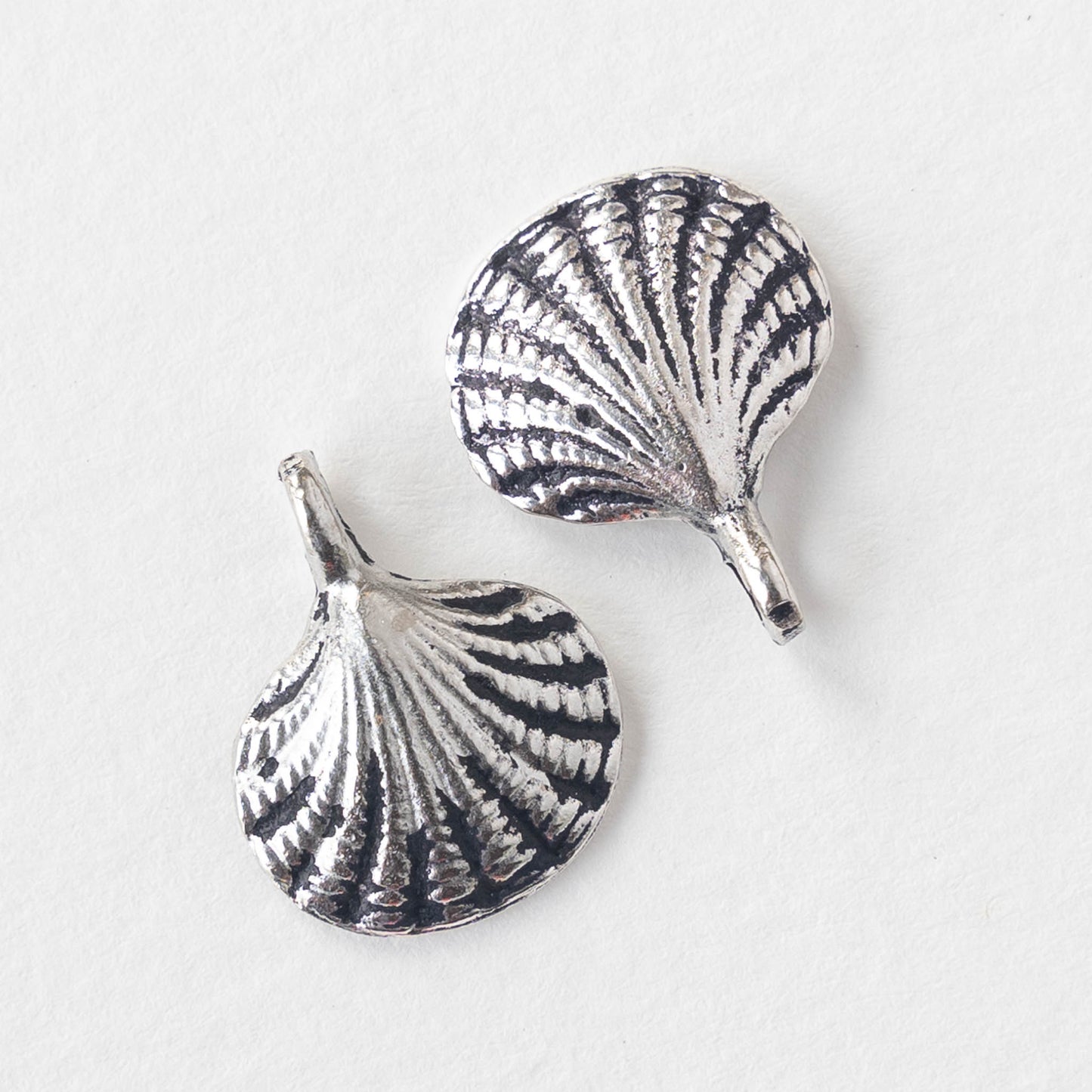 15mm Mykonos Metal Scallop Shell Beads - Antiqued Silver - 2 or 6