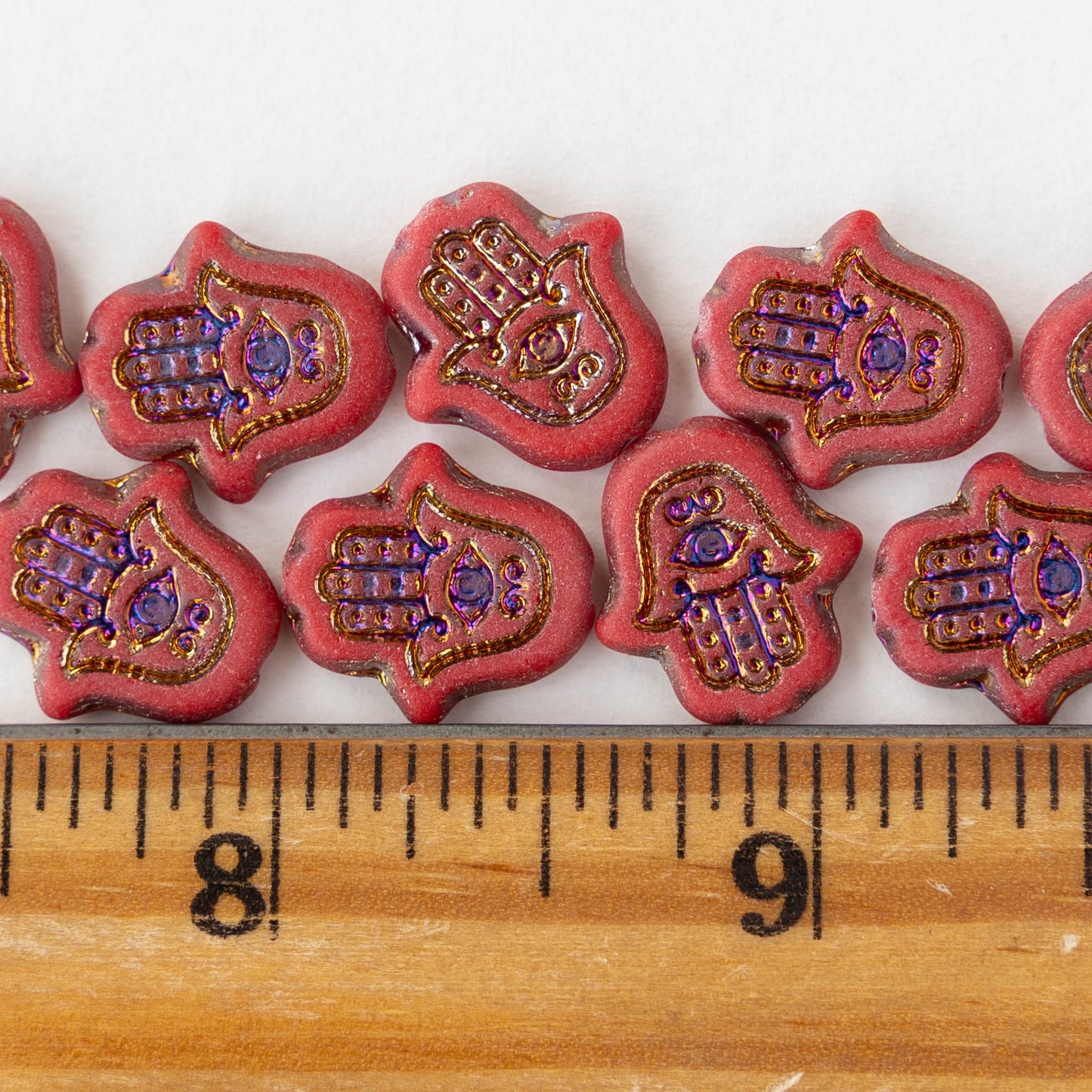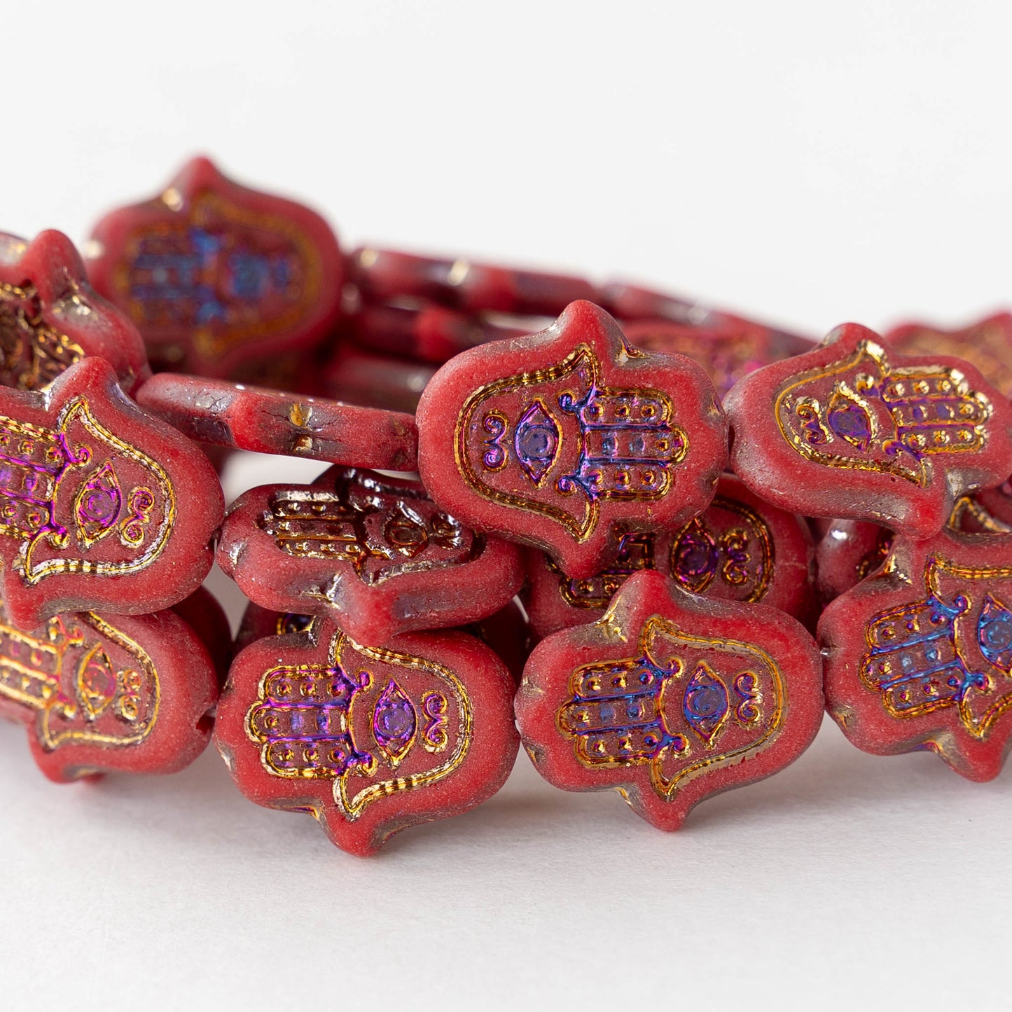 15mm Hamsa Hand Beads - Matte Red Iris - 6 or 12 Beads