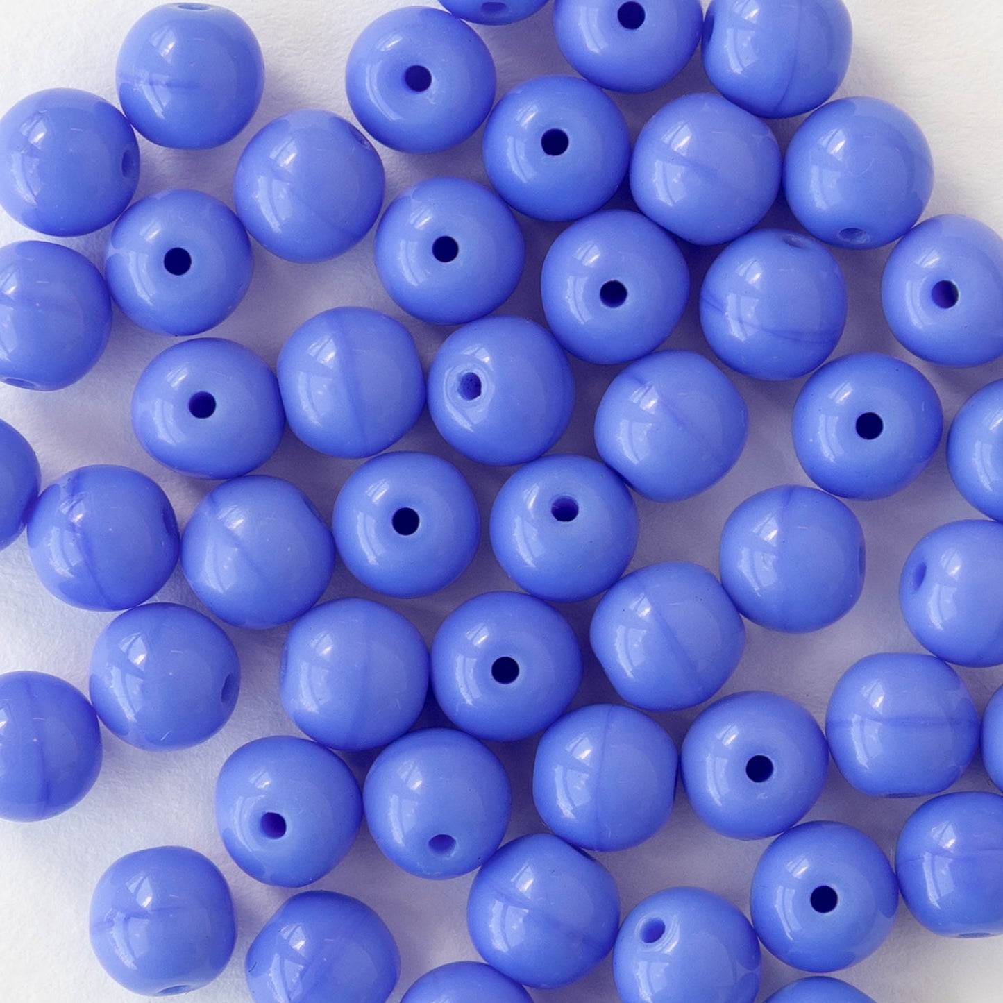 6mm Round Glass Beads - Opaque Periwinkle Blue - 25 or 75 beads