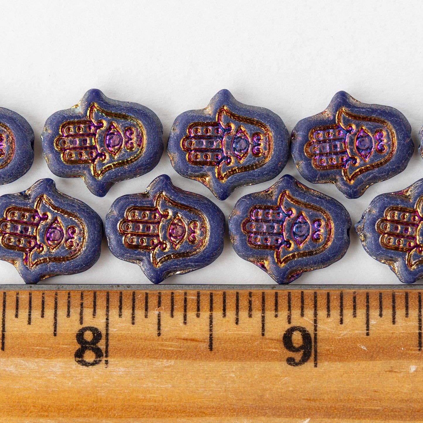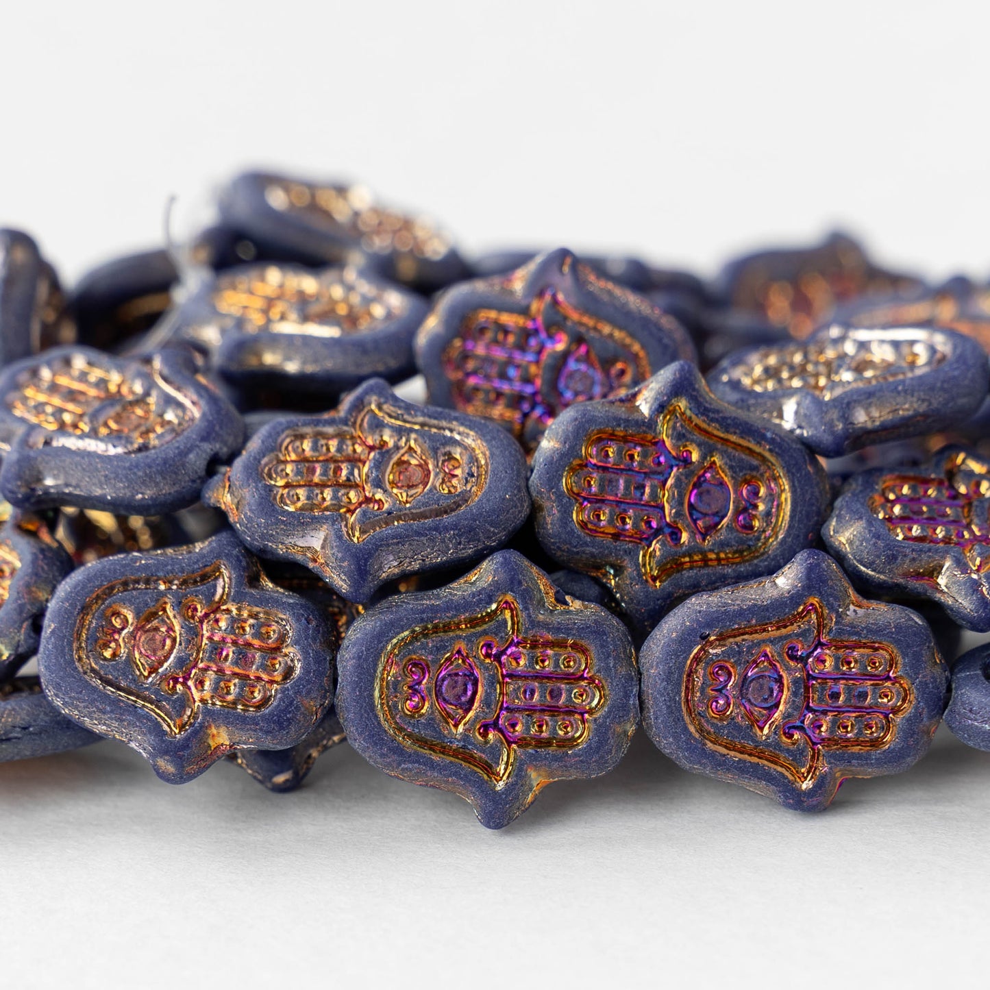 Hamsa Hand Beads - Opaque Blue with Iris Wash - 6 Beads