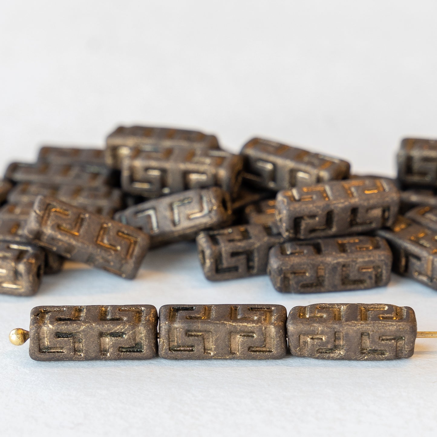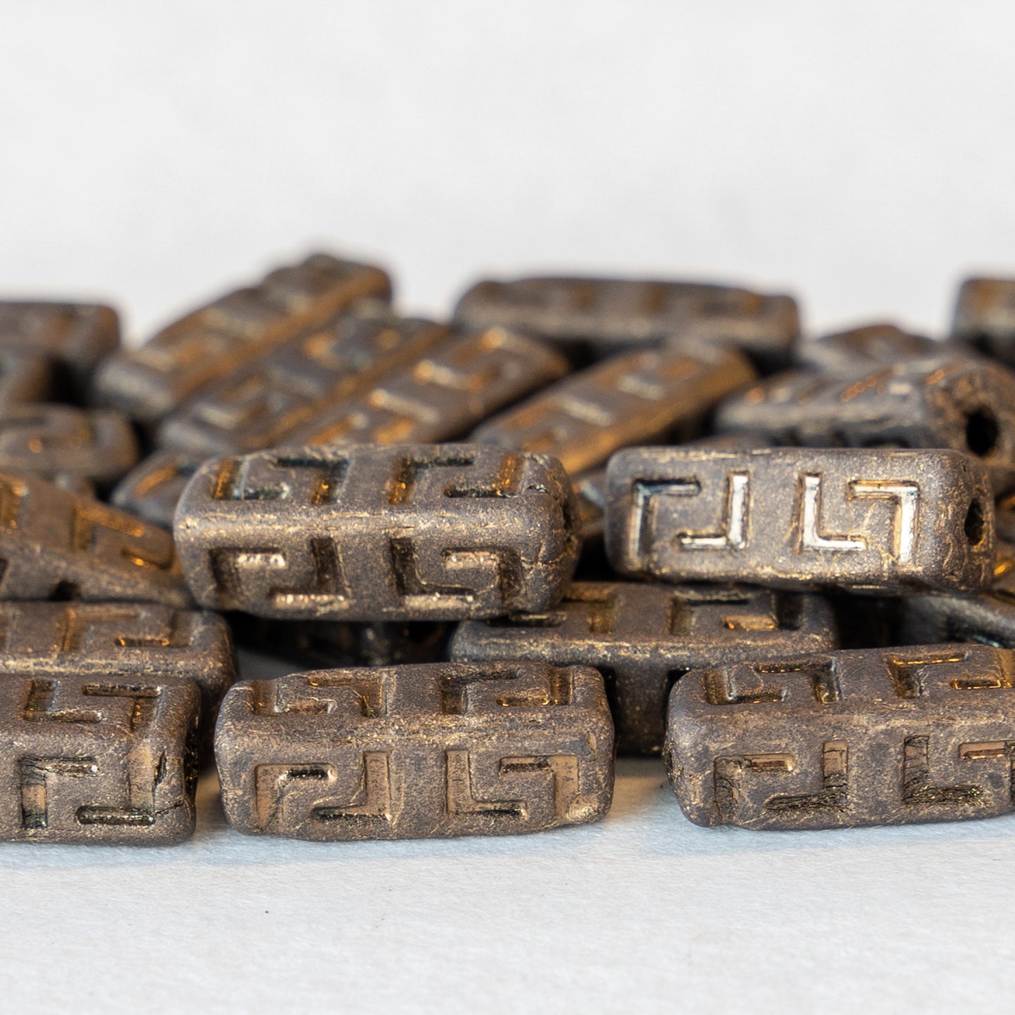 Rectangle Celtic Block Beads - Bronze Gold Matte - 10 Beads