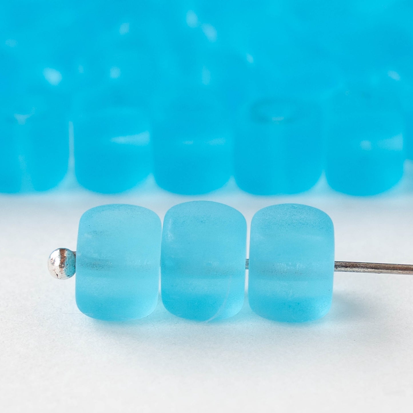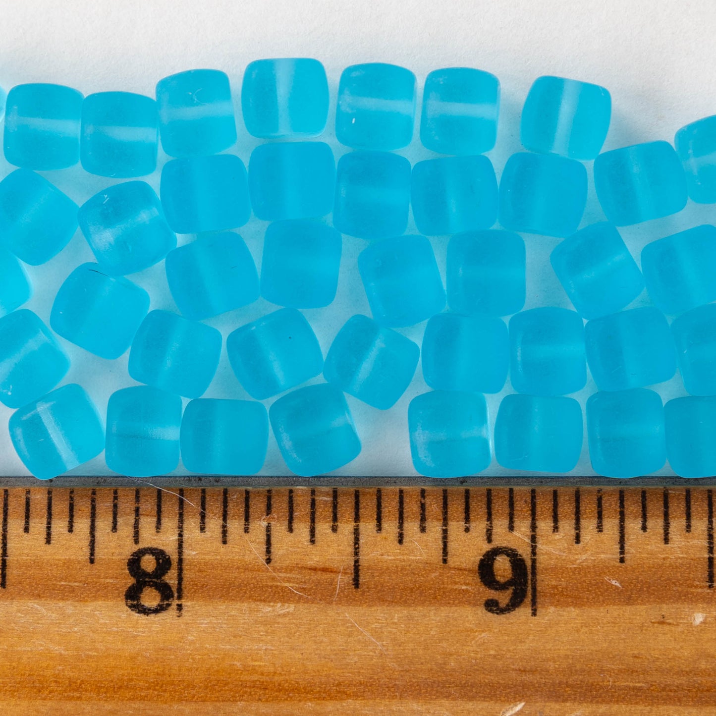 5x7mm Glass Cube Beads - Matte Aqua - 50 beads
