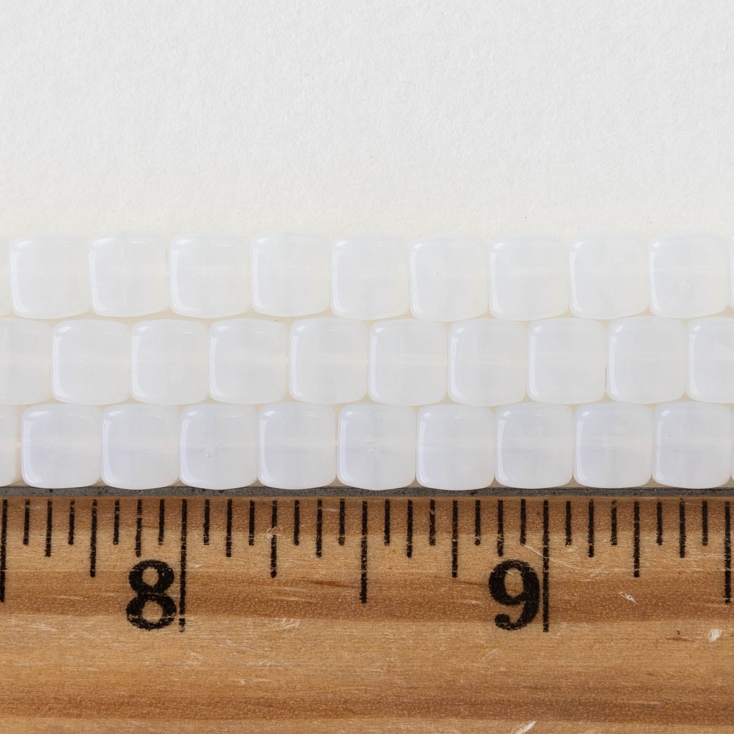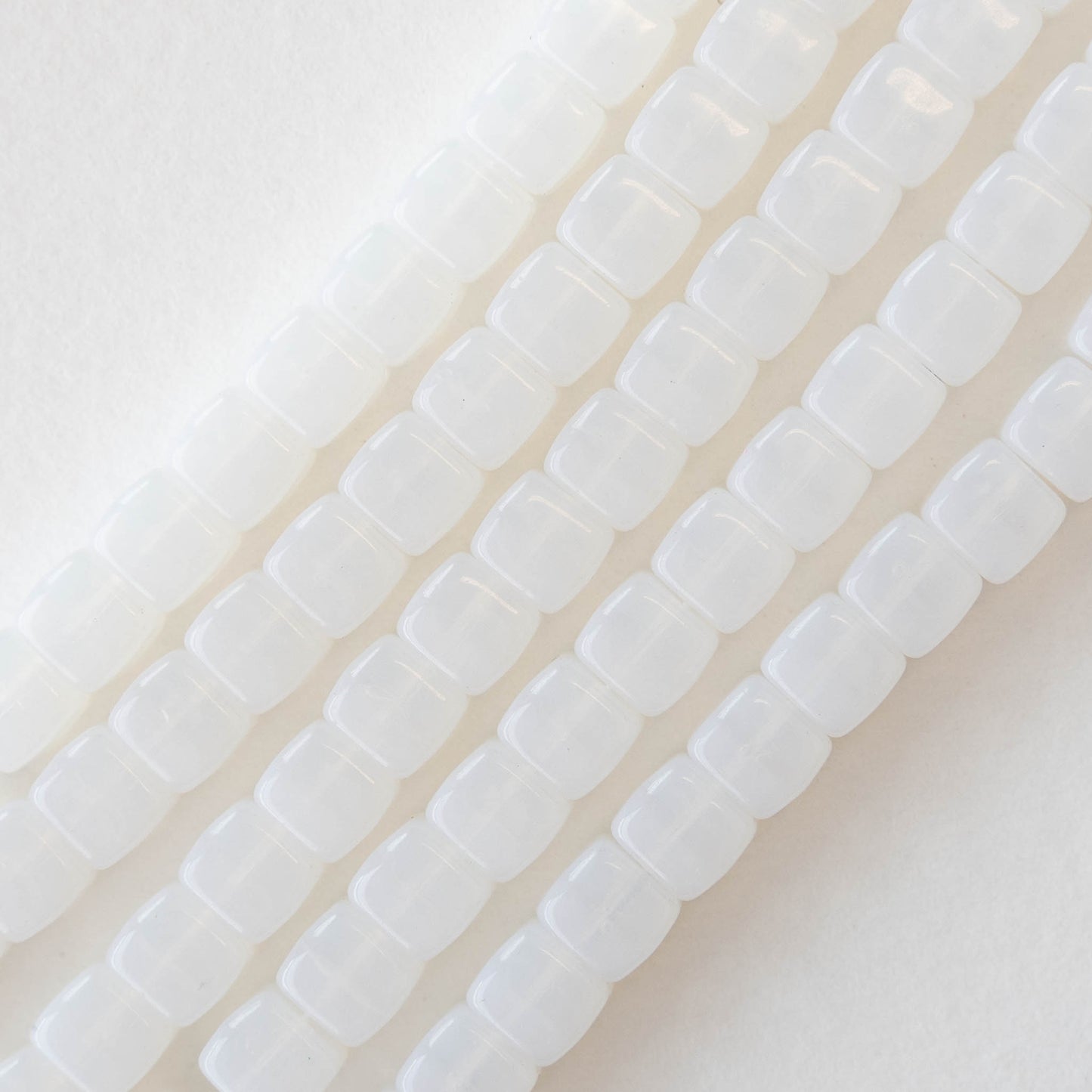 5x7mm Glass Cube Beads - White Opaline - 50 beads