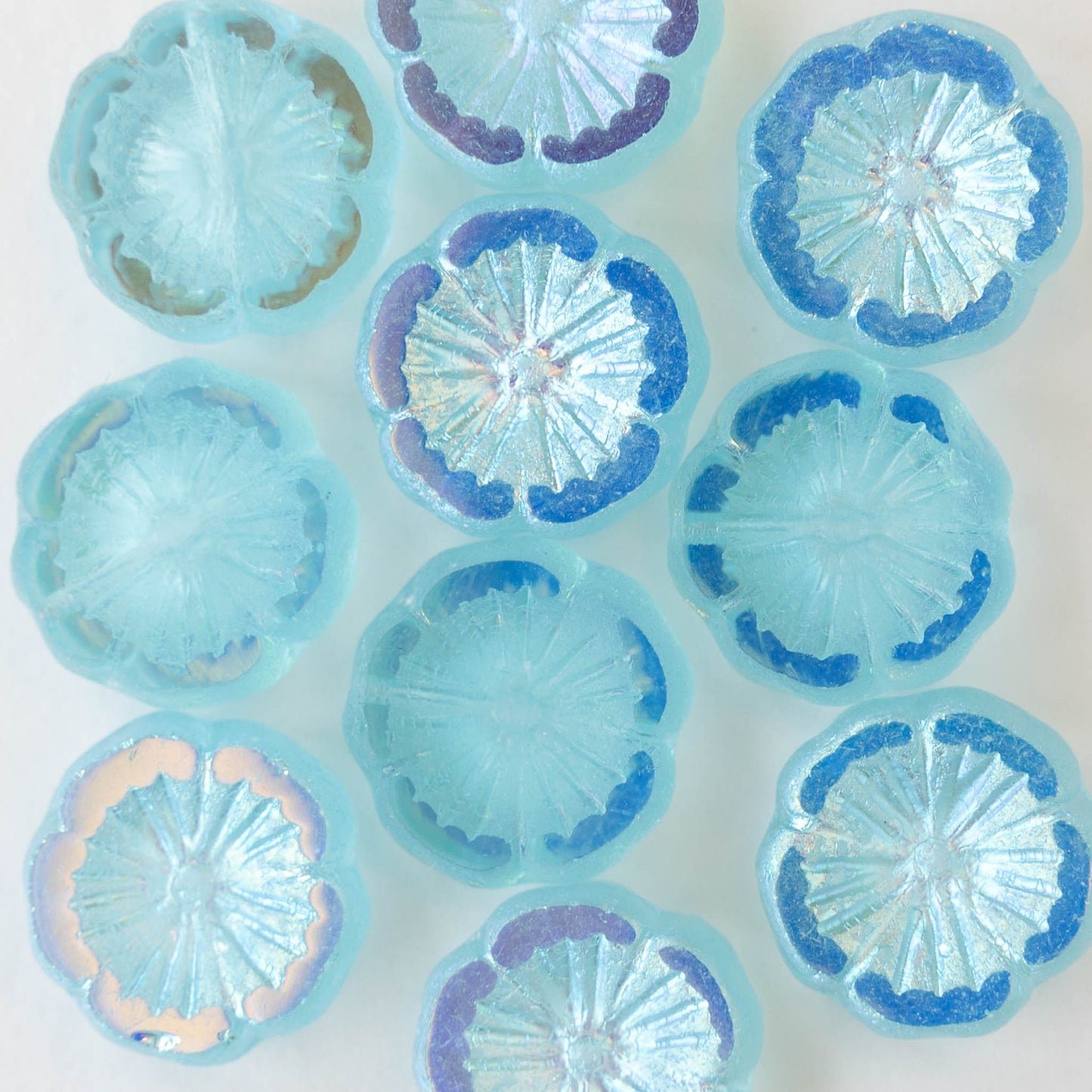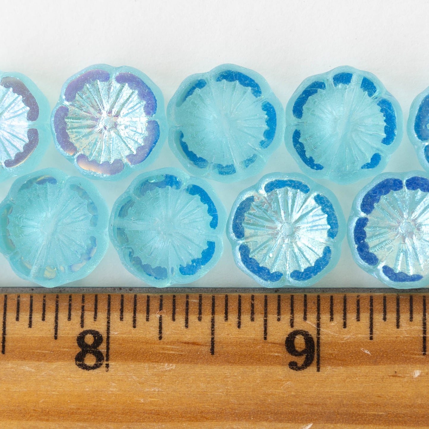14mm Hibiscus Flower Beads - Reflective Aqua AB - 10 Beads
