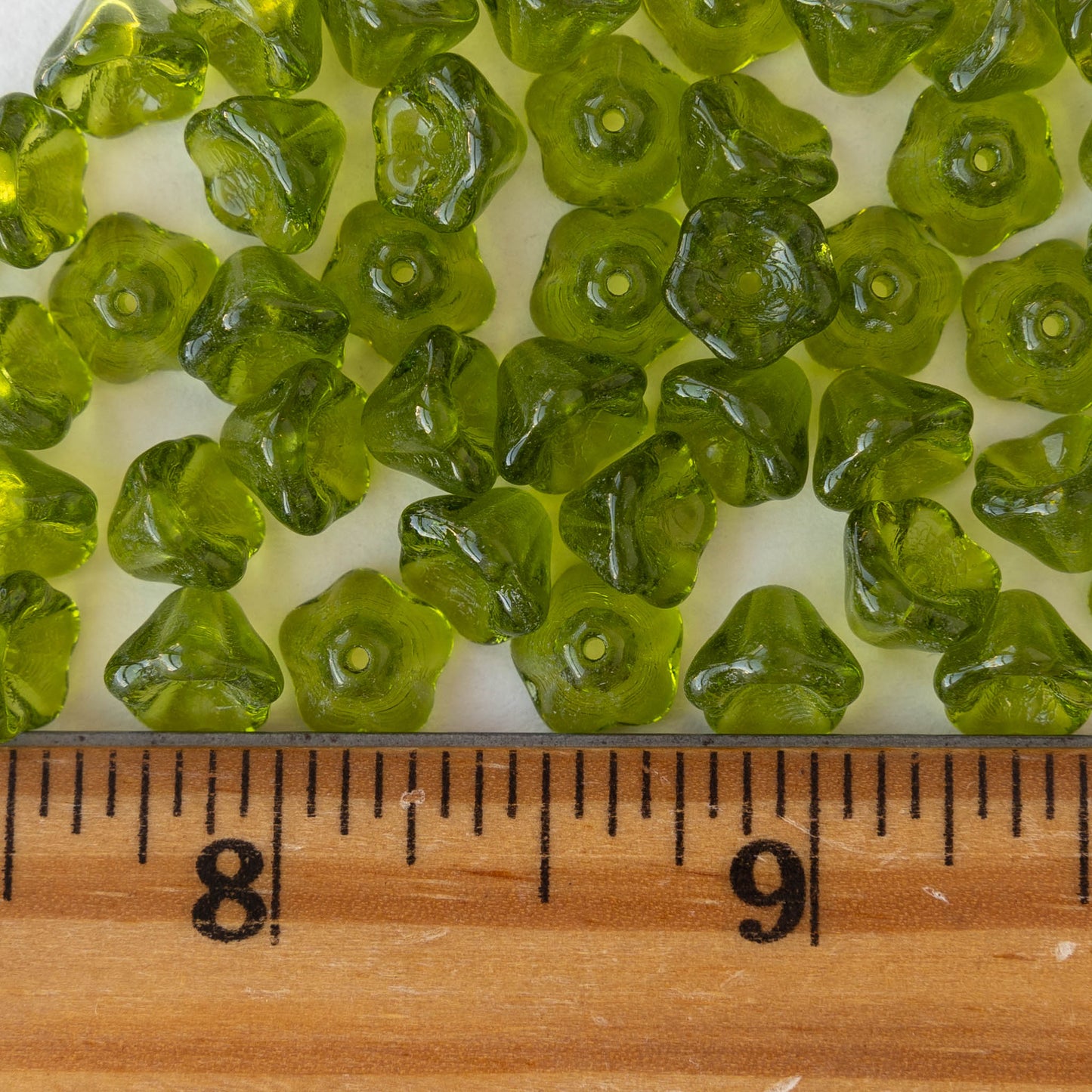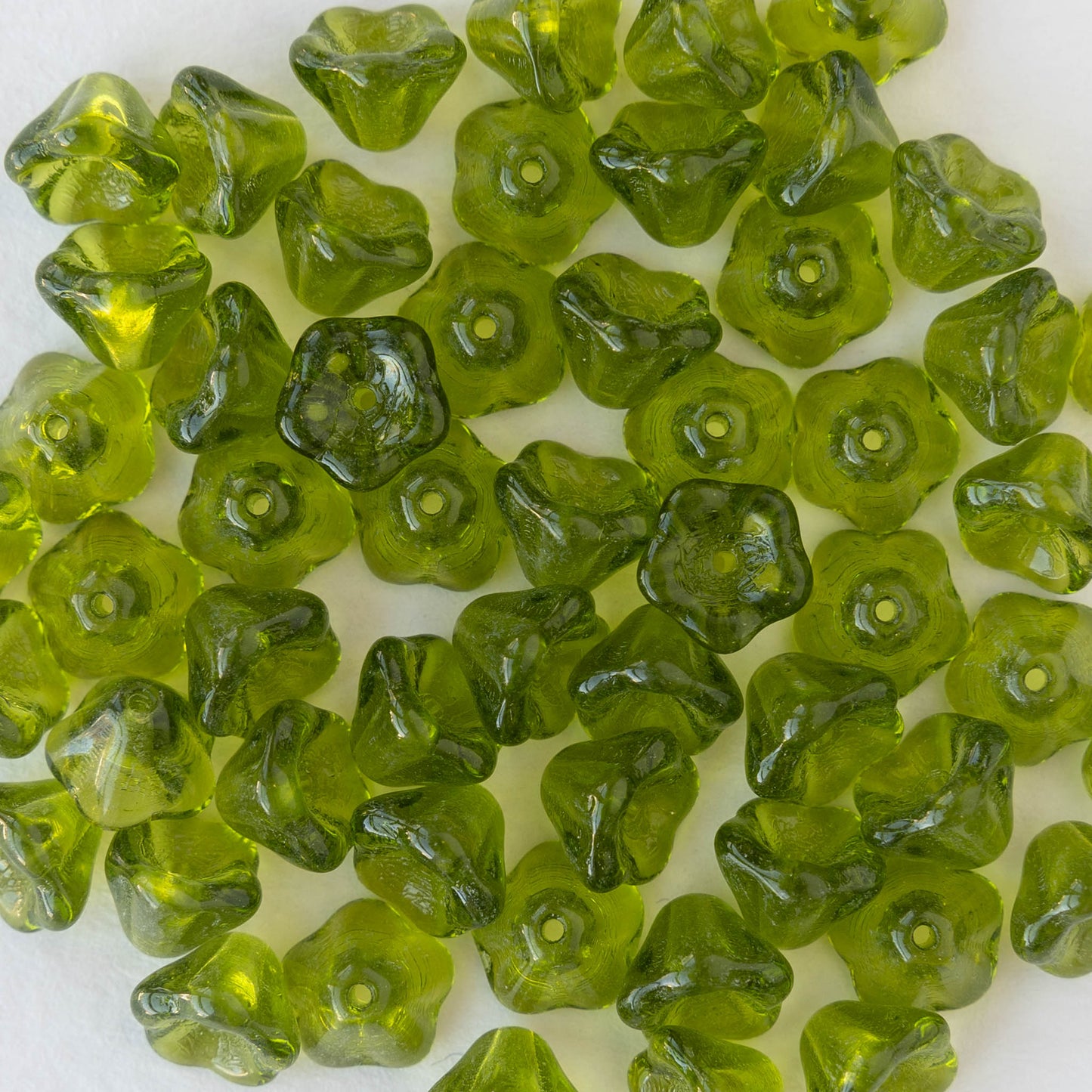 6x8mm Glass Flower Beads - Olivine - 30