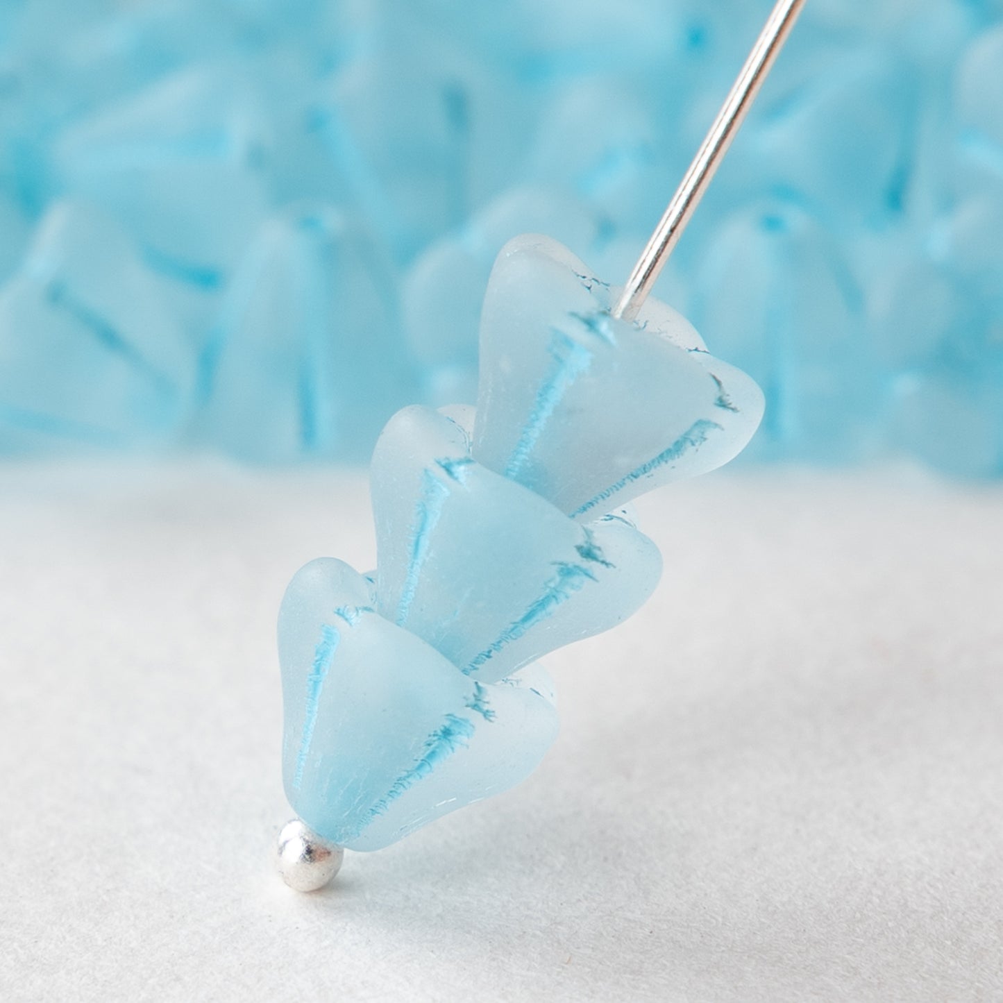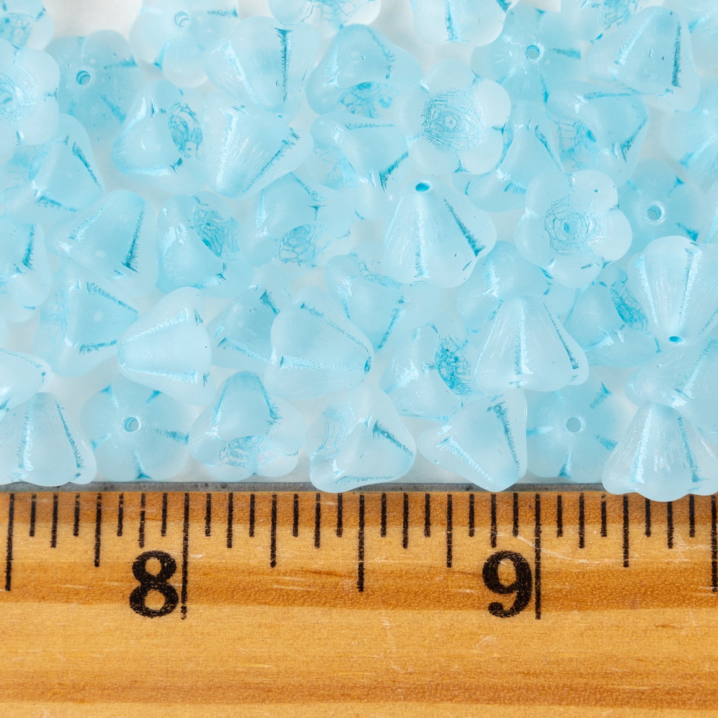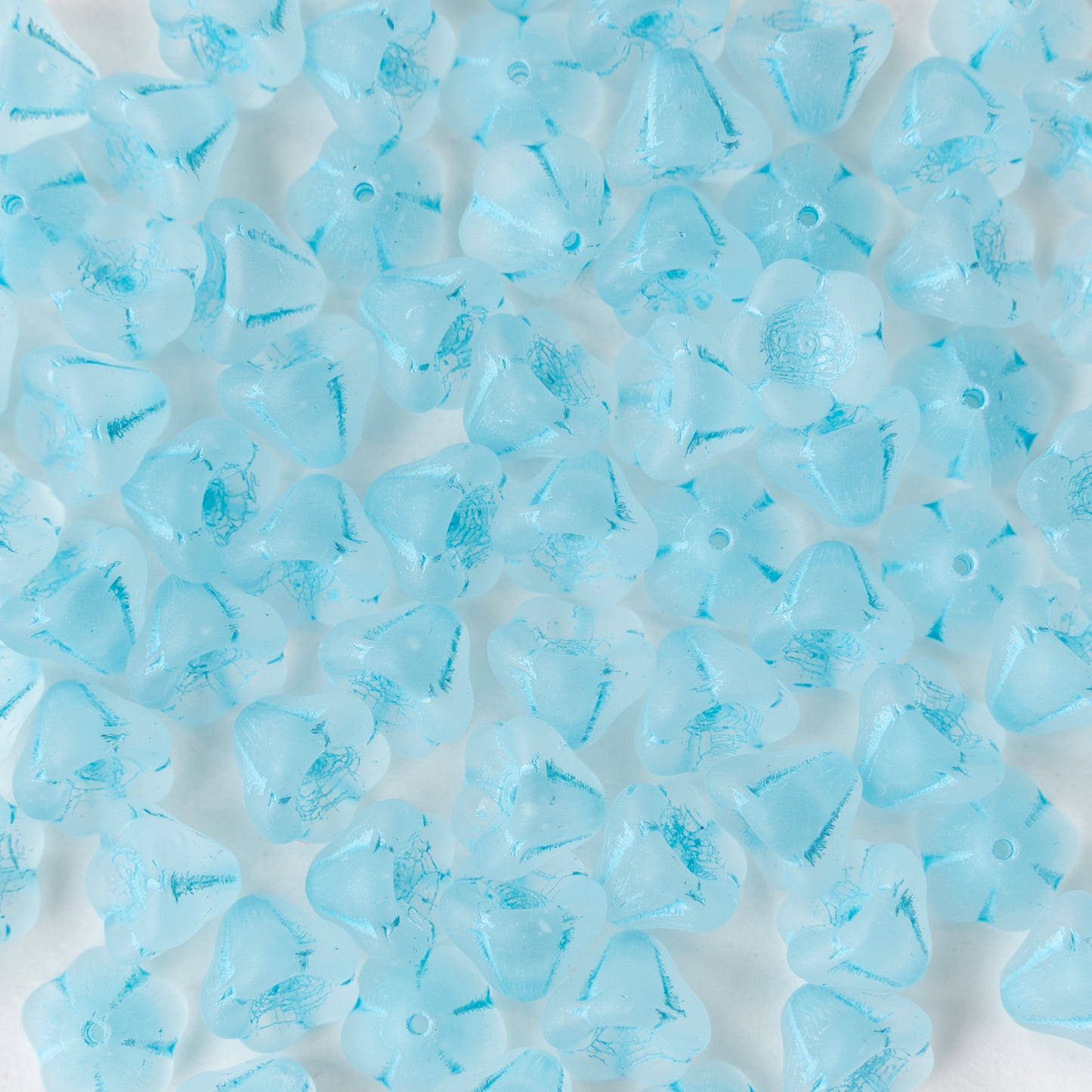 6x8mm Trumpet Flower Beads - Crystal Matte with Blue Wash - 30 beads