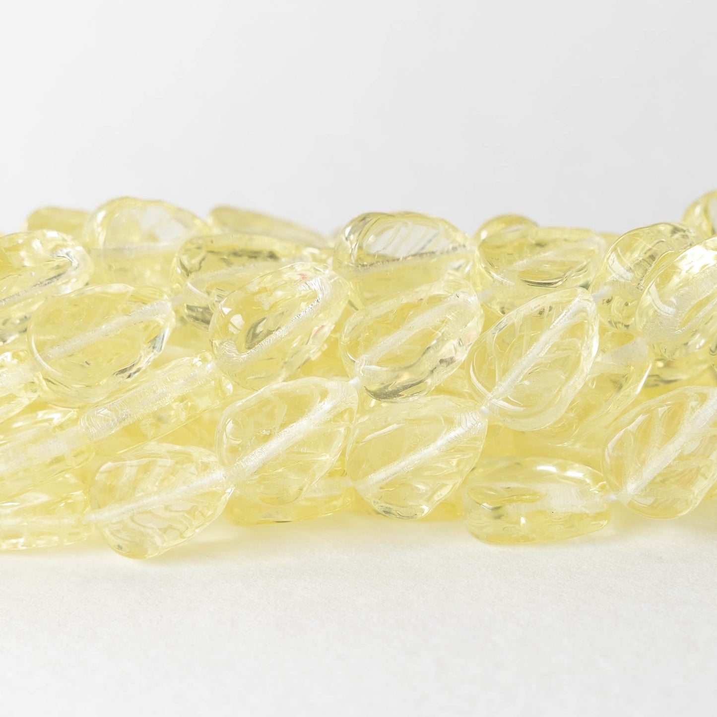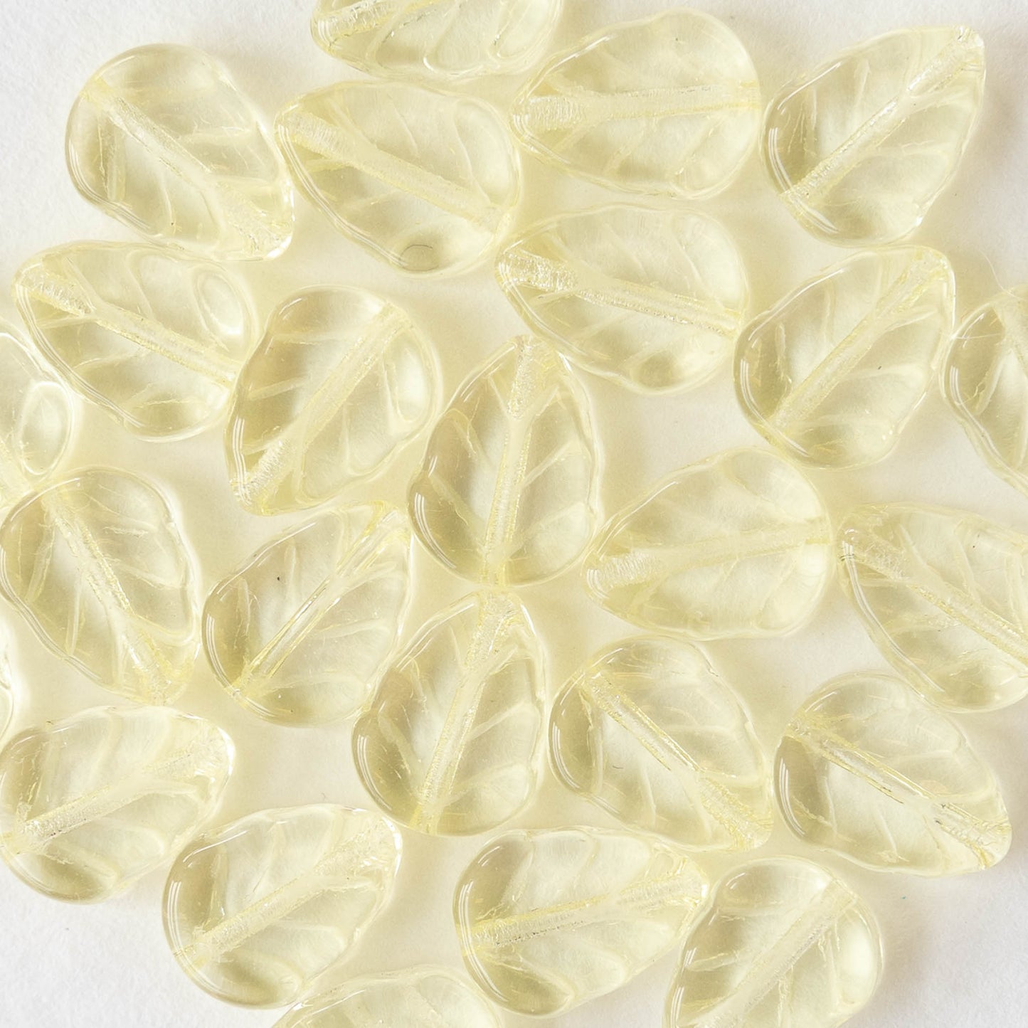 8x10mm Leaf Beads - Transparent Light Yellow - 20 Beads