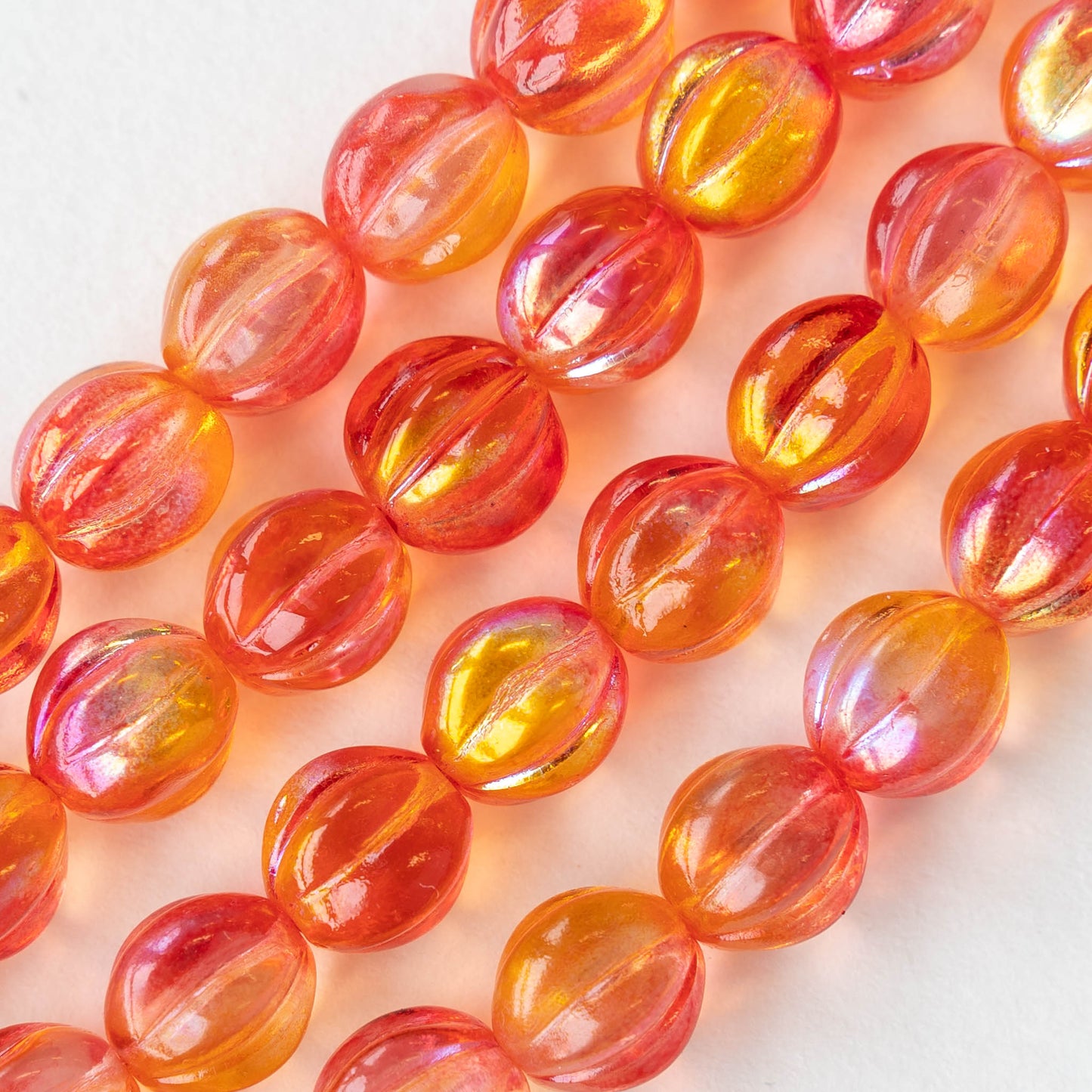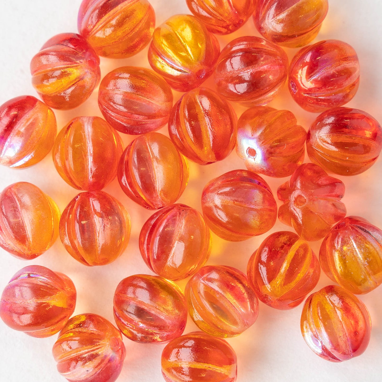10mm Melon Bead - Orange YellowMix - 10 or 20 Beads
