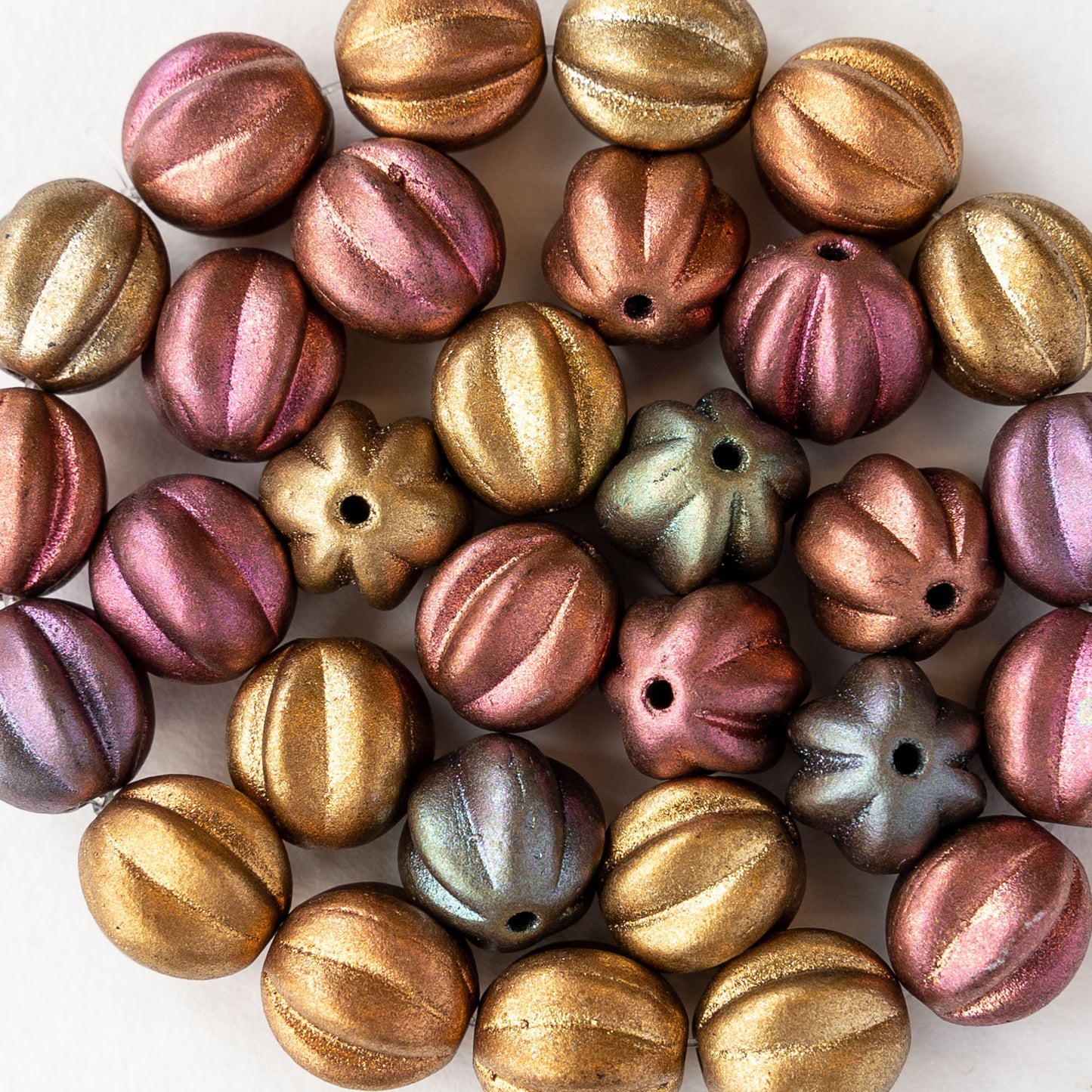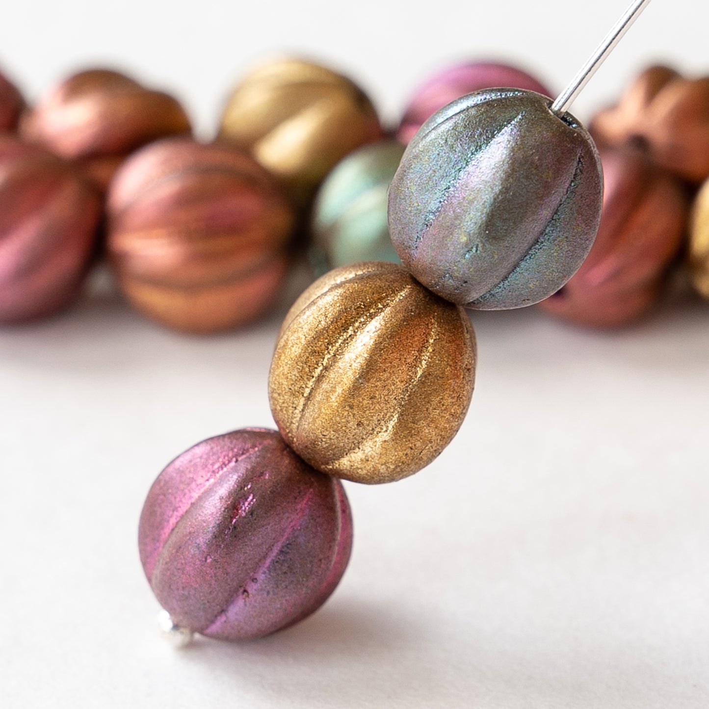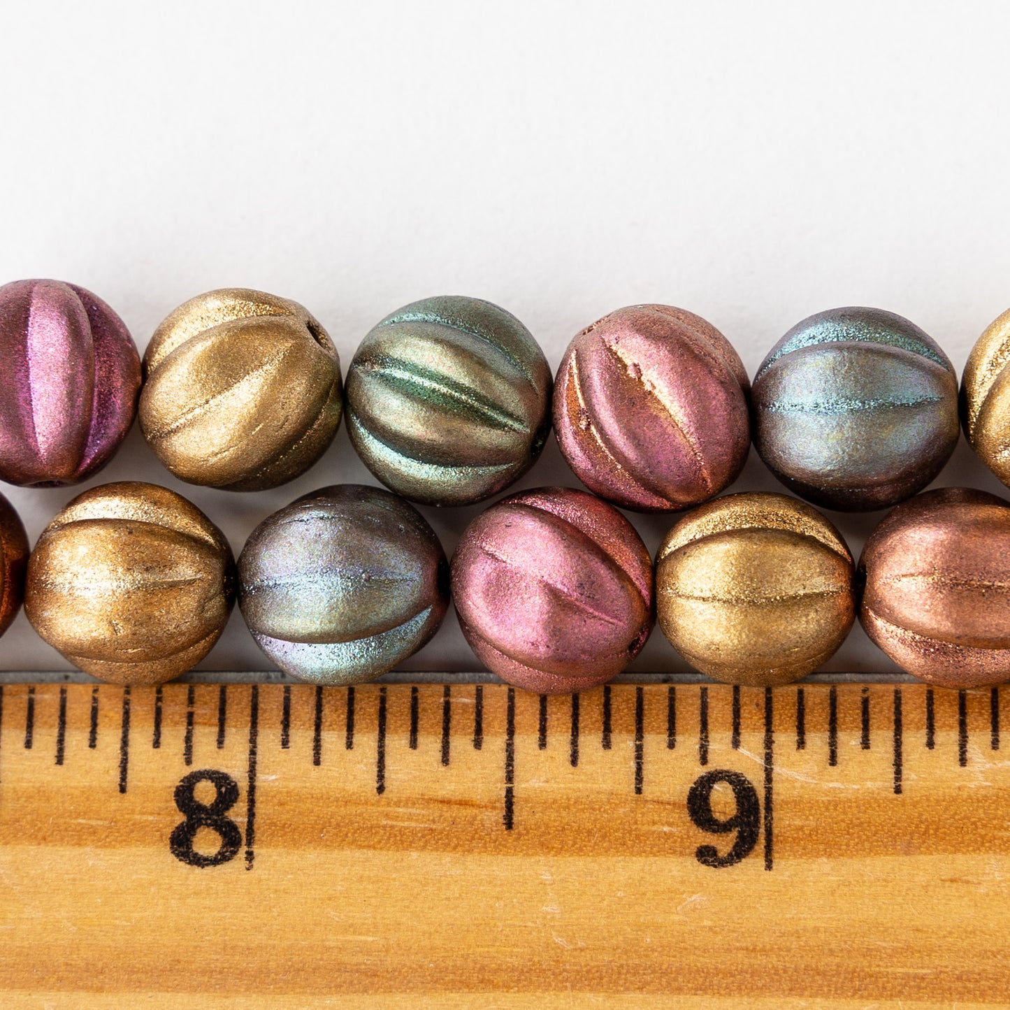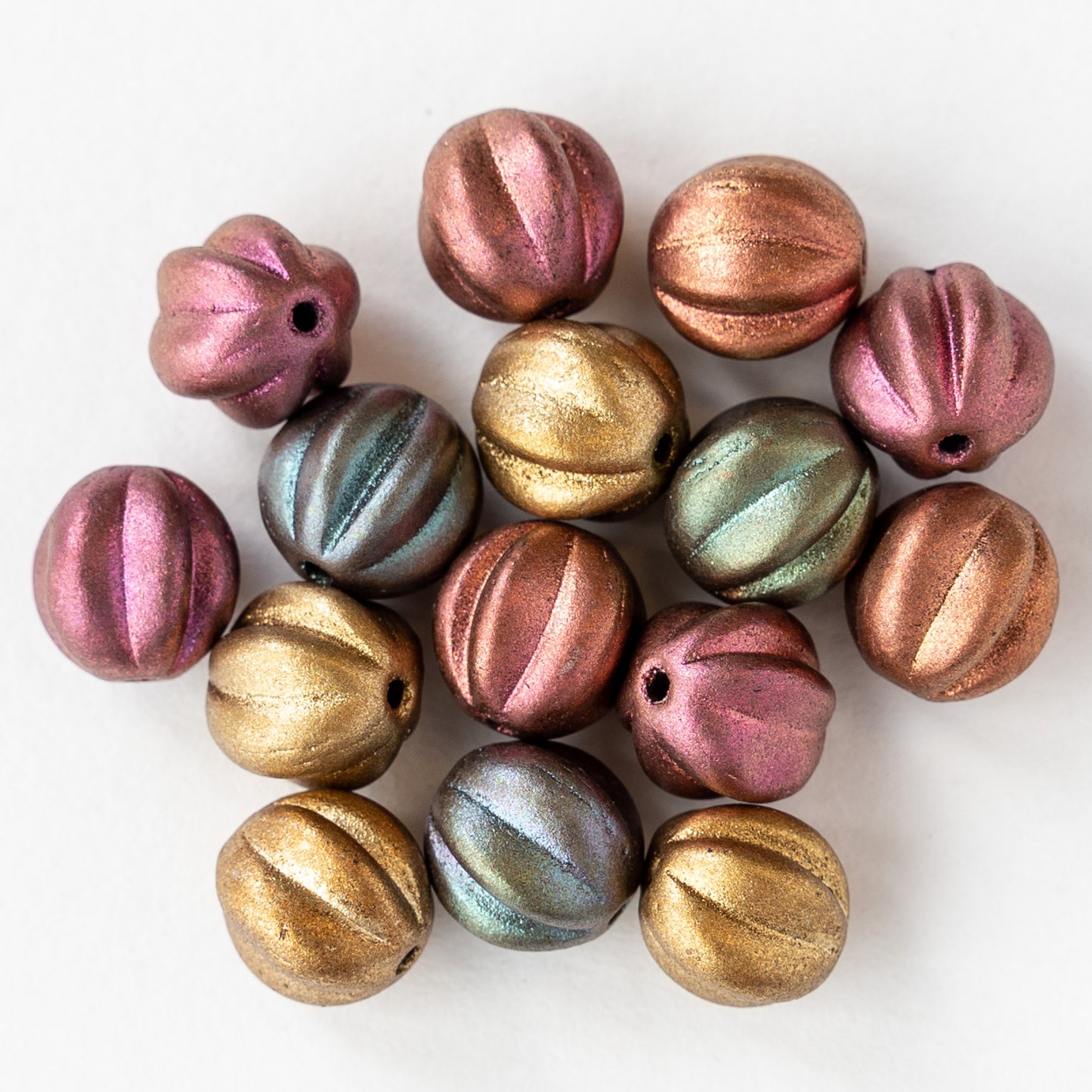 10mm Melon Beads - Metallic Bronze Iris Matte - 15 Beads