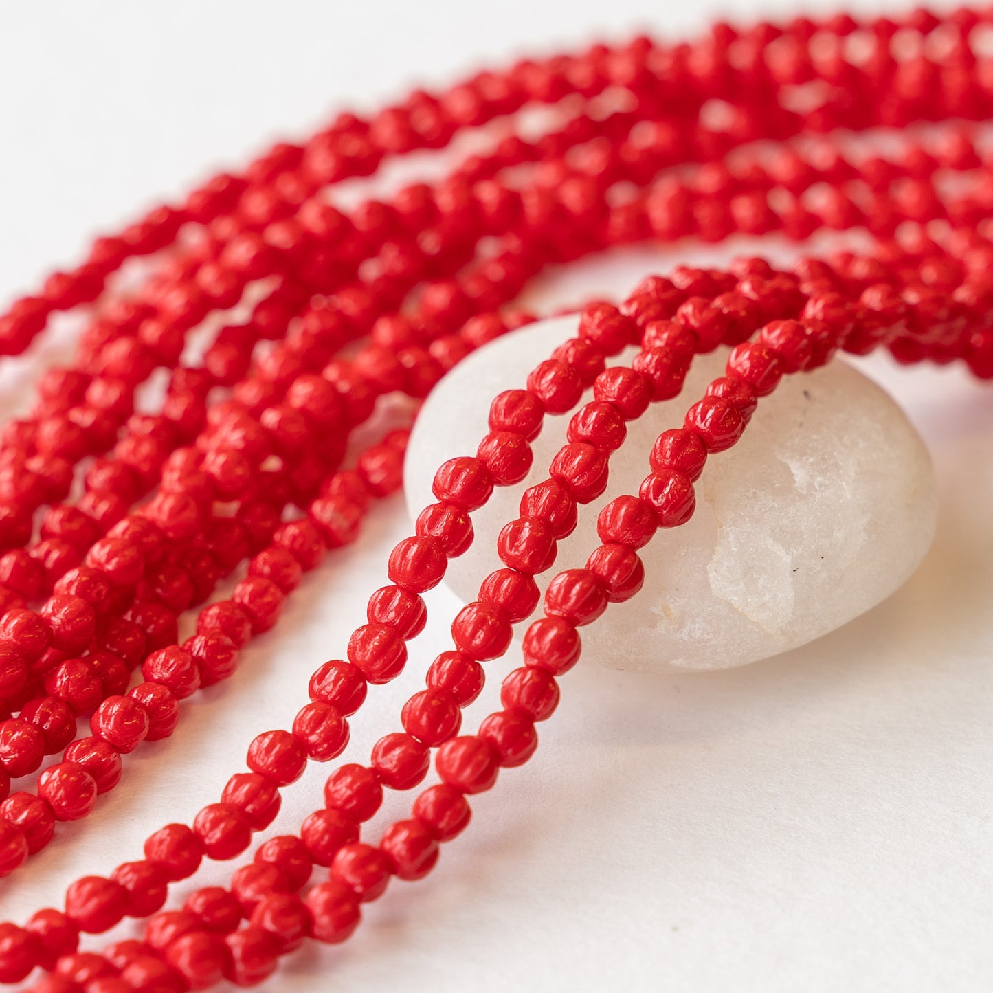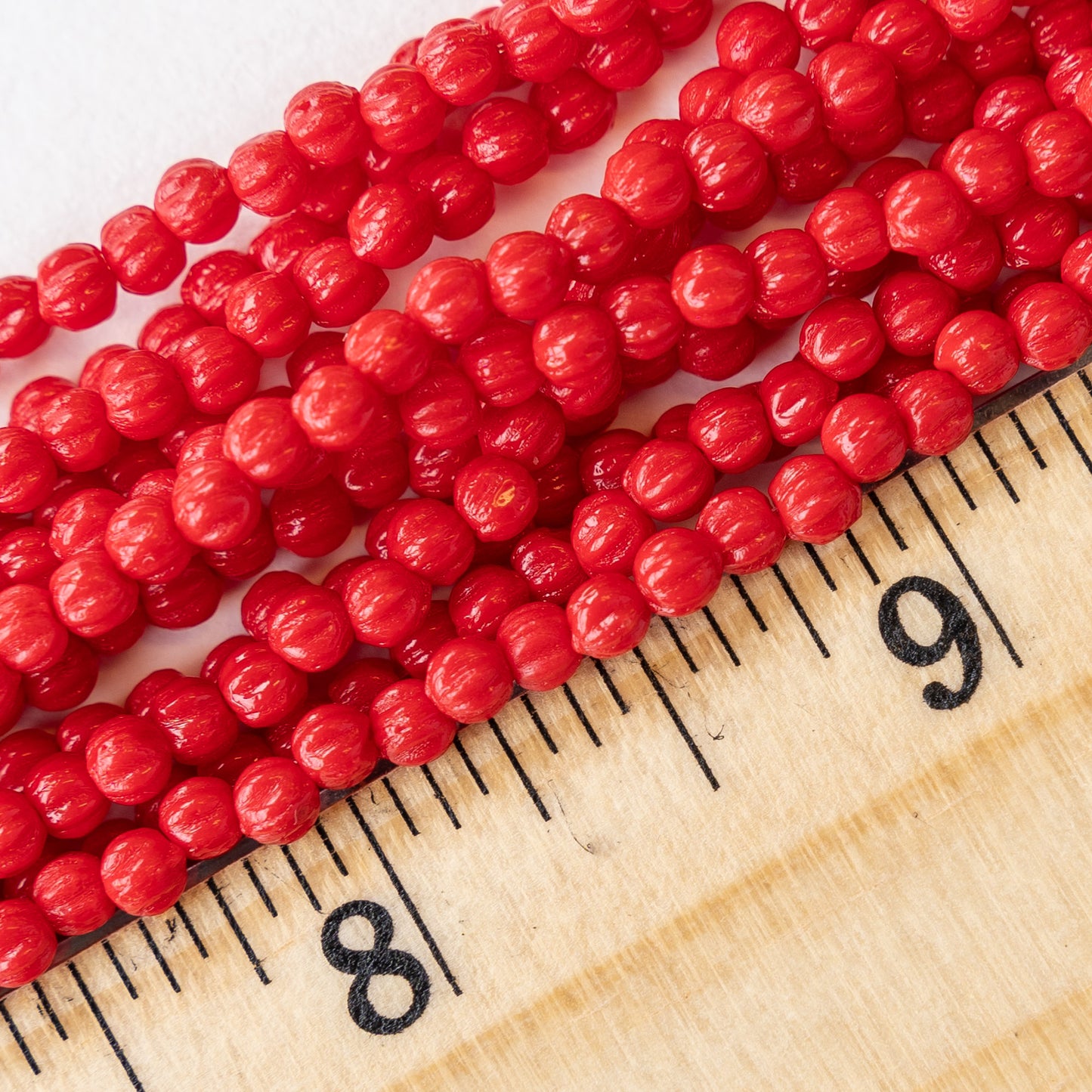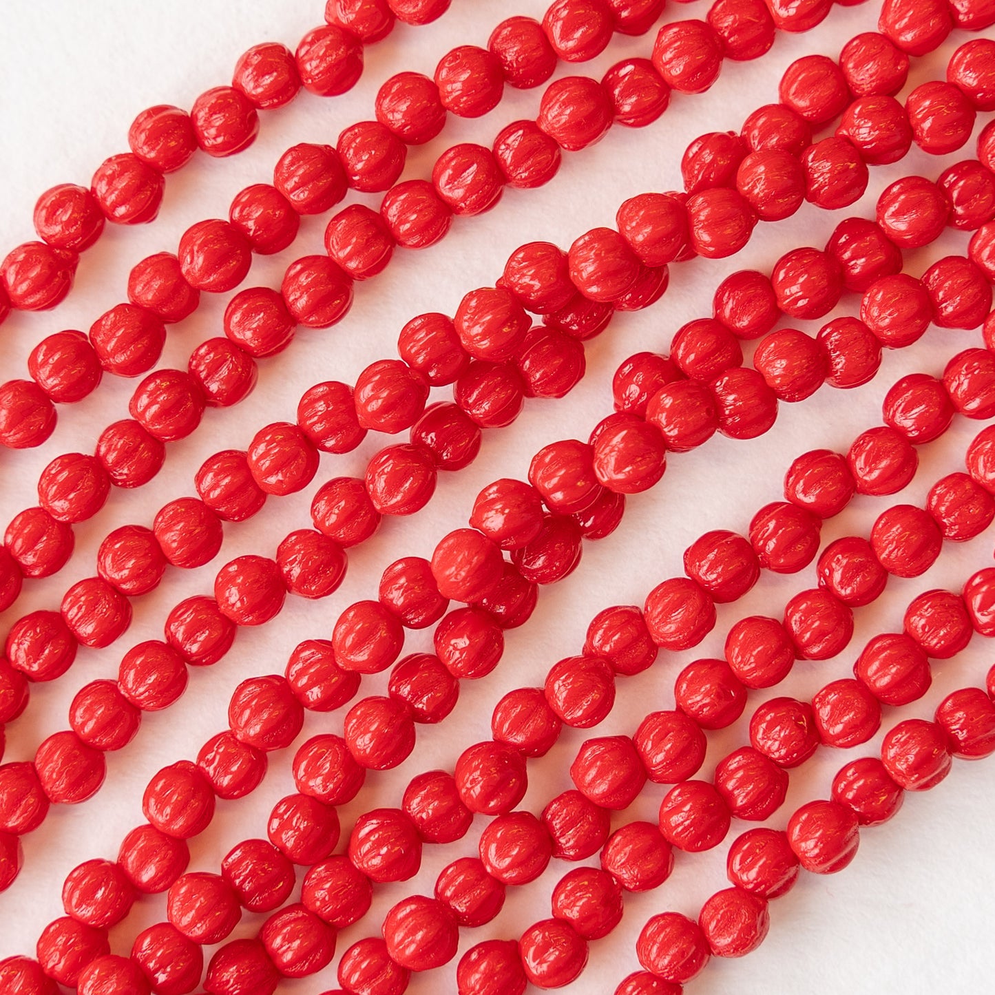 Fluted glass melon beads from the Czech Republic. This 3mm size is the smallest size melons come in. Cute little wonders.