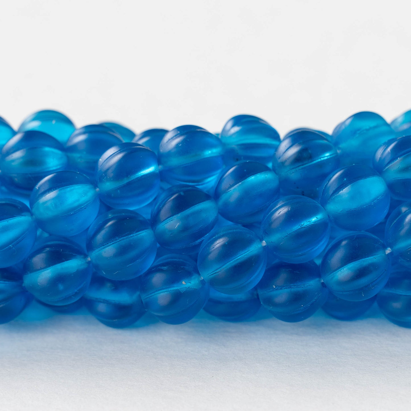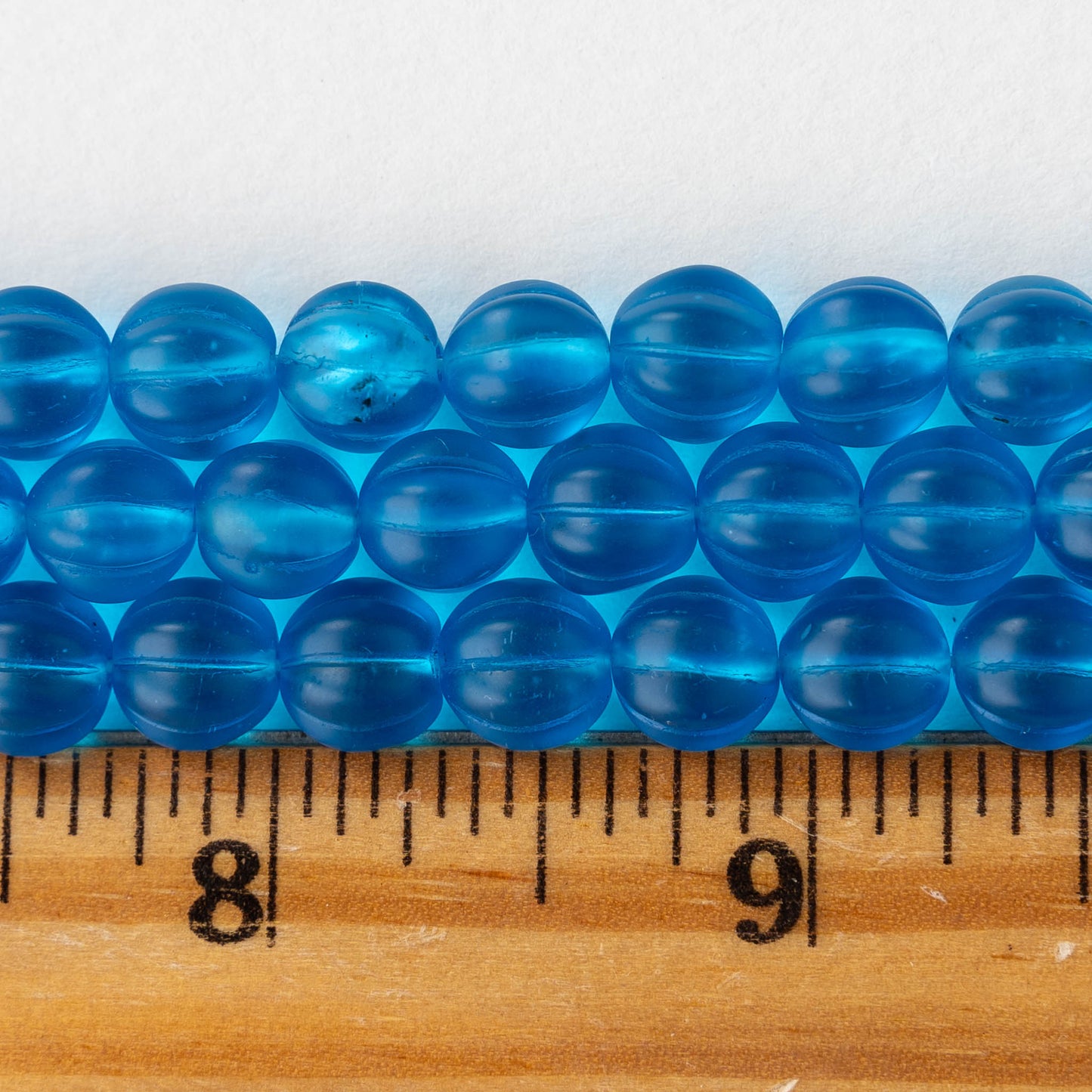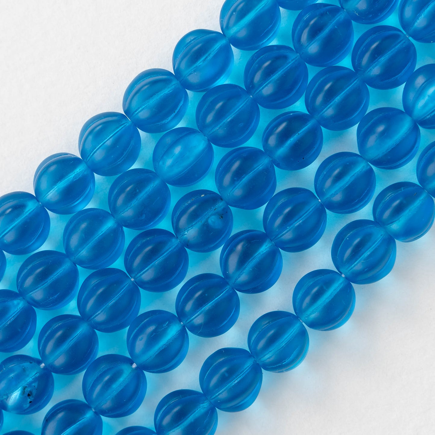 8mm Glass Melon Bead - Transparent Capri Blue- 30 Beads
