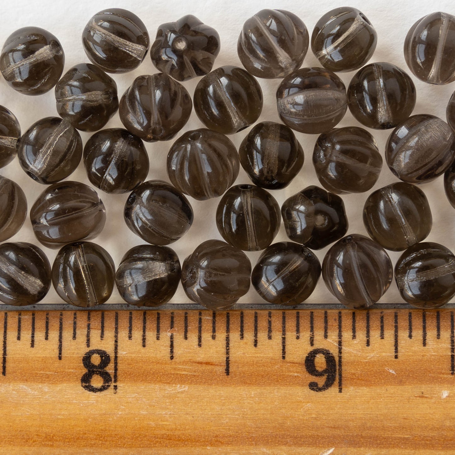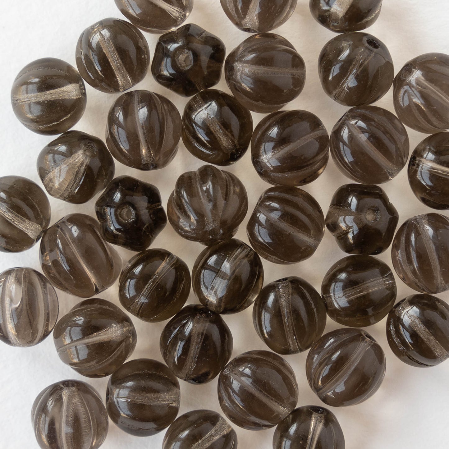 8mm Glass Melon Beads - Transparent Smokey Topaz - 20 Beads