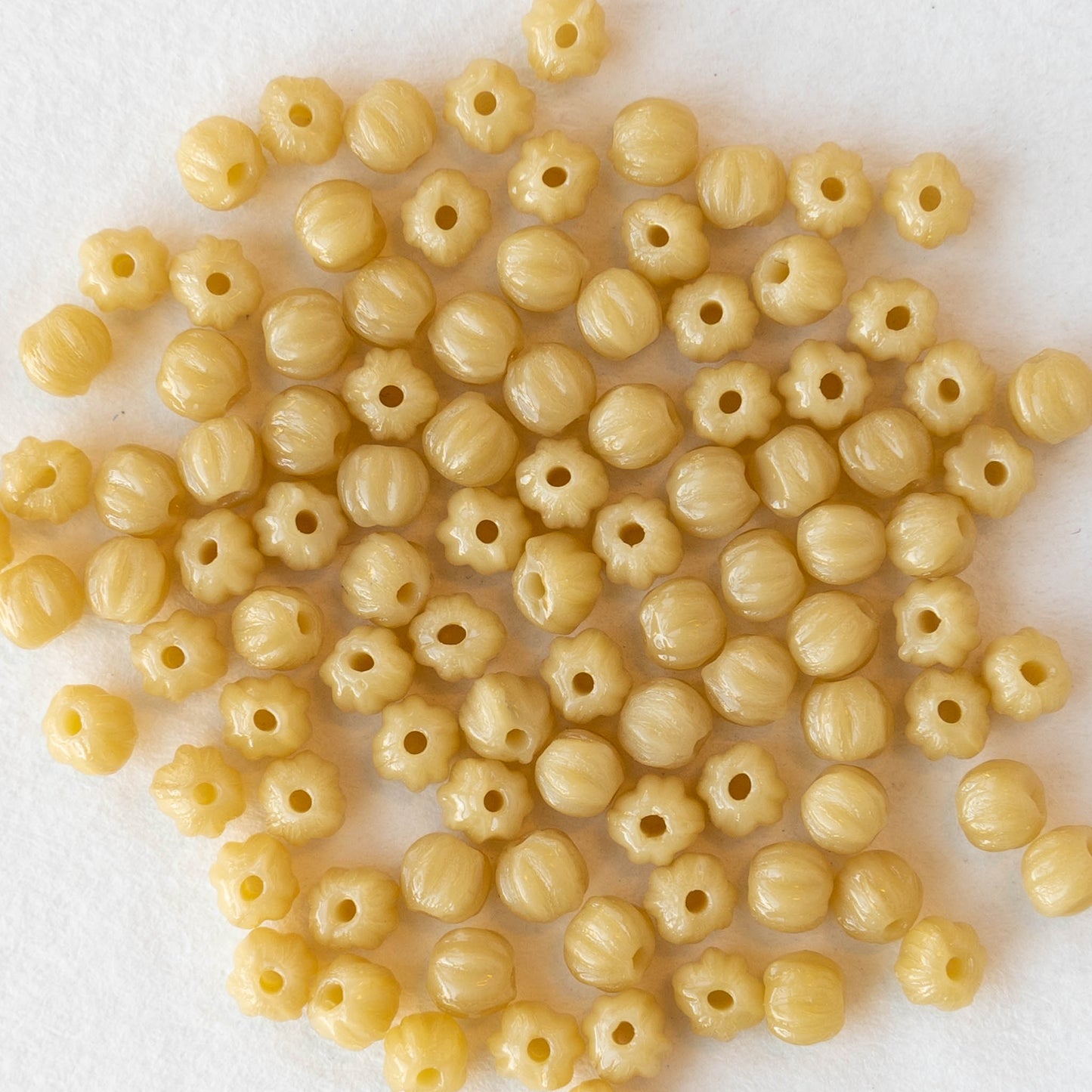 3mm Melon Beads - Opaque Antique Beige - 100 Beads
