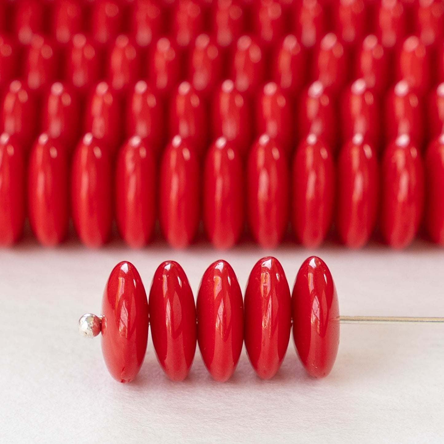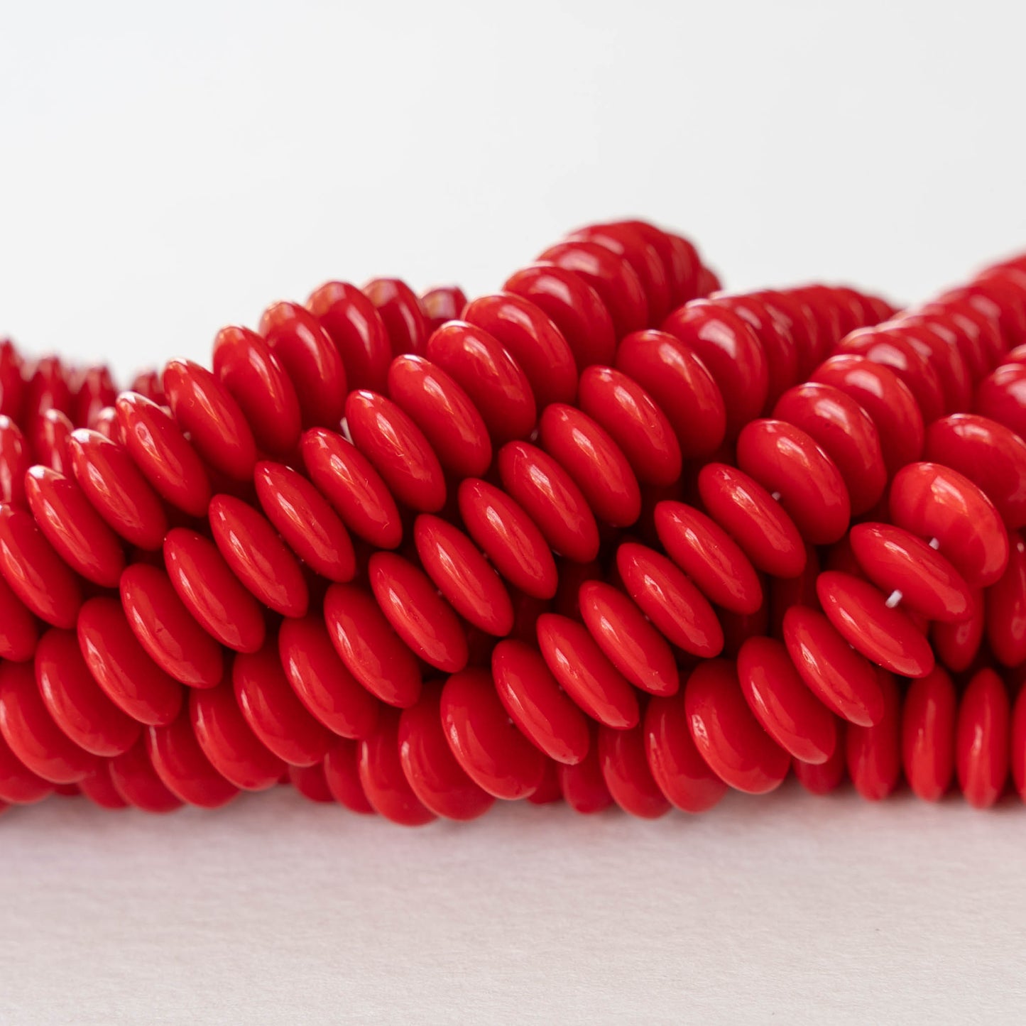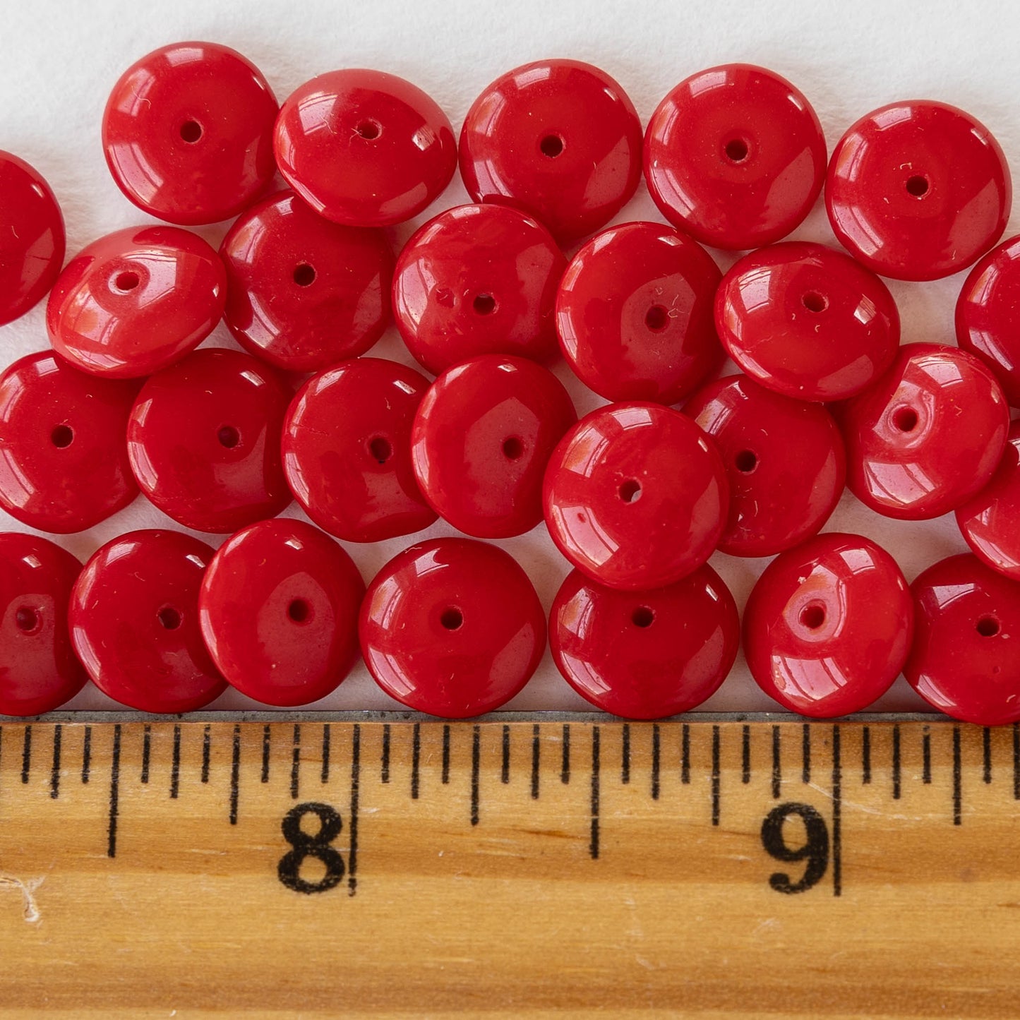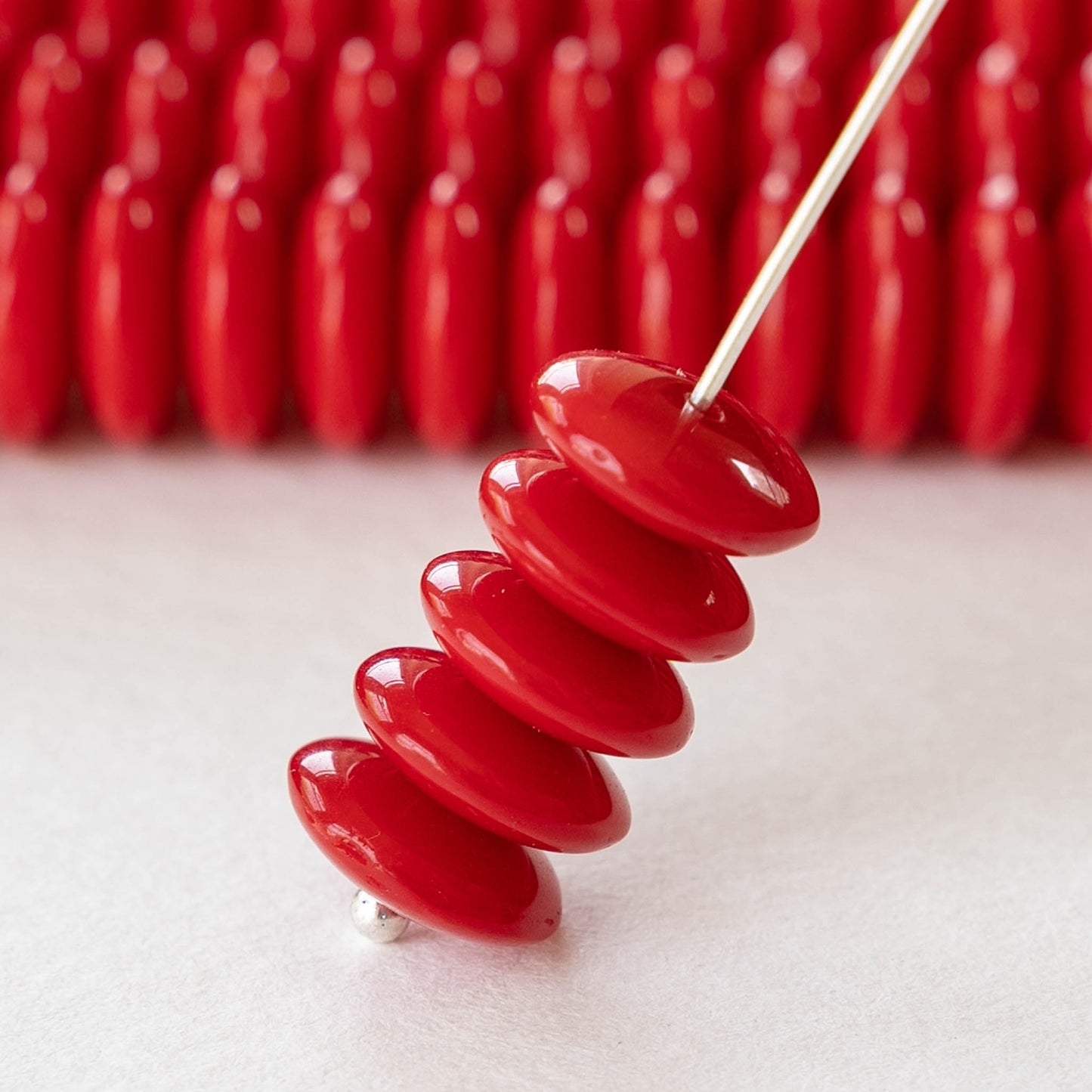 10mm Rondelle Beads - Opaque Red - 30 Beads