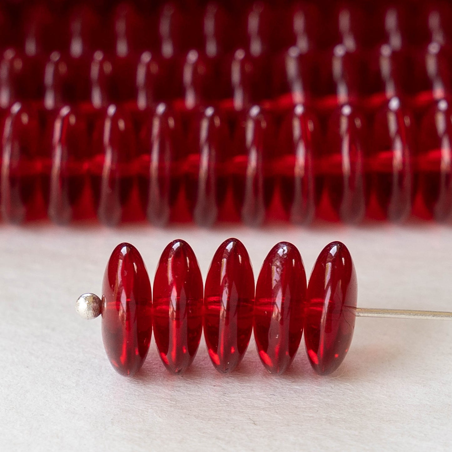 10mm Rondelle Beads - Ruby Red - 30 Beads